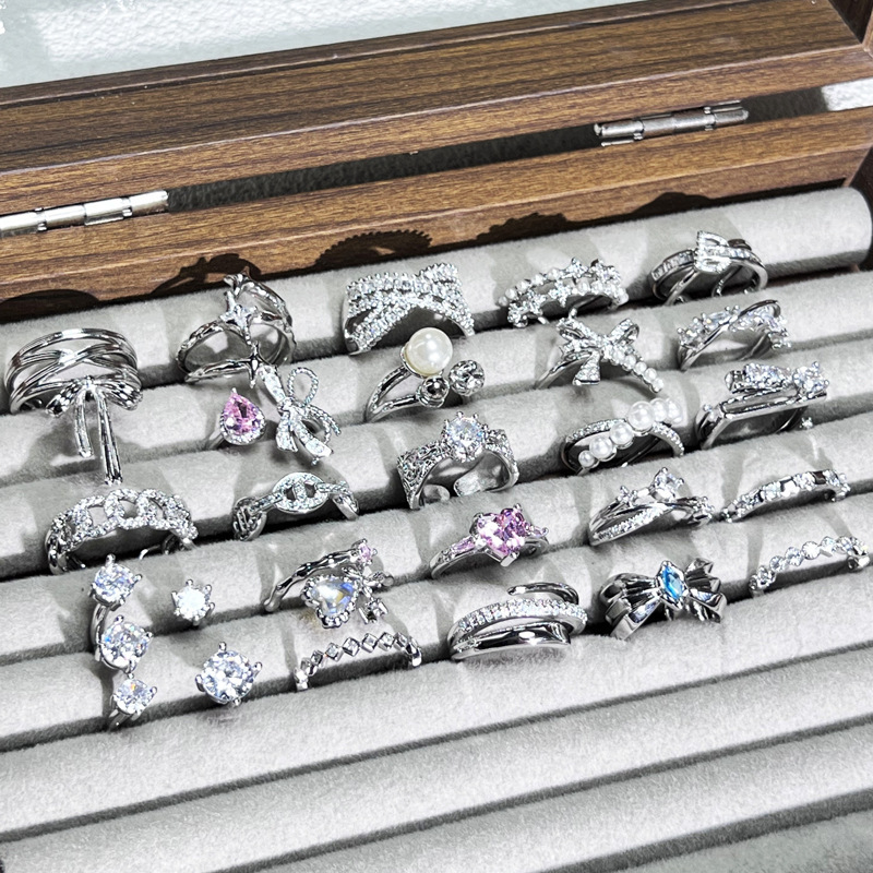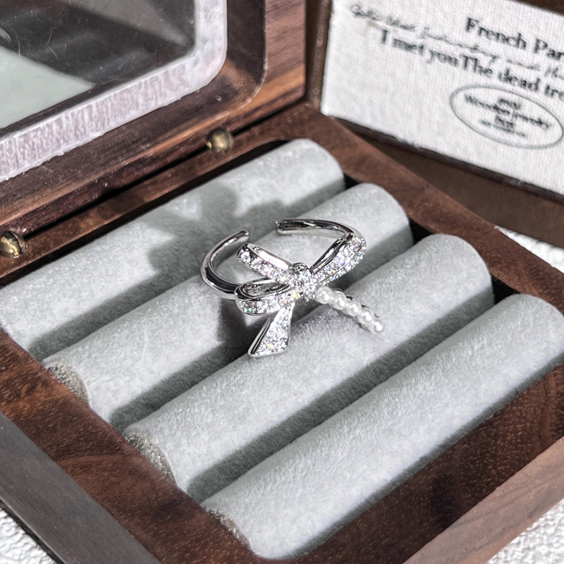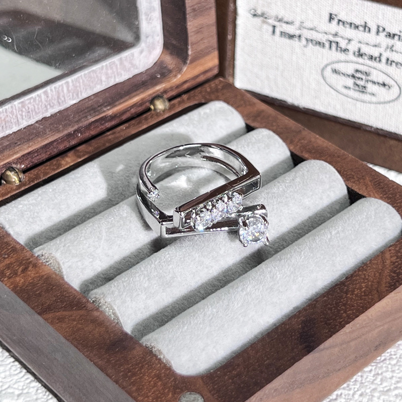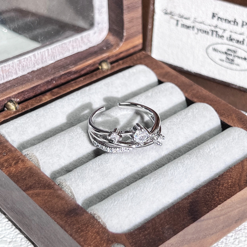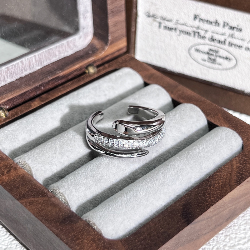 Exquisite Butterfly Light Luxury Korean Style Geometric Micro-inlaid Elegant Open Ring Women's High-end All-match Daily Best Friend Ring