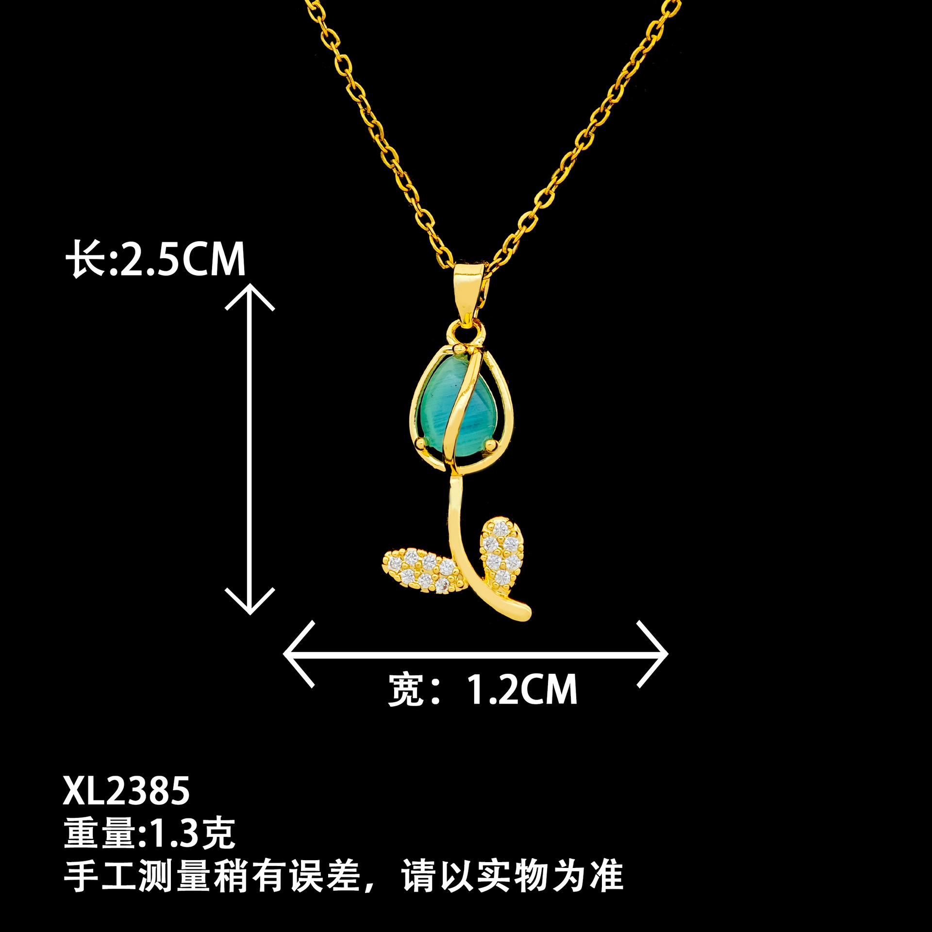 Color: Xl2385 blue cat's eye tulip necklace gold