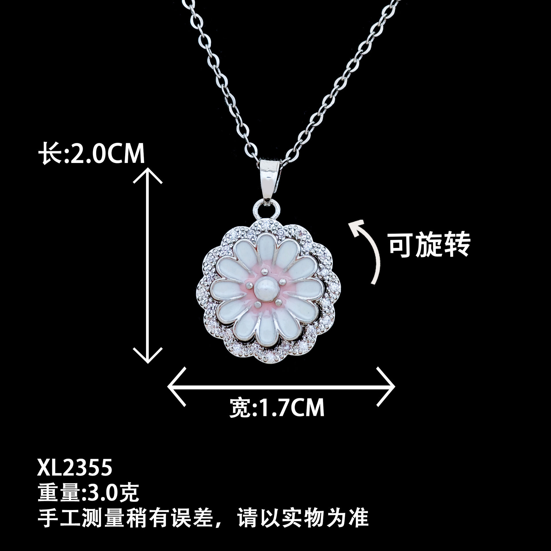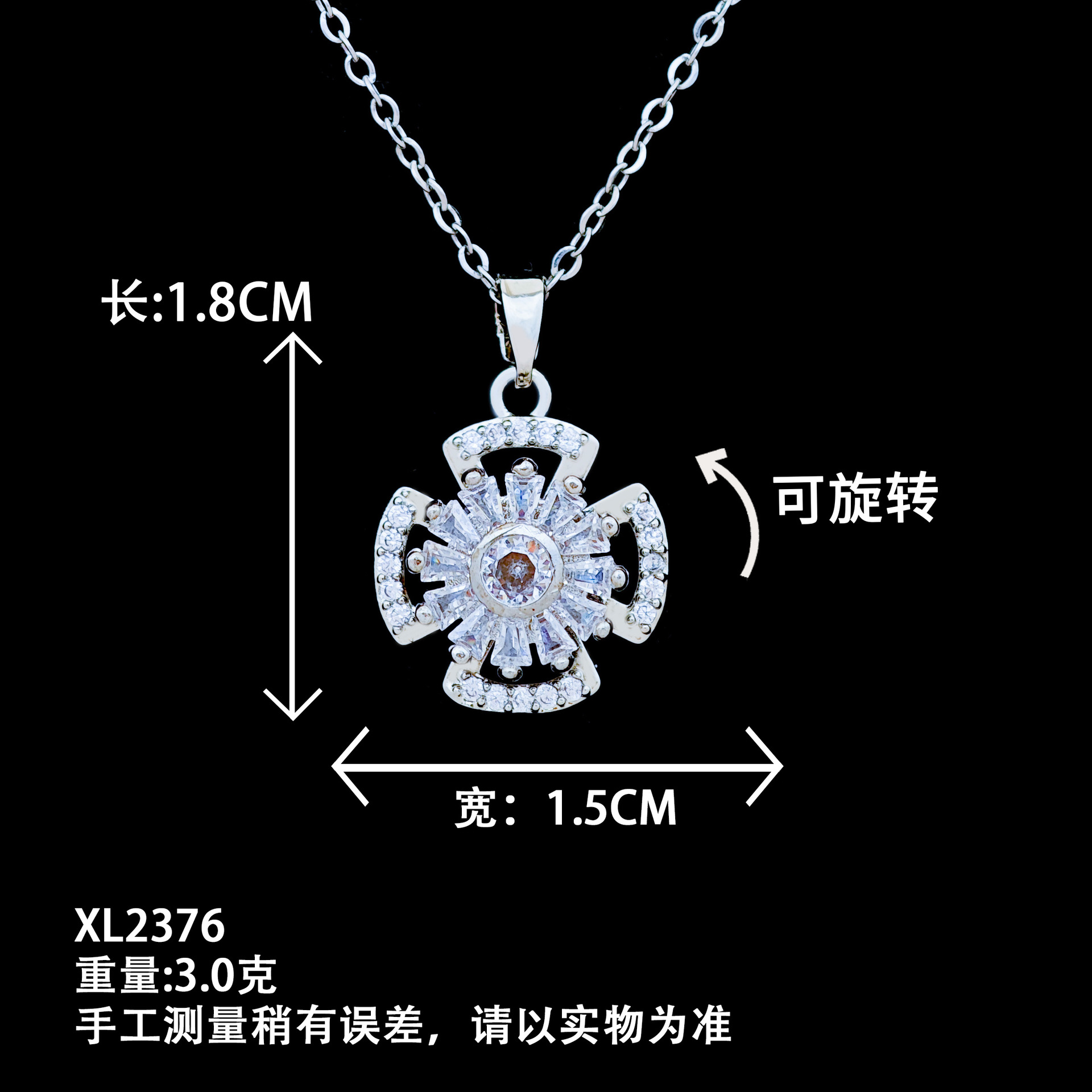 Color: Xl2376 rotating round four-petal flower necklace silver