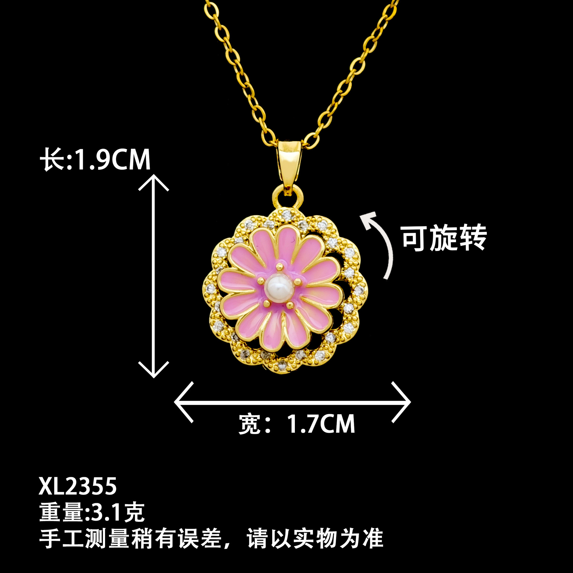 Color: Xl2376 rotating round four-petal flower necklace gold