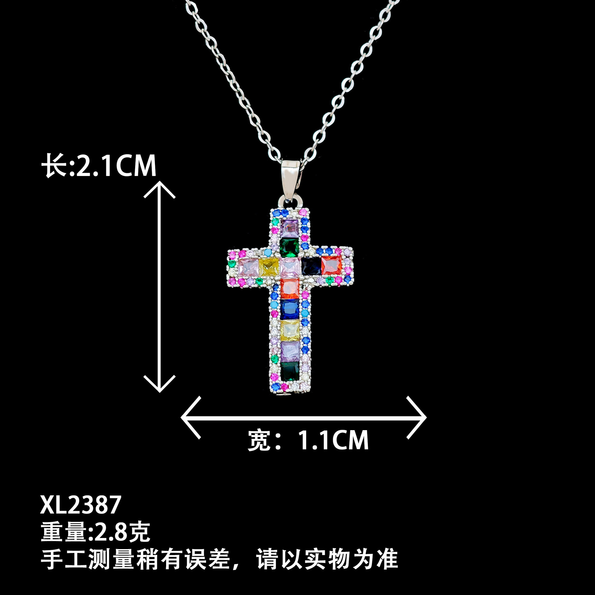 Color: Xl2383 cross eagle spreading wings necklace silver