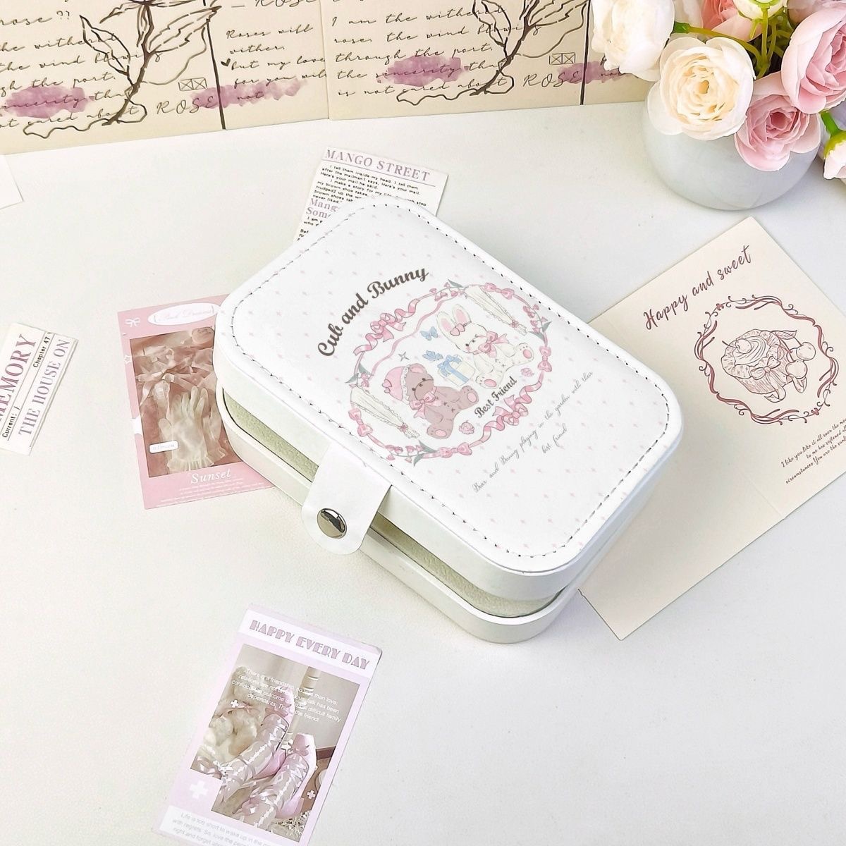 Garland Rabbit Bear Earrings Jewelry Storage Box Three-Layer Portable Jewelry Travel Earrings Necklace Ring Jewelry Box Women