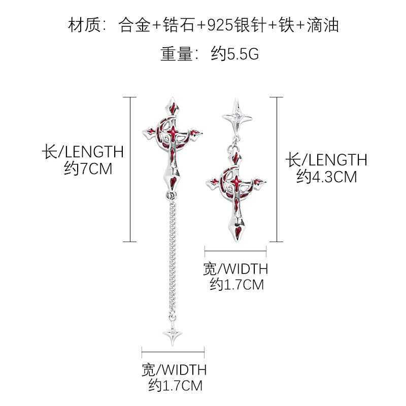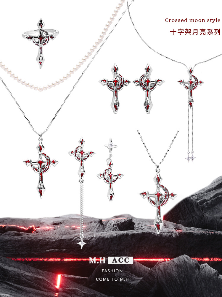 Original Design Blood Moon Cross Series Fashion Sweet Cool Dark Style Niche Unique Necklace Earrings Ring