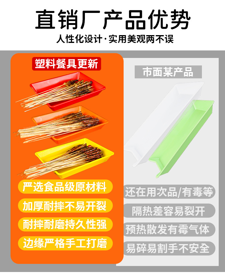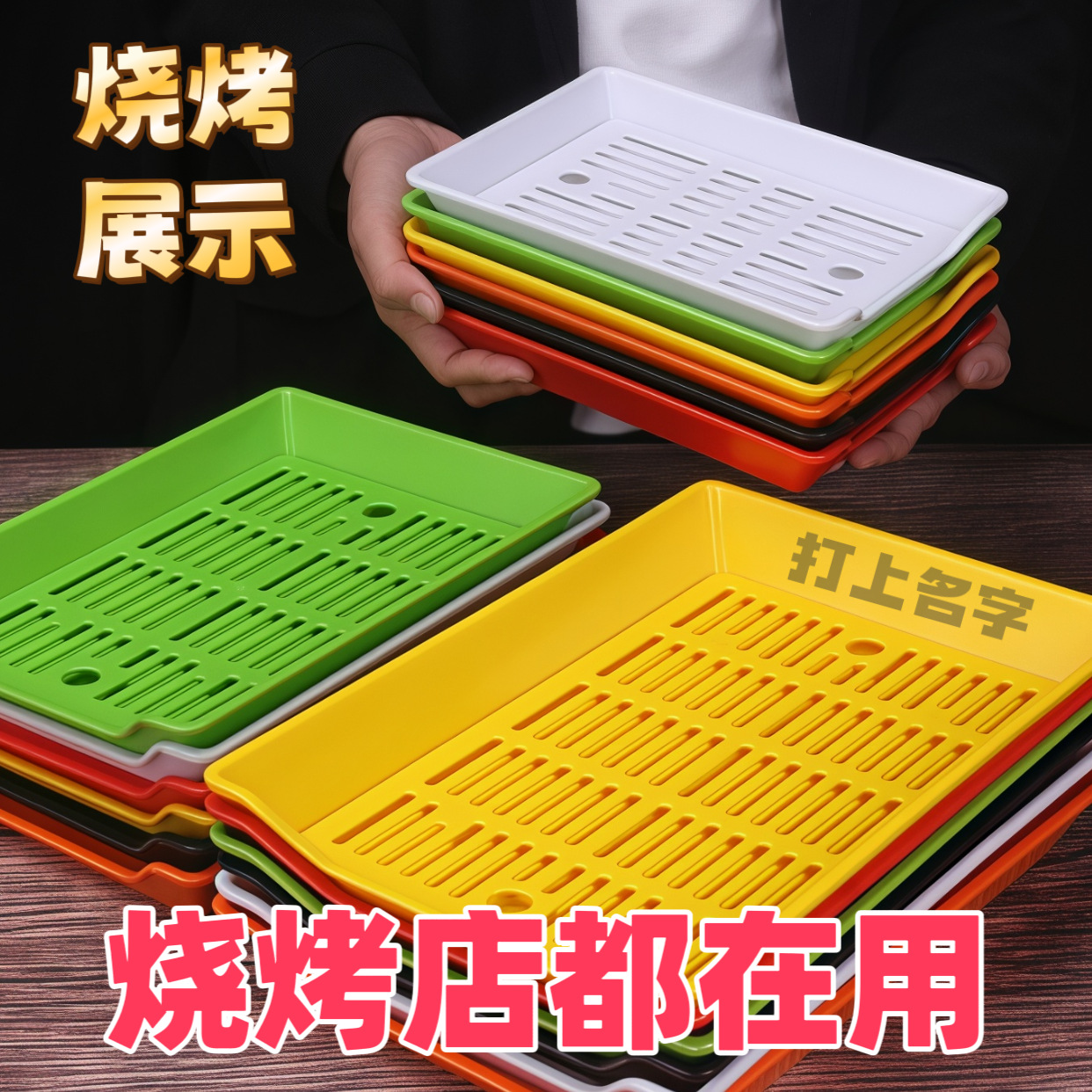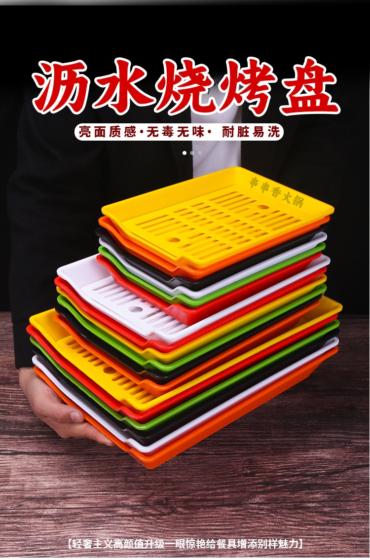 Rectangular Drain Tray Hot Pot String Fragrance Display Plate Barbecue Fried String Dish Plastic Night Market Stall Dish Plate
