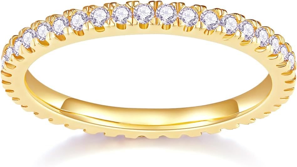 Copper Plated 18K Gold Stacked Single Row Full Diamond Ring Imitation Diamond Zircon European and American Engagement Simple Style Boutique Hand Ring