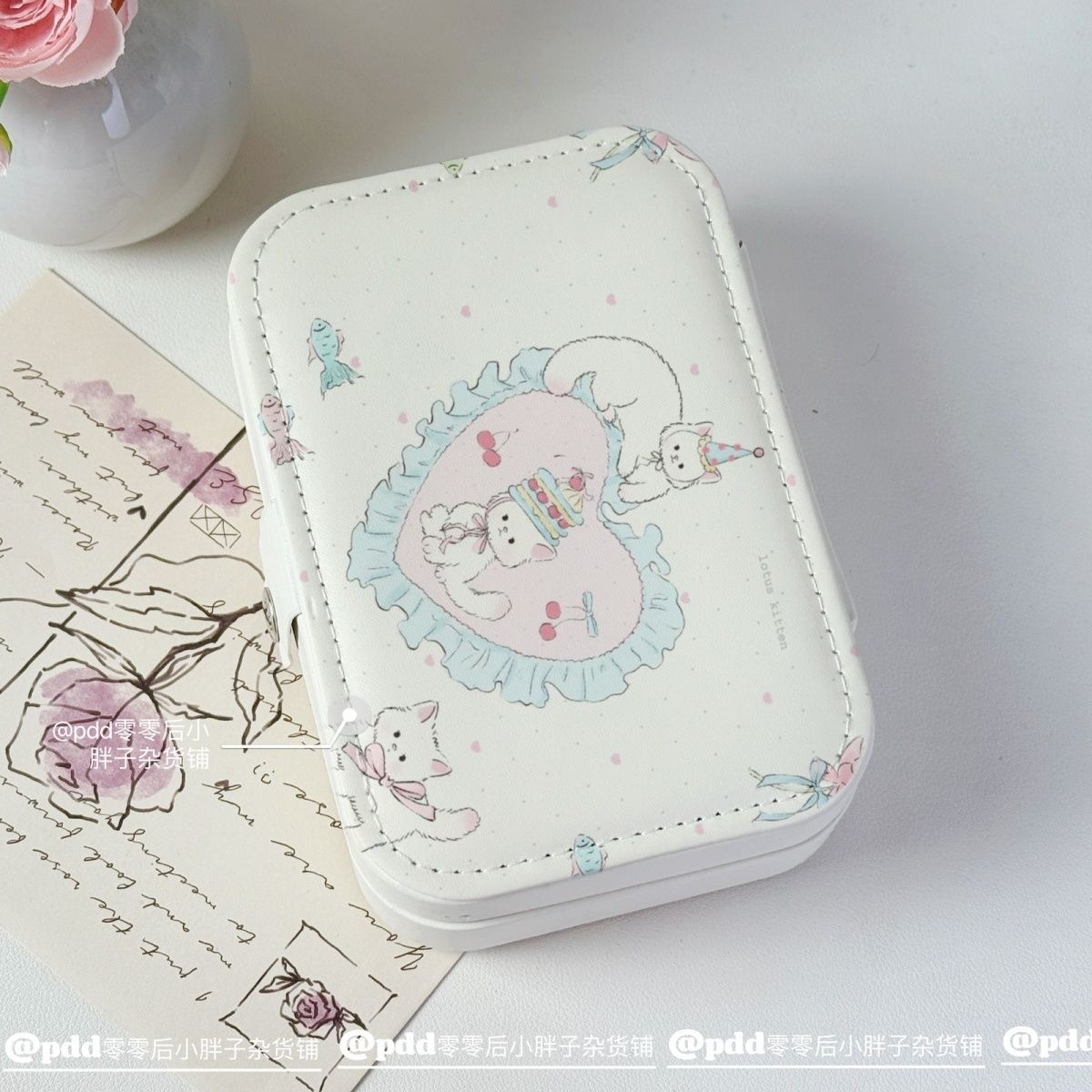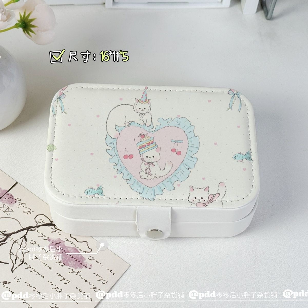Color: Rectangular jewelry box-[cherry love cat]-white