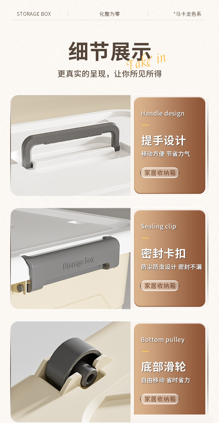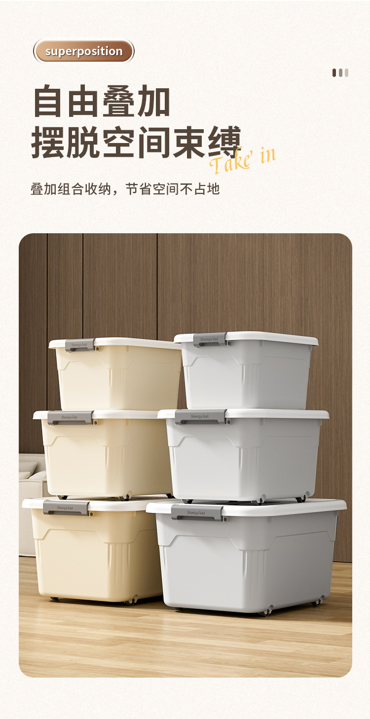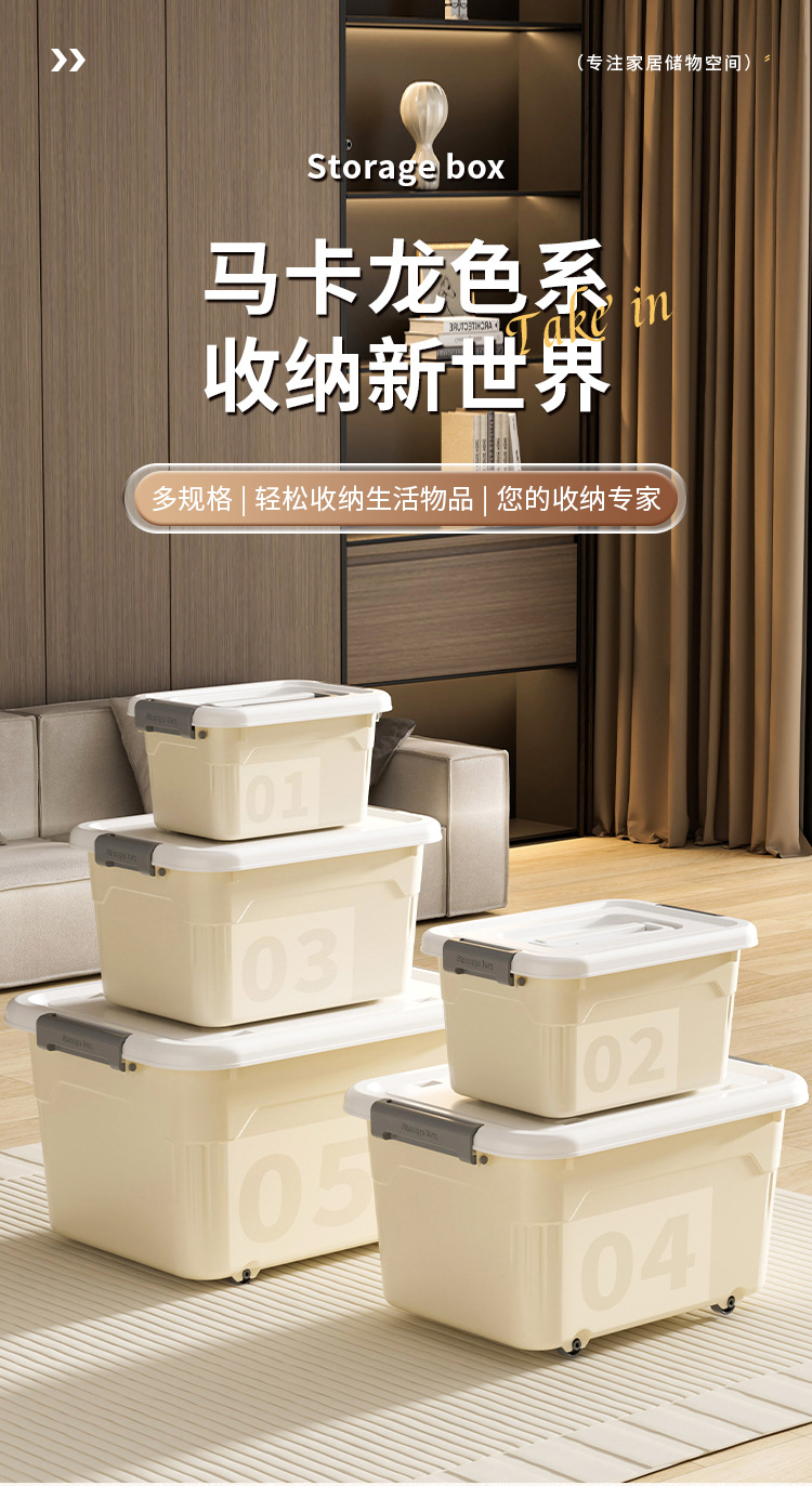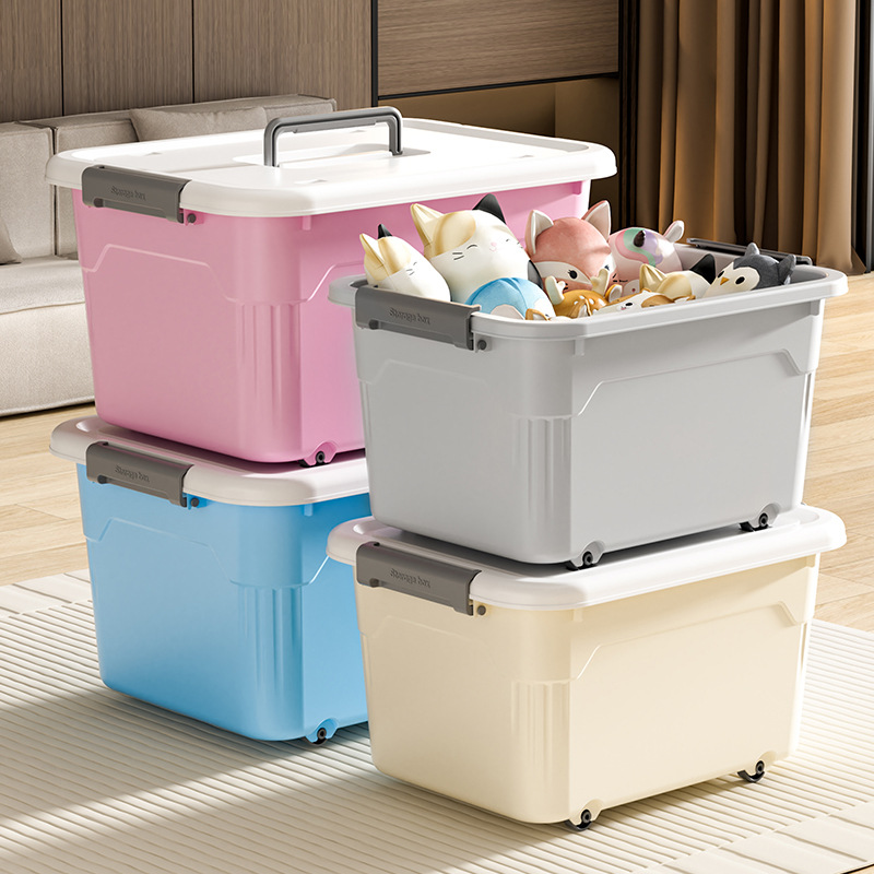Plastic Storage Box Large Capacity Toy Snack Storage Box Clothing Storage Box with Pulley Handle Storage Box Wholesale