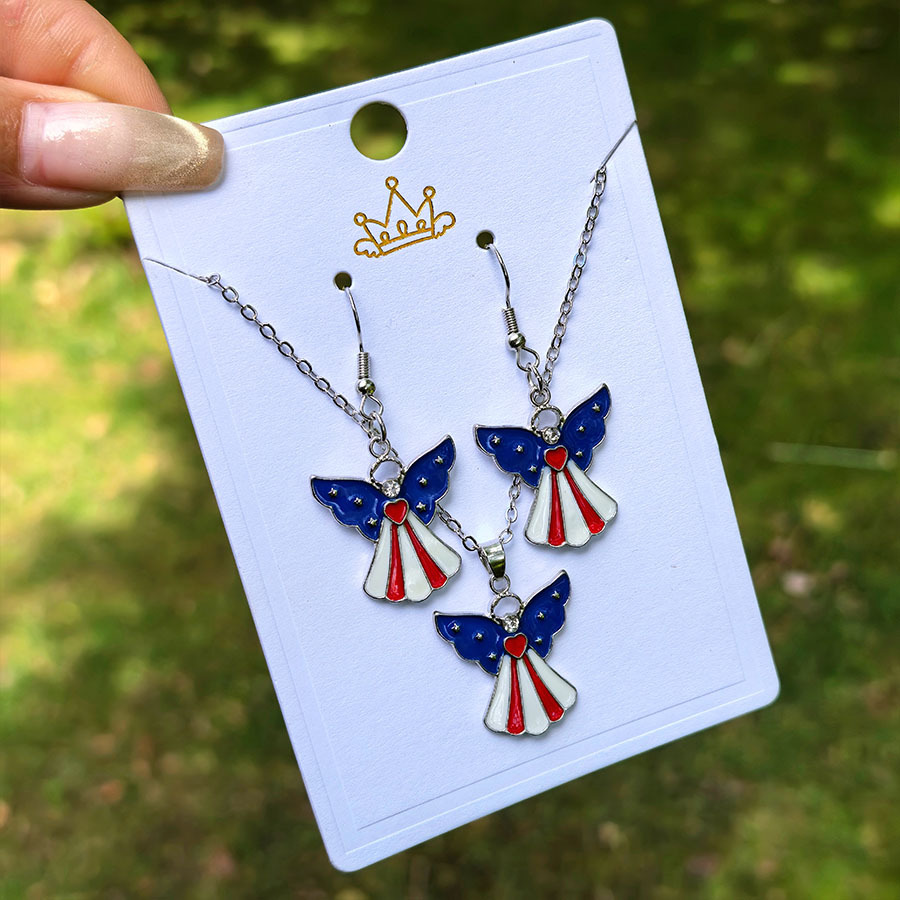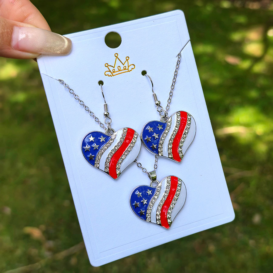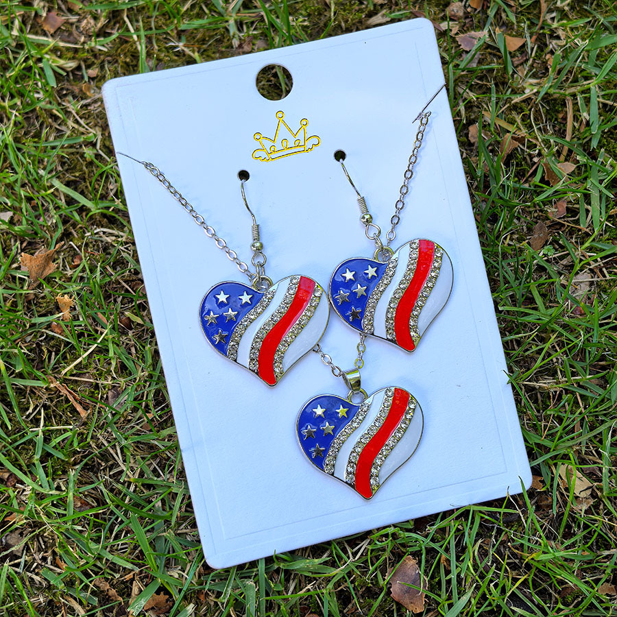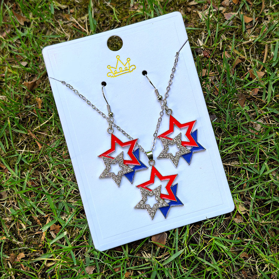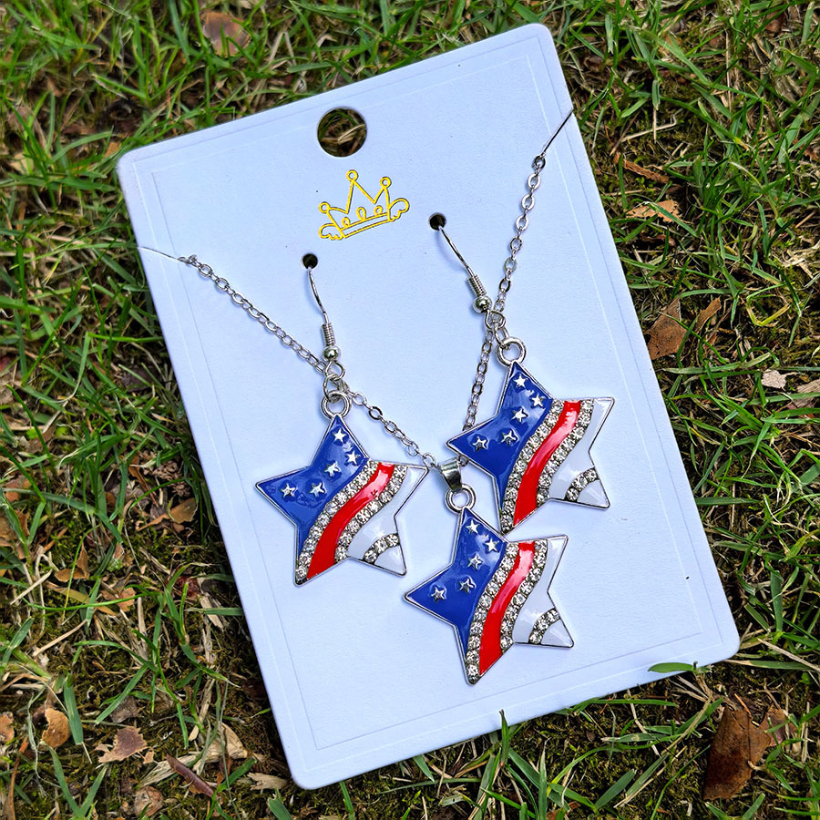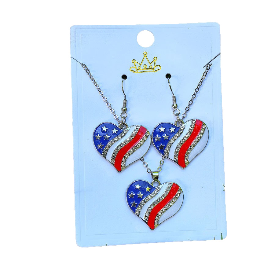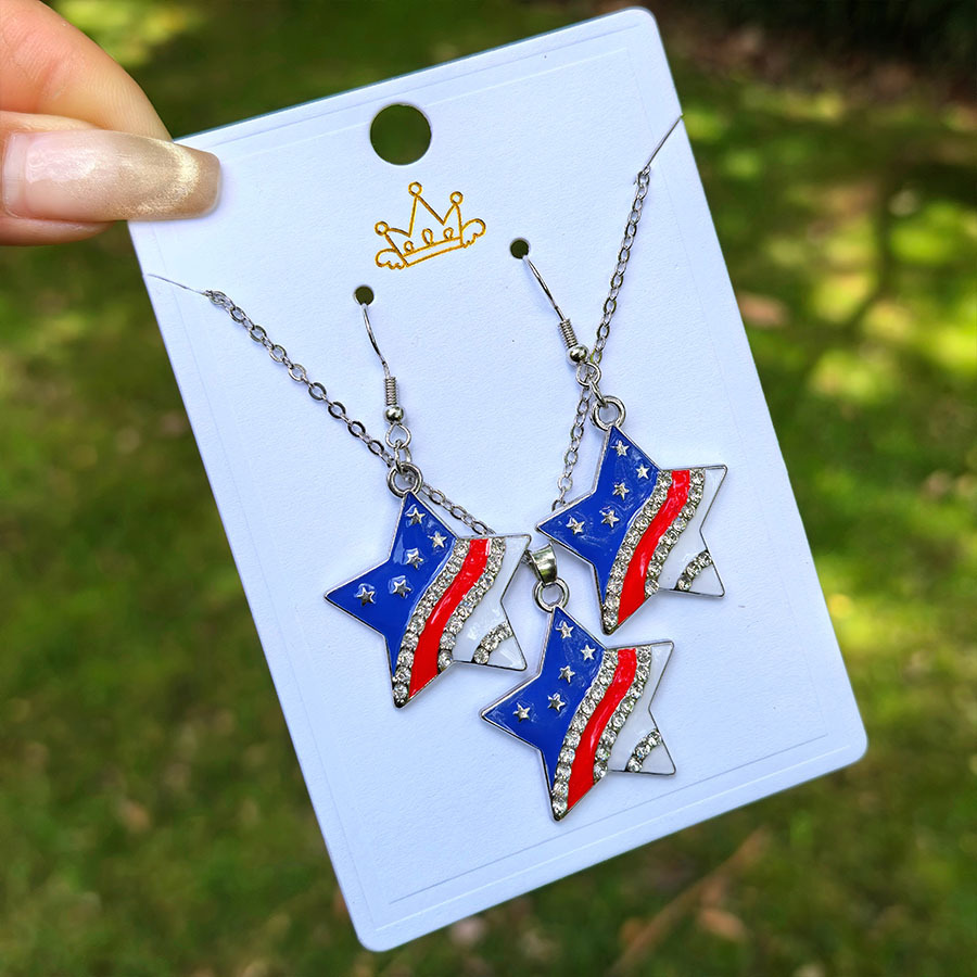 American Independence Day Flag Color Five-Pointed Star Alloy Pendant Earrings Necklace Set Love Pendant Jewelry Set
