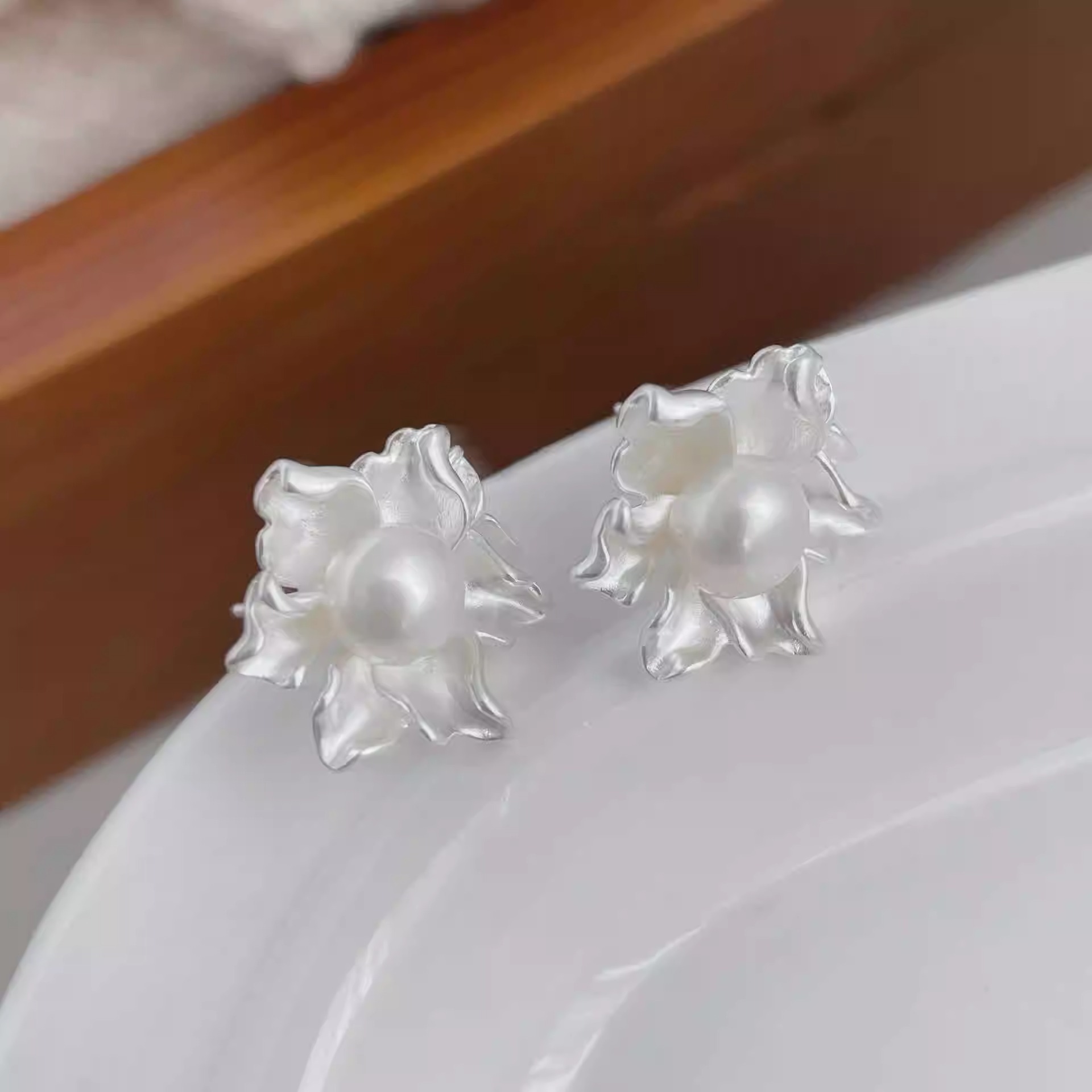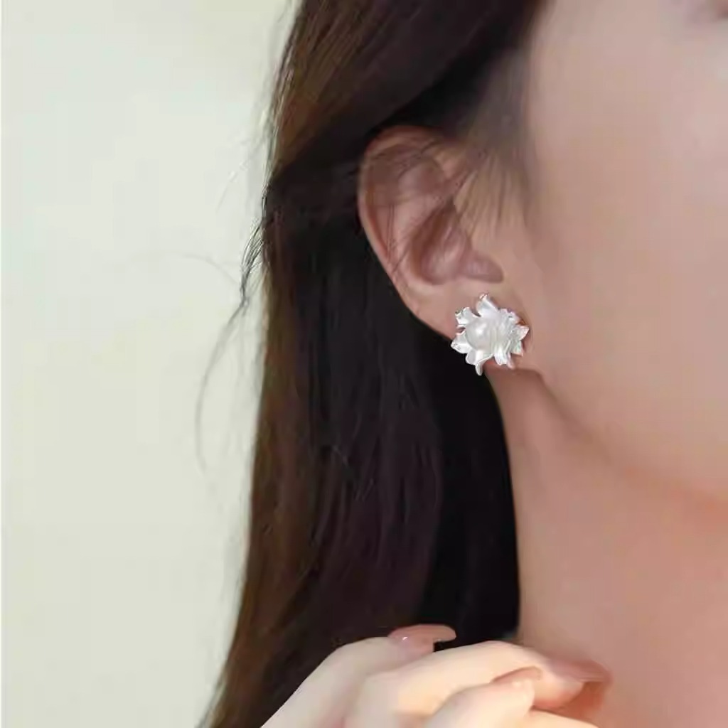 Silver Needle White Flower Pearl Earrings French Elegant Lady Style Earrings Simple Fashion Versatile Earrings for Women