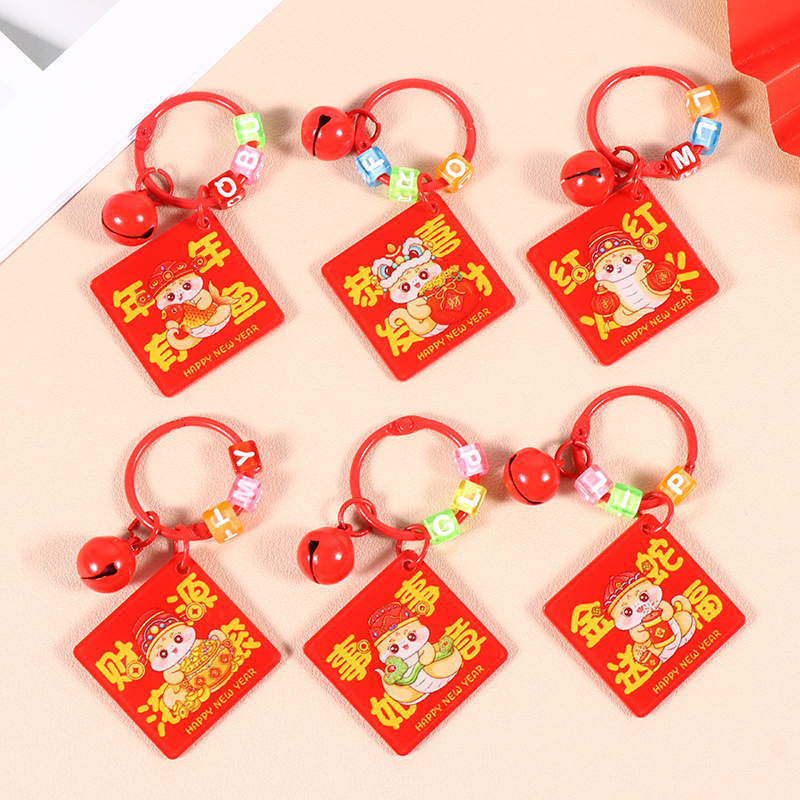 Color: Light brown year of the snake new year acrylic keychains 20 pcs