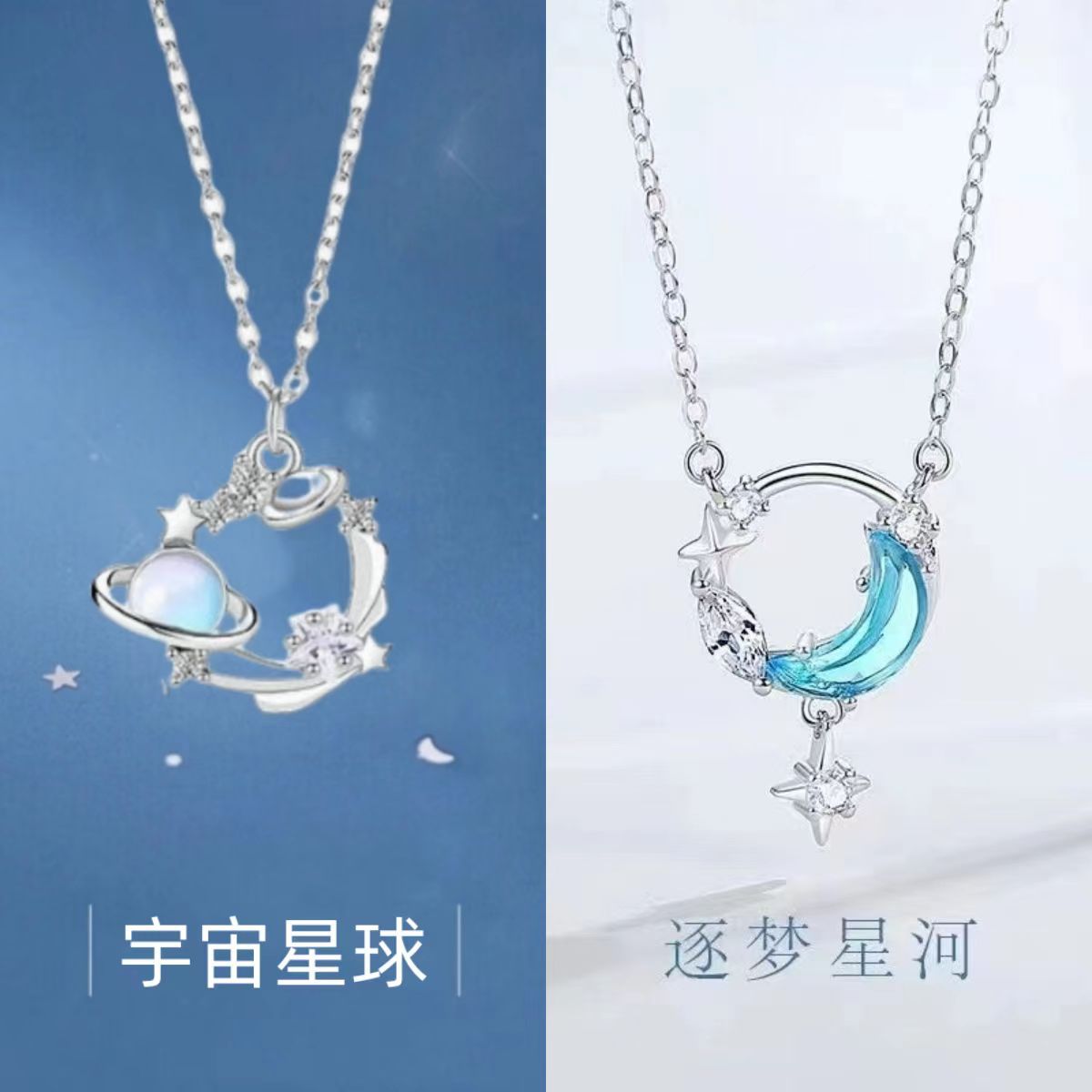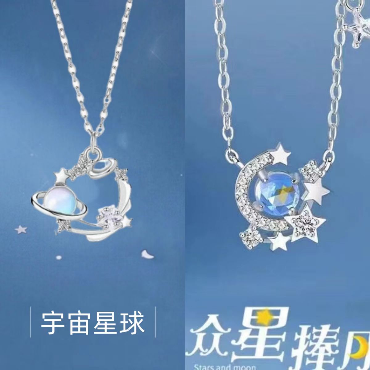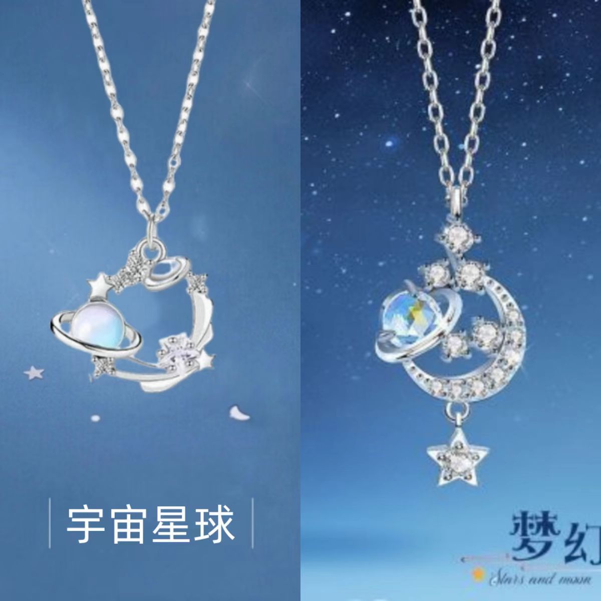 Color: Universe planet + stars holding the moon
