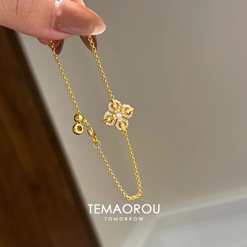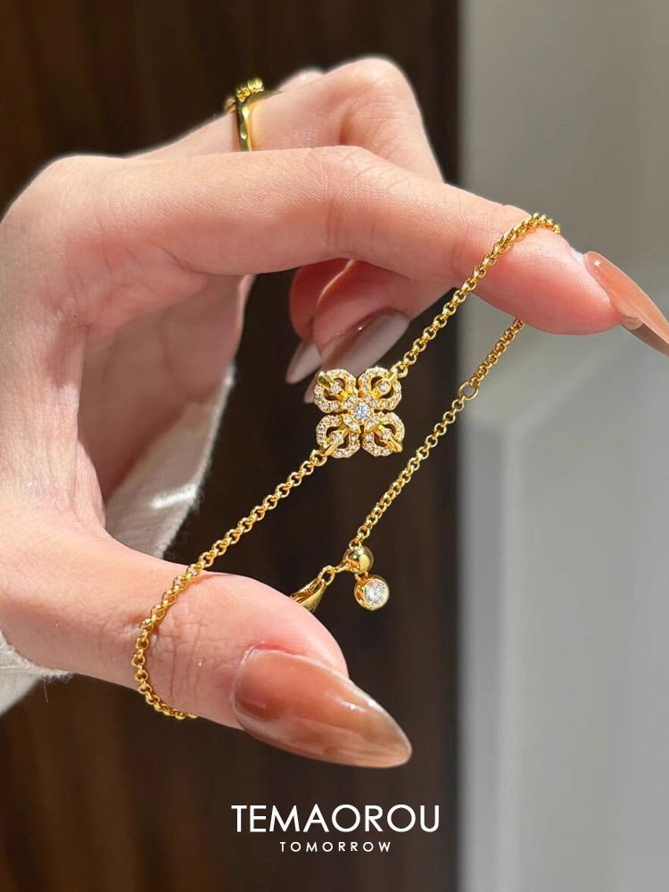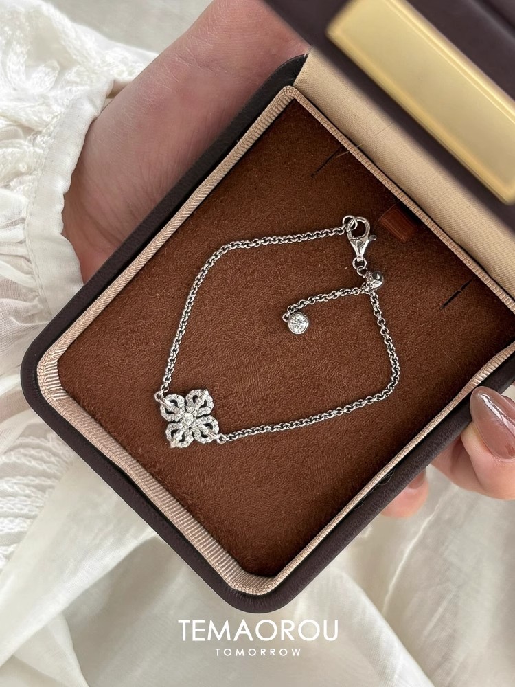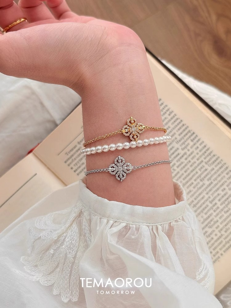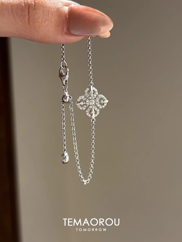 New Chinese Style Cross Pestle Four-leaf Clover Flower Bracelet Small Chanel Style silver Flash Single Flower Stacked Wear Bracelet