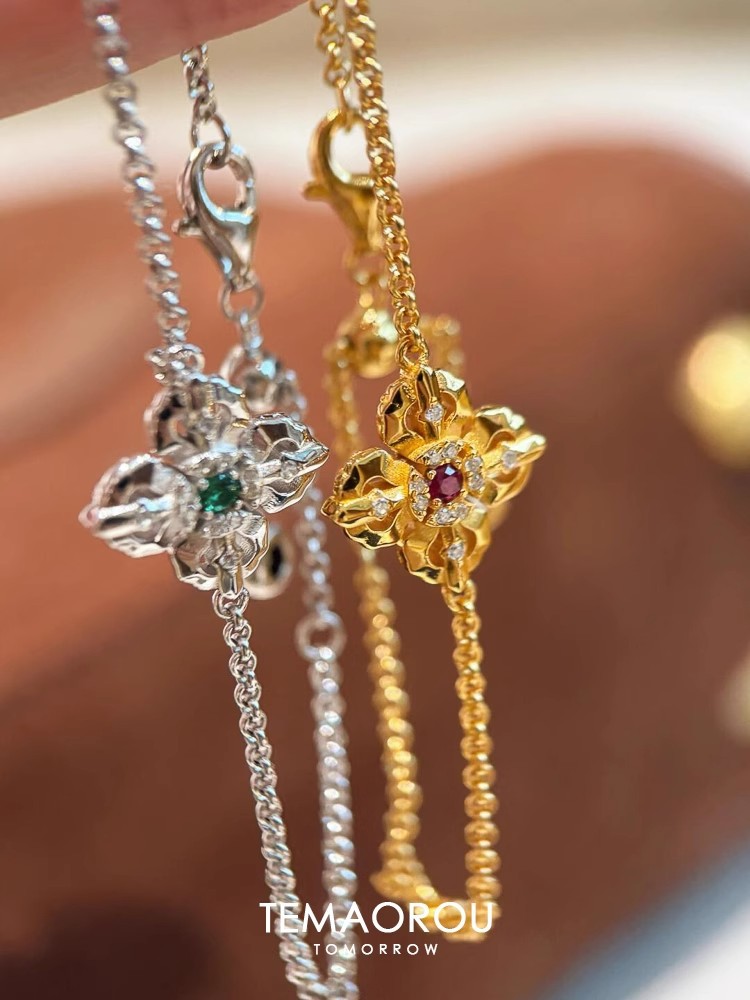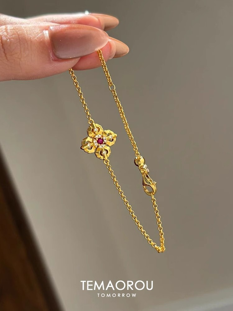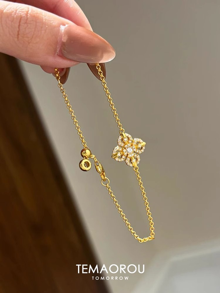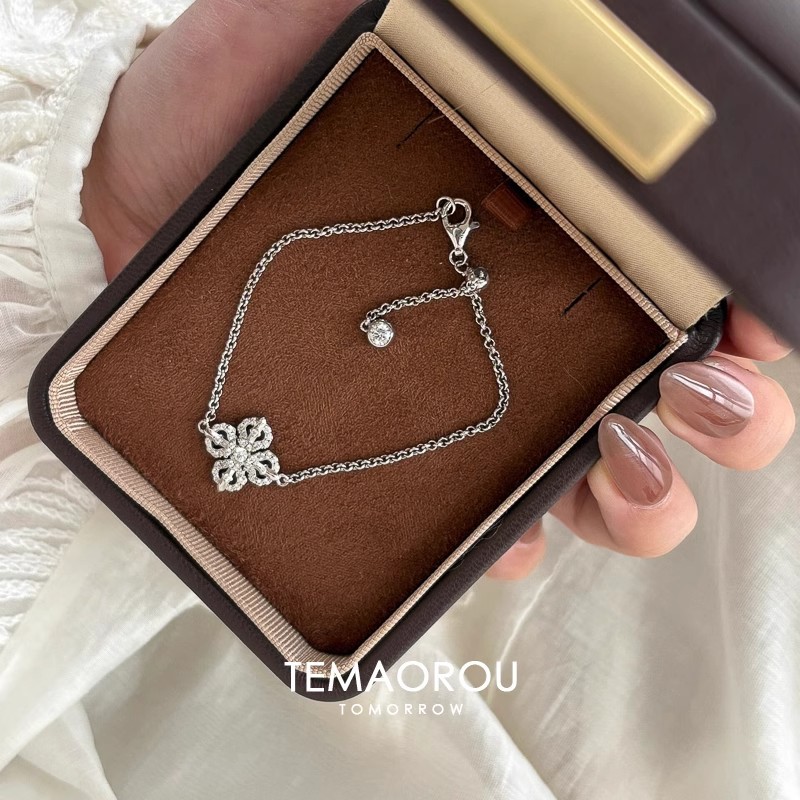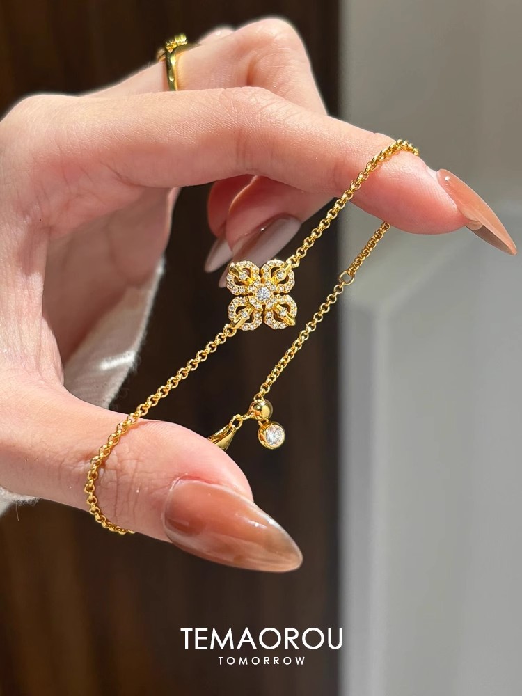 New Chinese Style Cross Pestle Four-leaf Clover Flower Bracelet Small Chanel Style silver Flash Single Flower Stacked Wear Bracelet