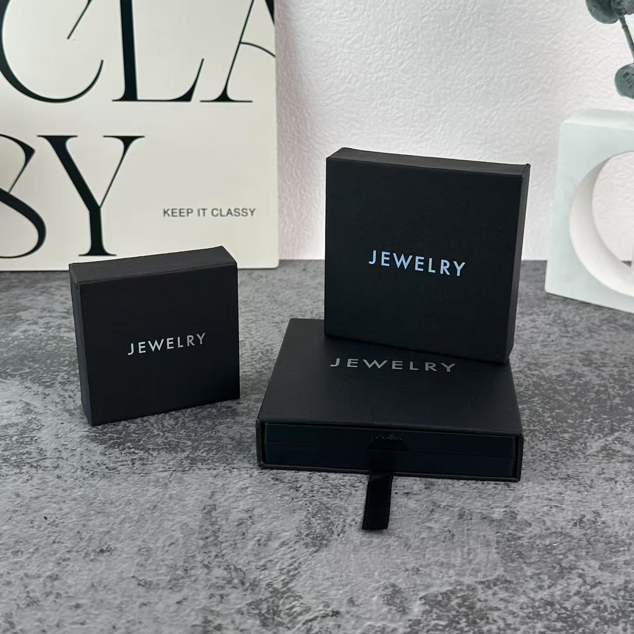 Specifications and models: Black card (with logo) + hot laser silver printed with jewelry (jewelry); 7*7*2cm