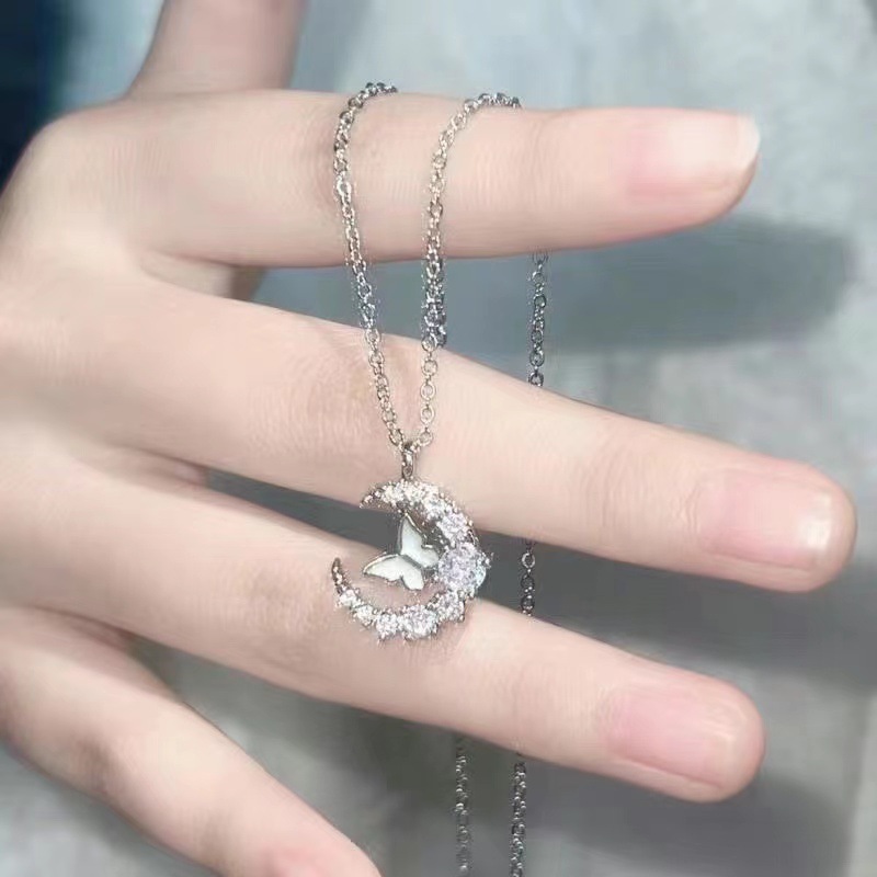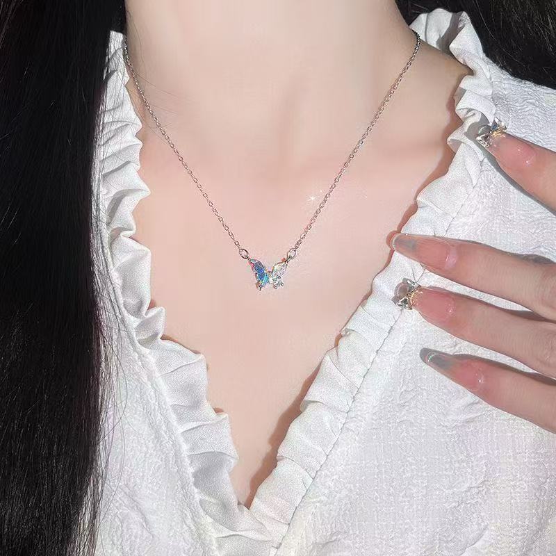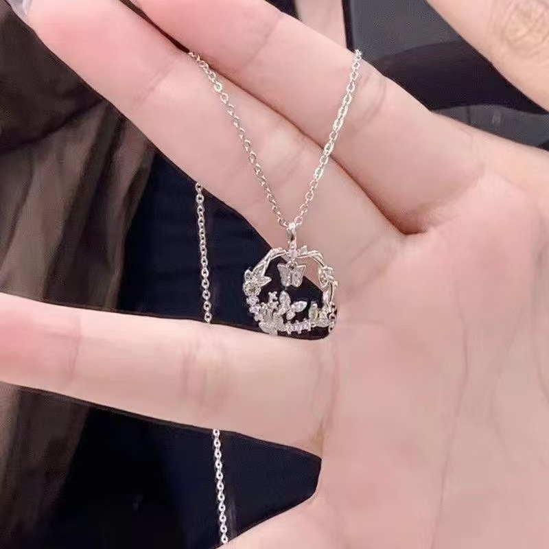 Summer Sweet Necklace Girl Pink Heart Butterfly Necklace Female Accessible Luxury Niche Starburst Clavicle Chain Ins Necklace