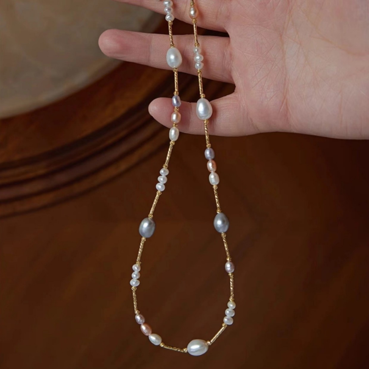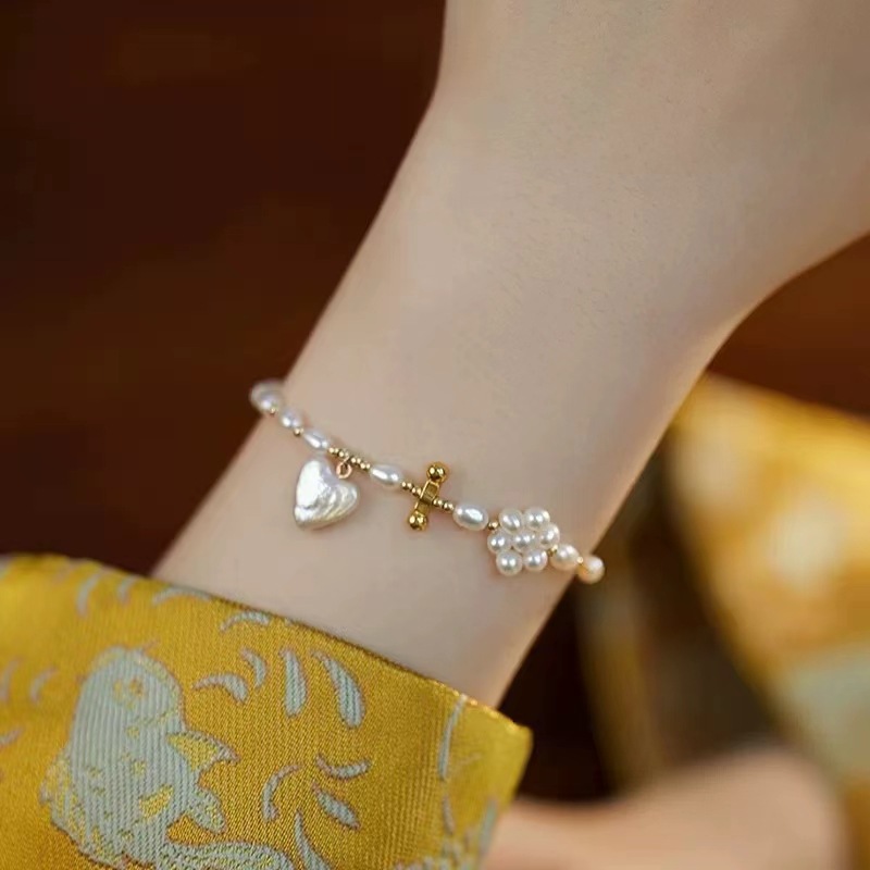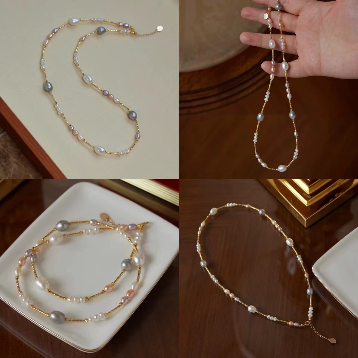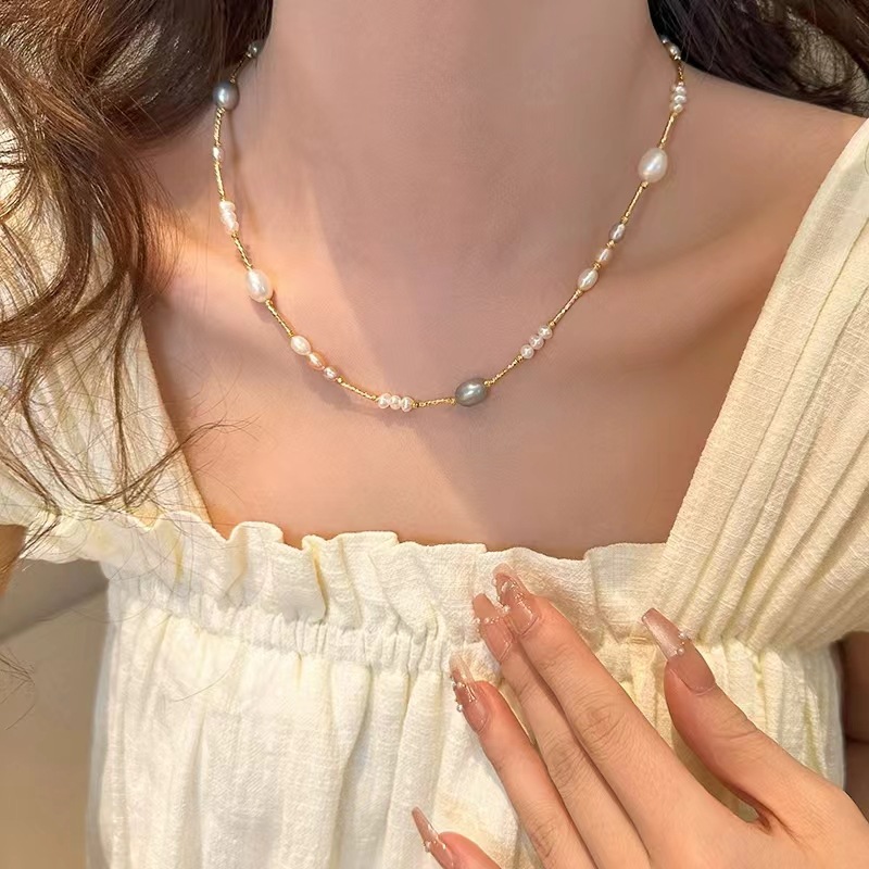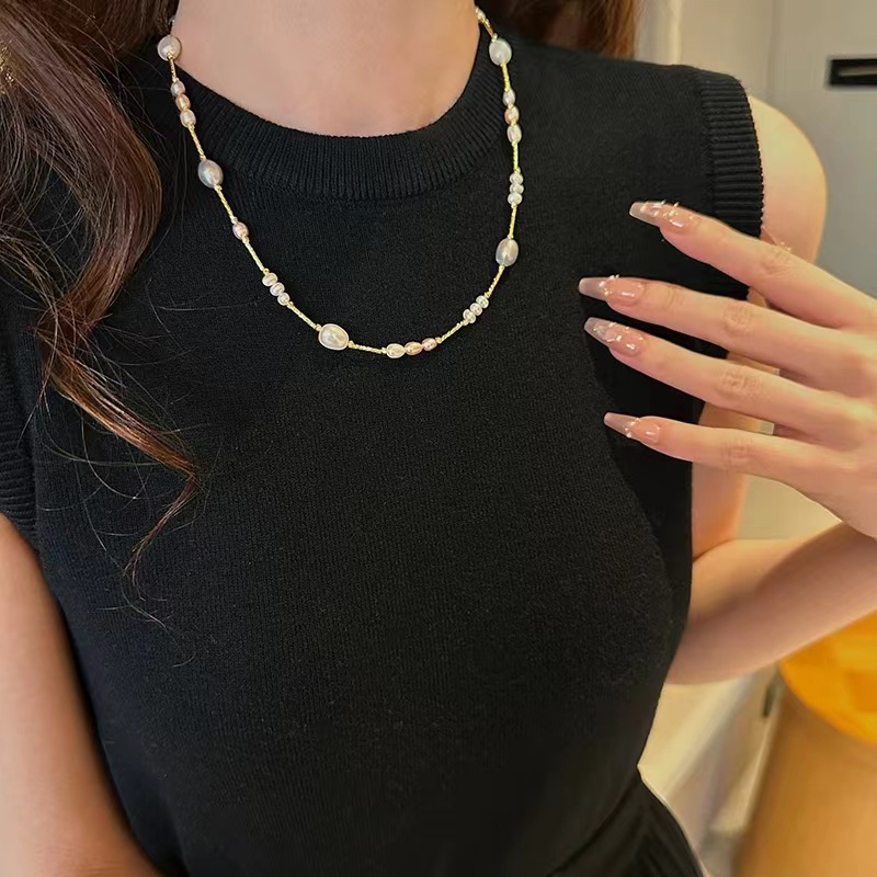 Real Gold-Plated Pearl Women's 2025 New Popular Clavicle Chain High-End Accessible Luxury Niche Necklace Bracelet Set