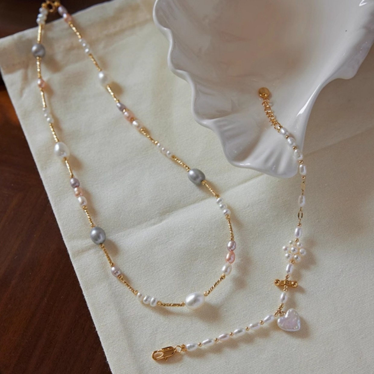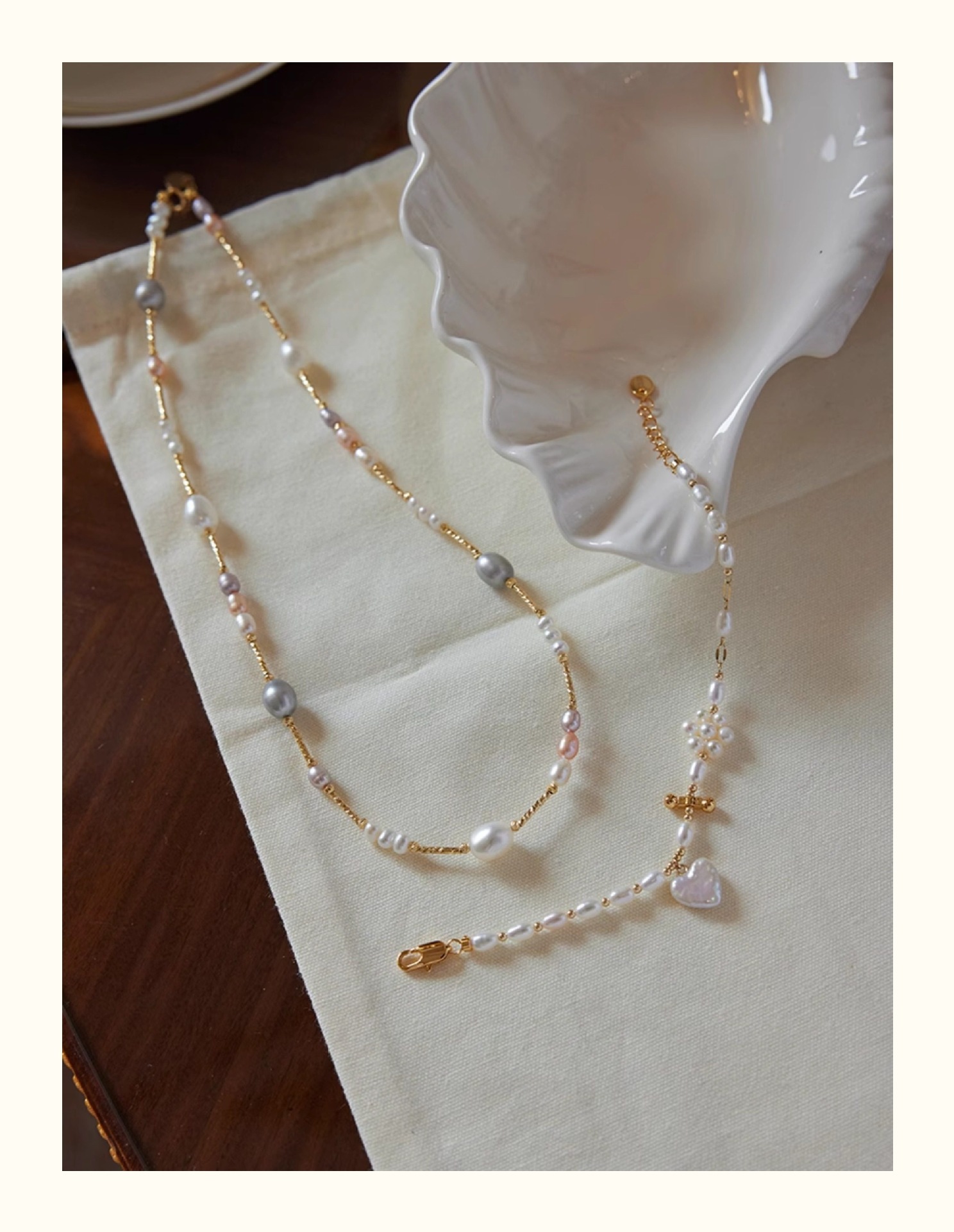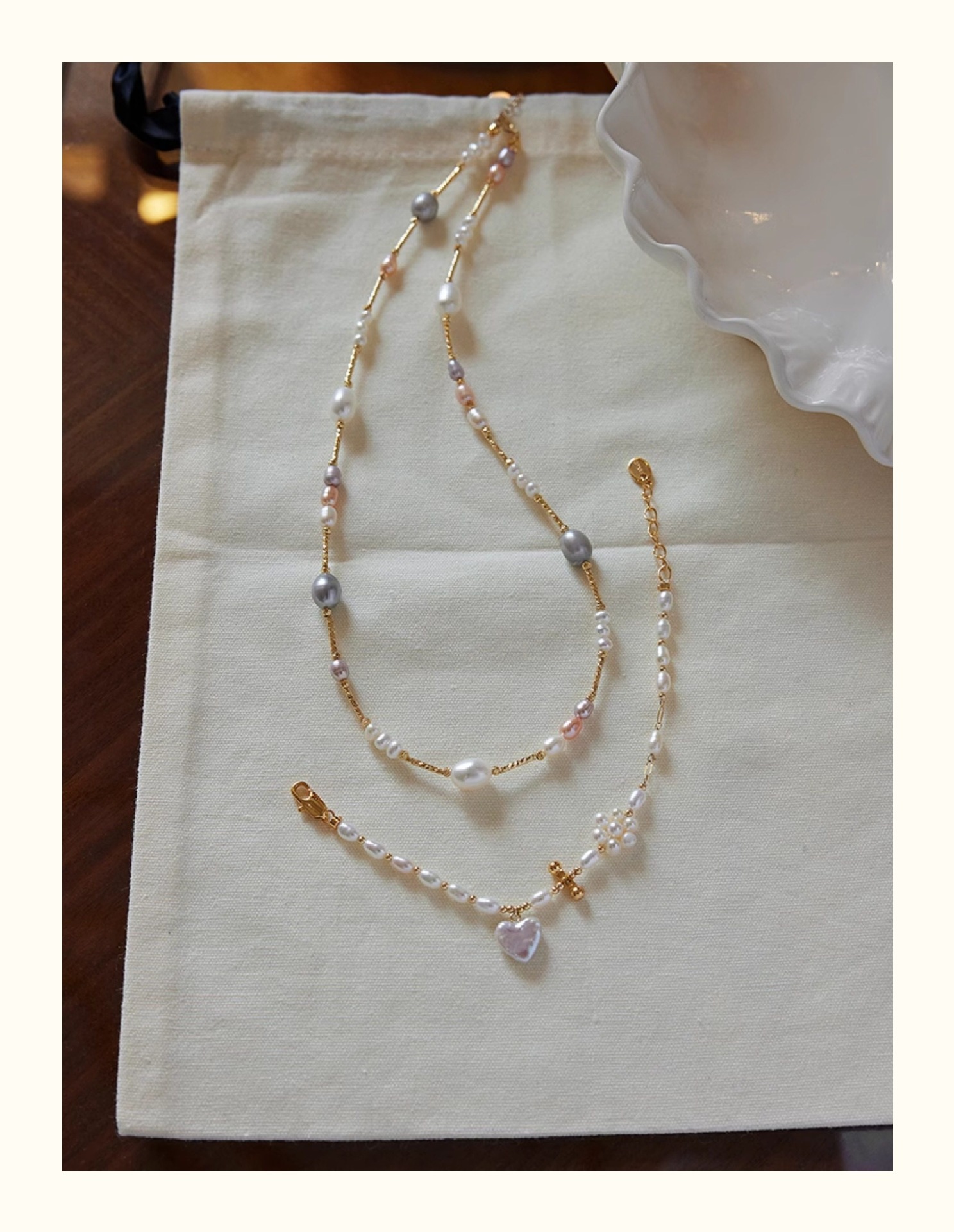 Color: Light gray spacer bead necklace + love pendant bracelet