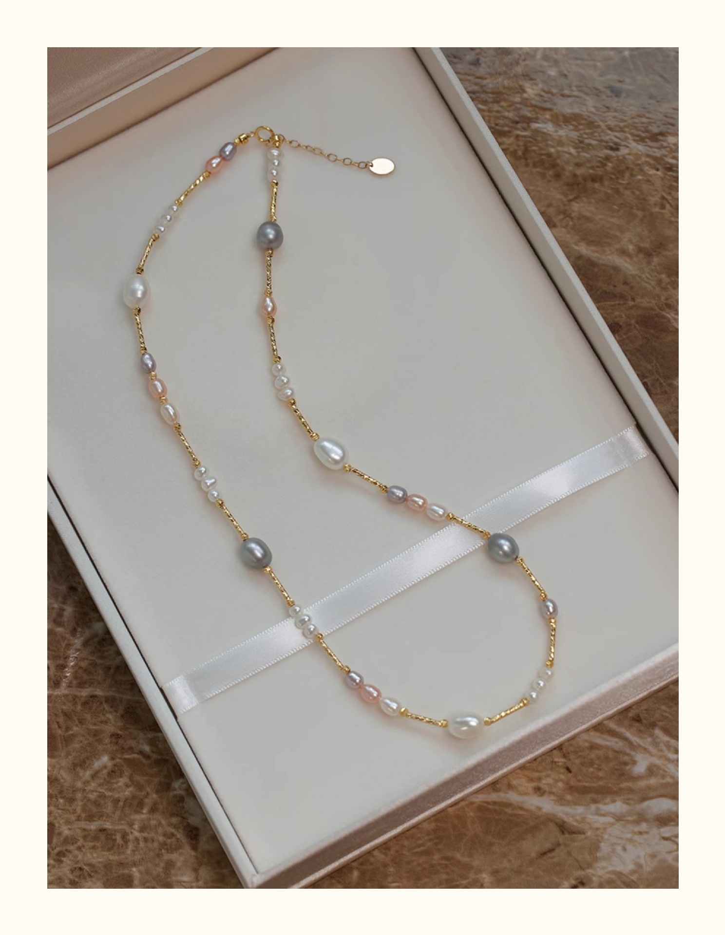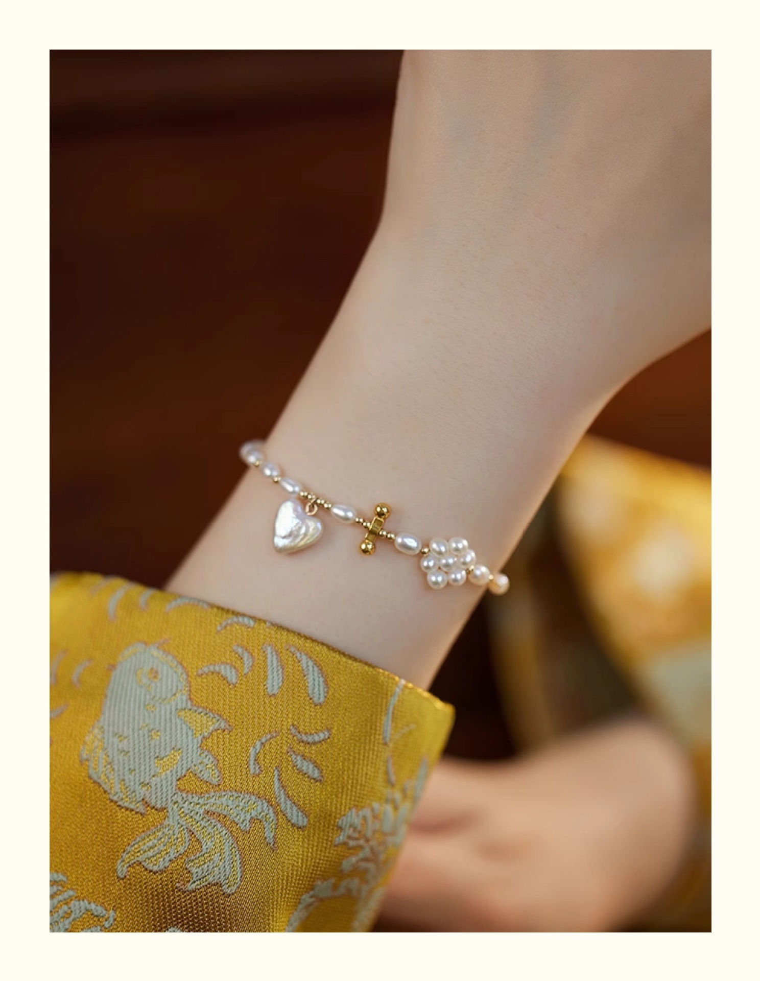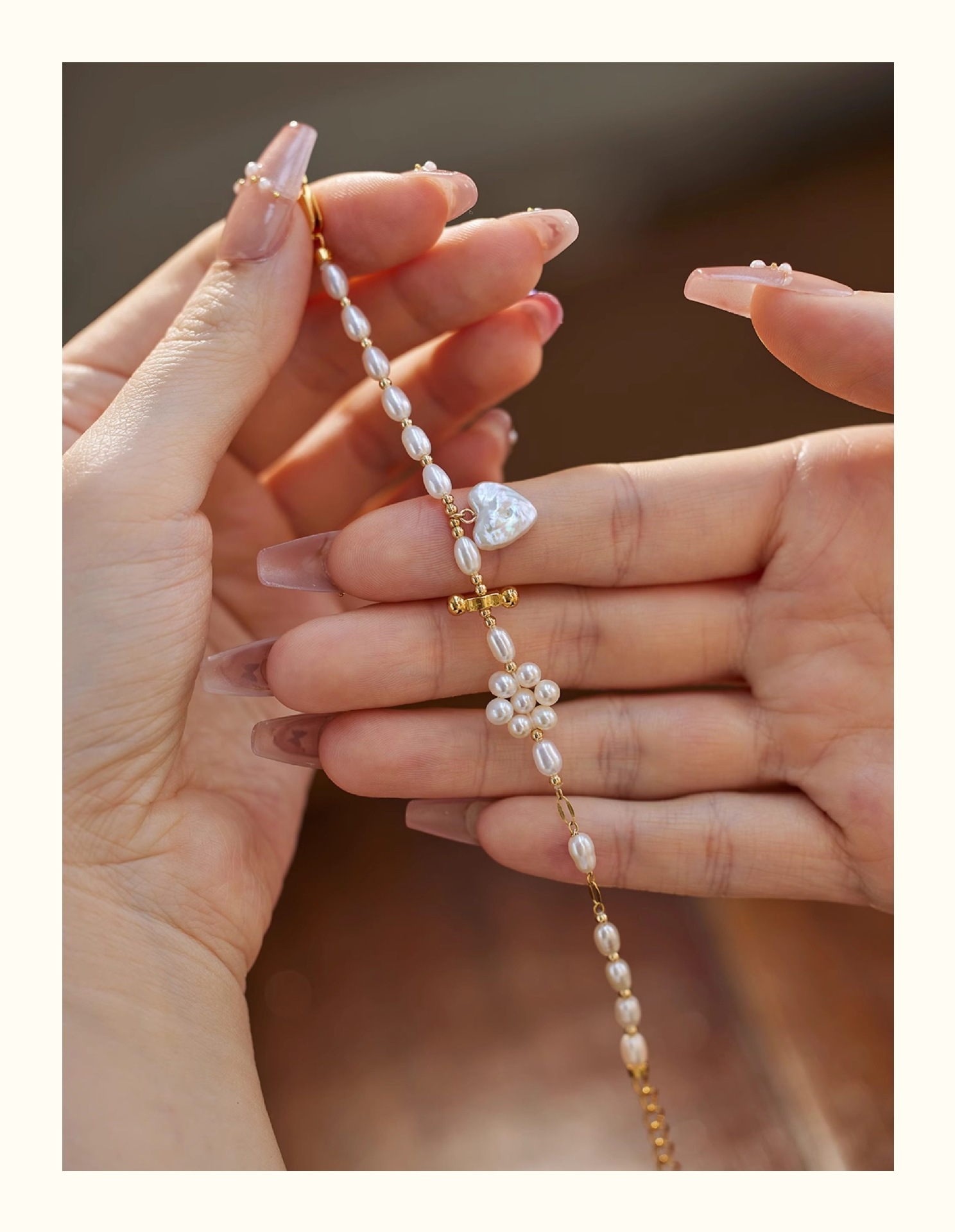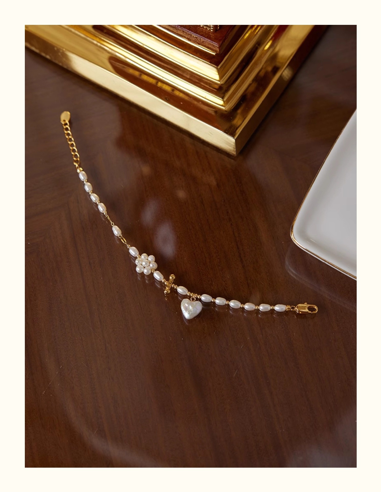 Color: Light gray spacer bead necklace + love pendant bracelet