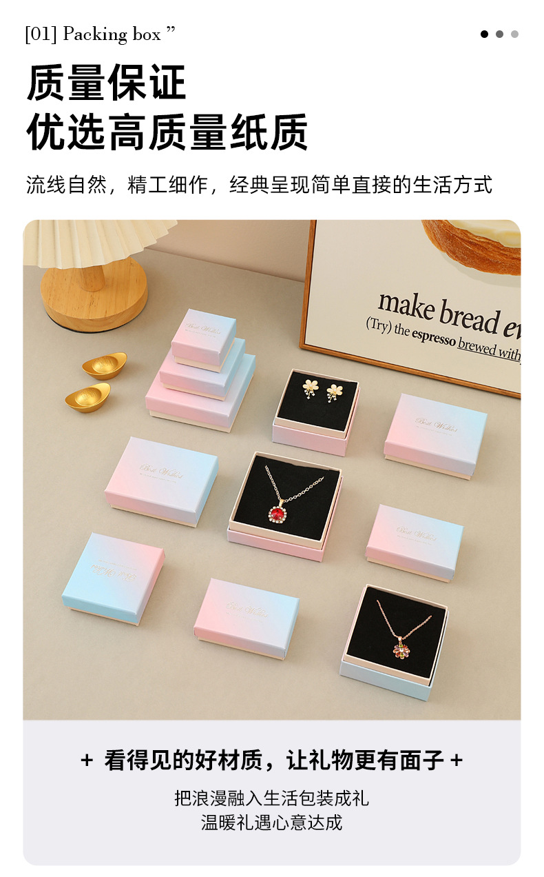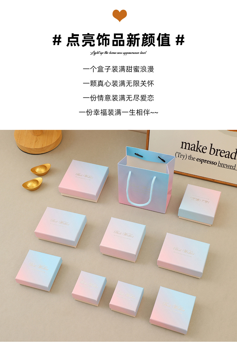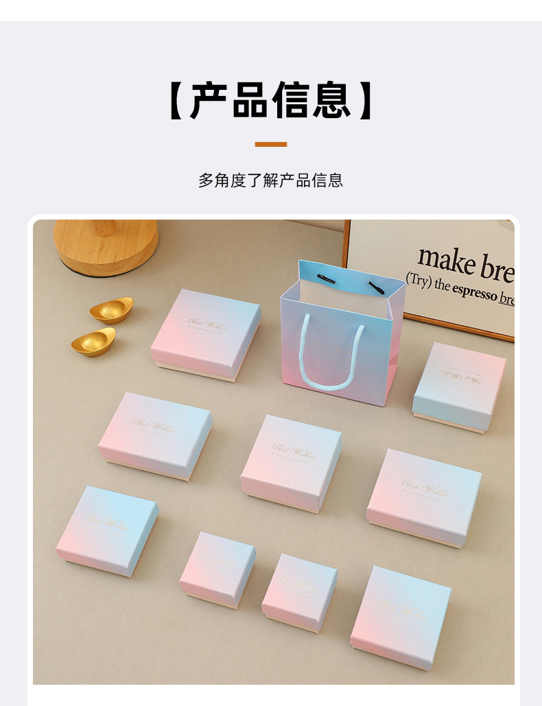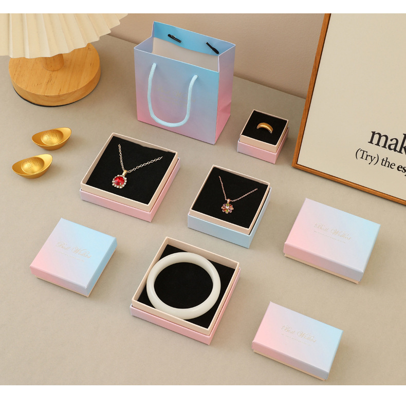 Specifications and models: Pink blue gradient [7*9*3cm necklace box with sponge]; jewelry box