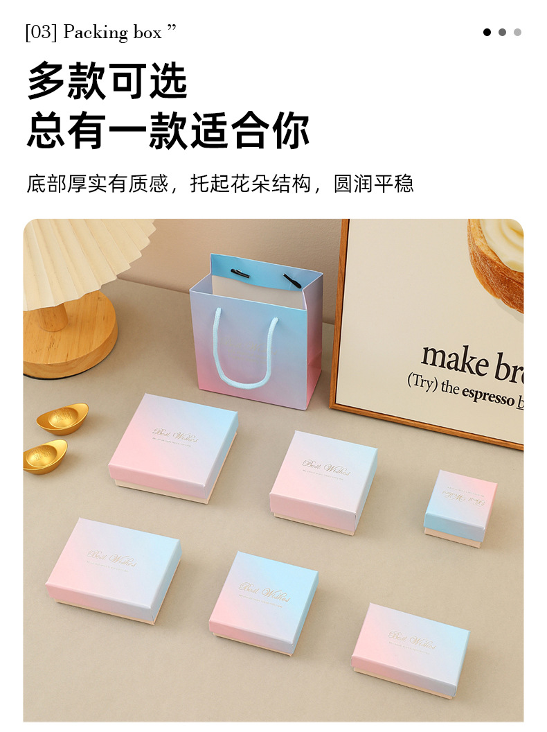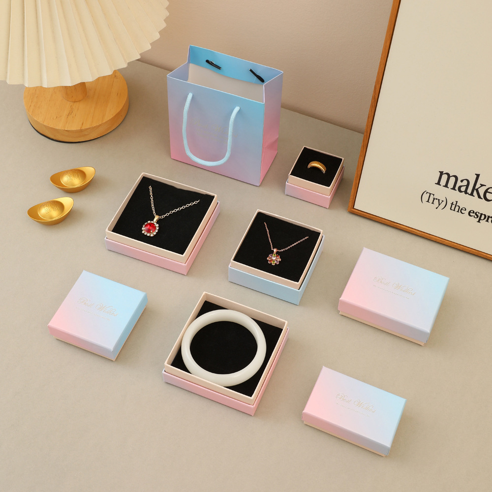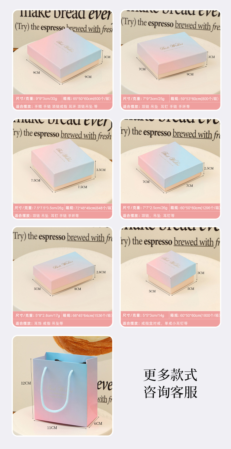Specifications and models: Pink blue gradient [7*9*3cm necklace box with sponge]; jewelry box