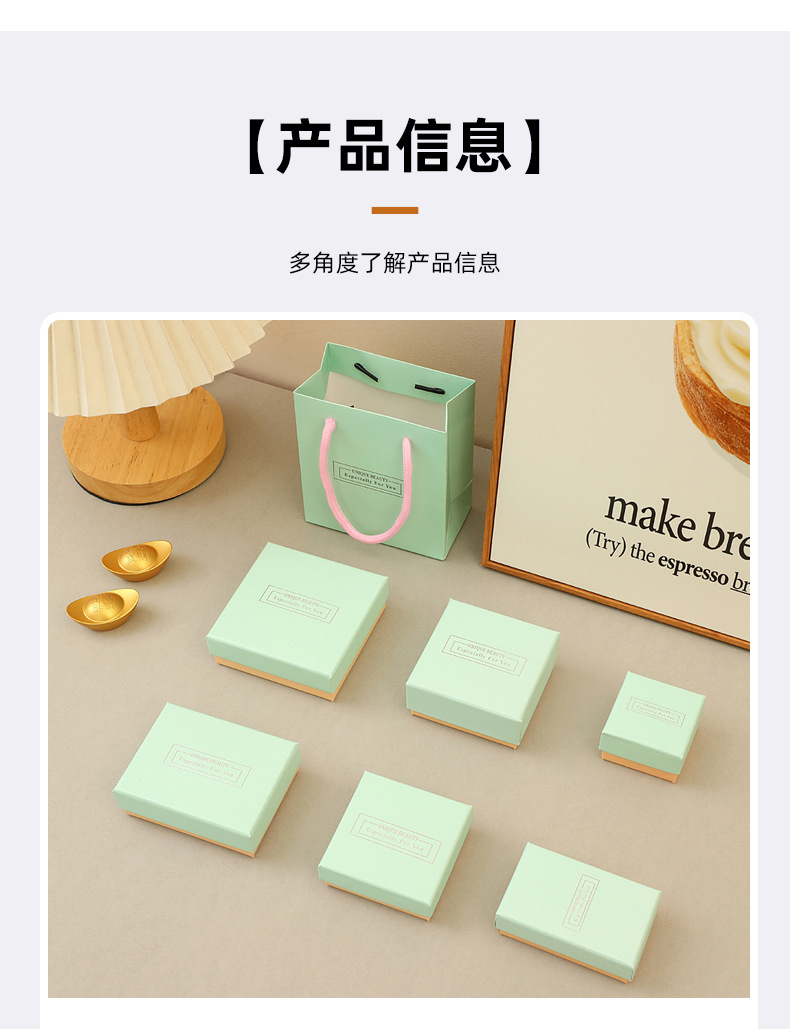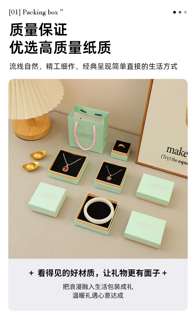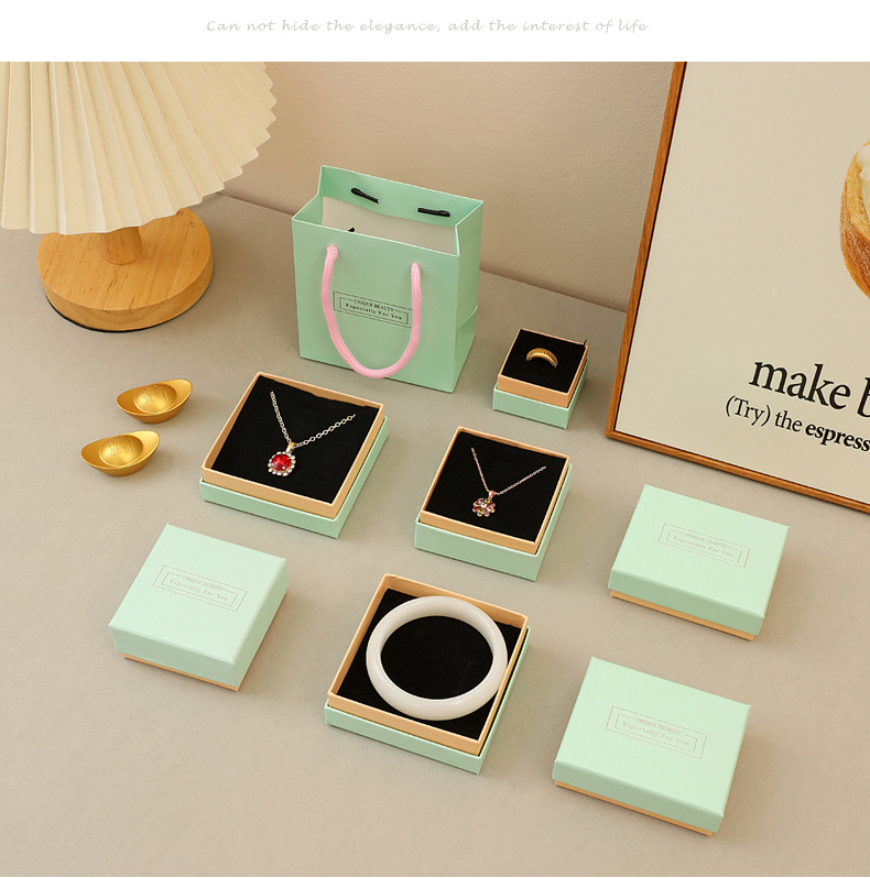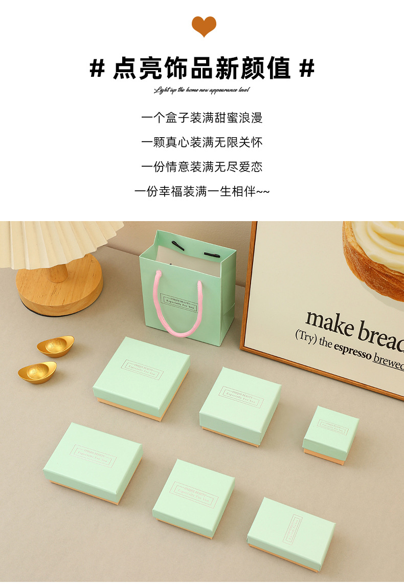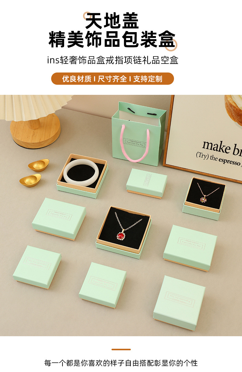 Specifications and models: Mint green [7*9*3cm necklace box with sponge]; hot silver jewelry box