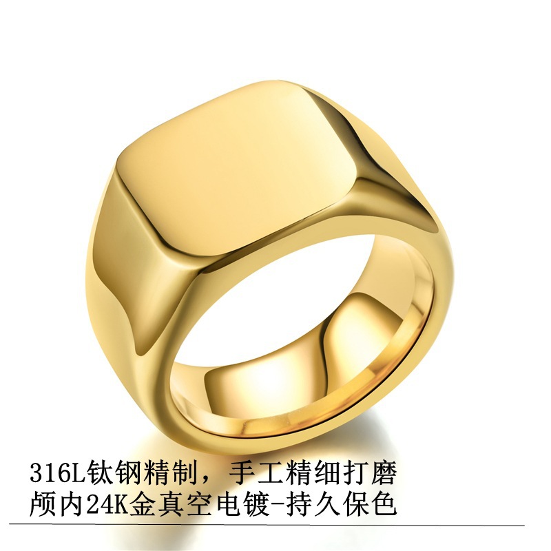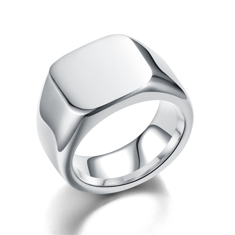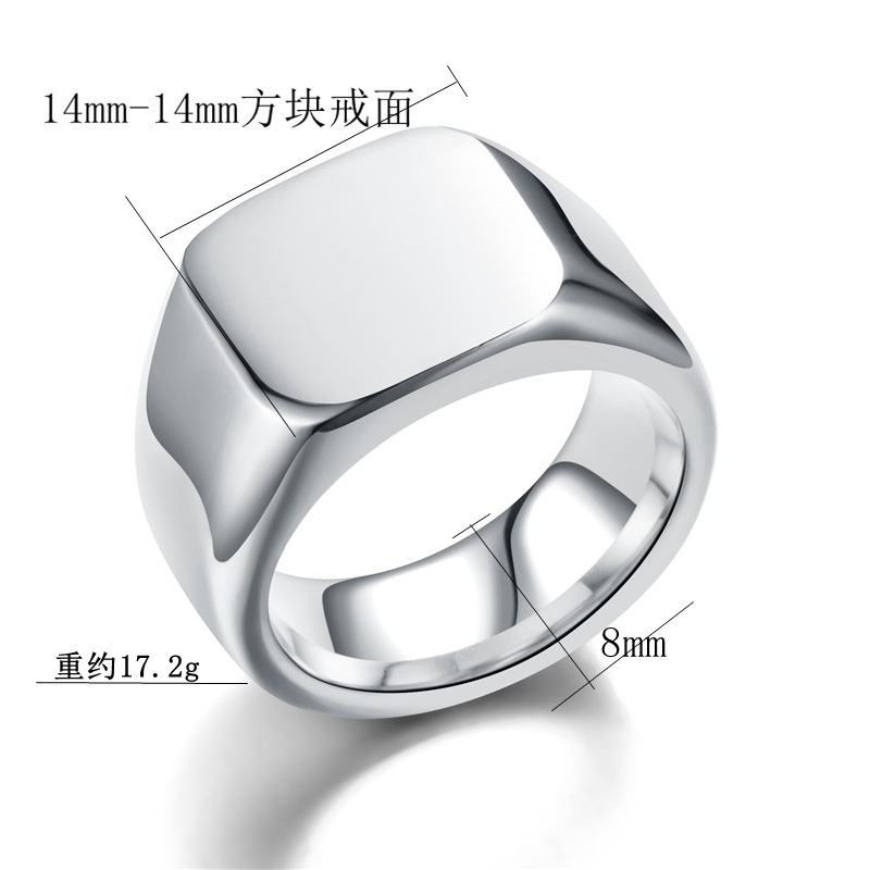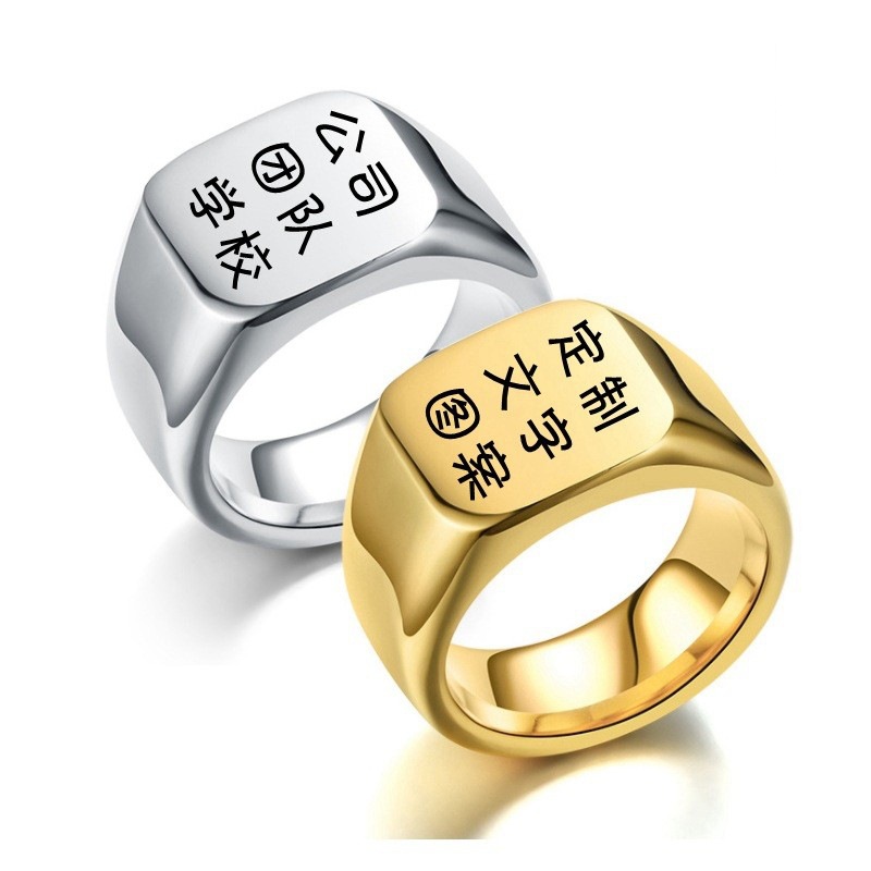 Cross-border European and American Explosions Solid Cast Titanium Steel Ring Male Neutral Seal Badge Geometric Ring Engravable Logo