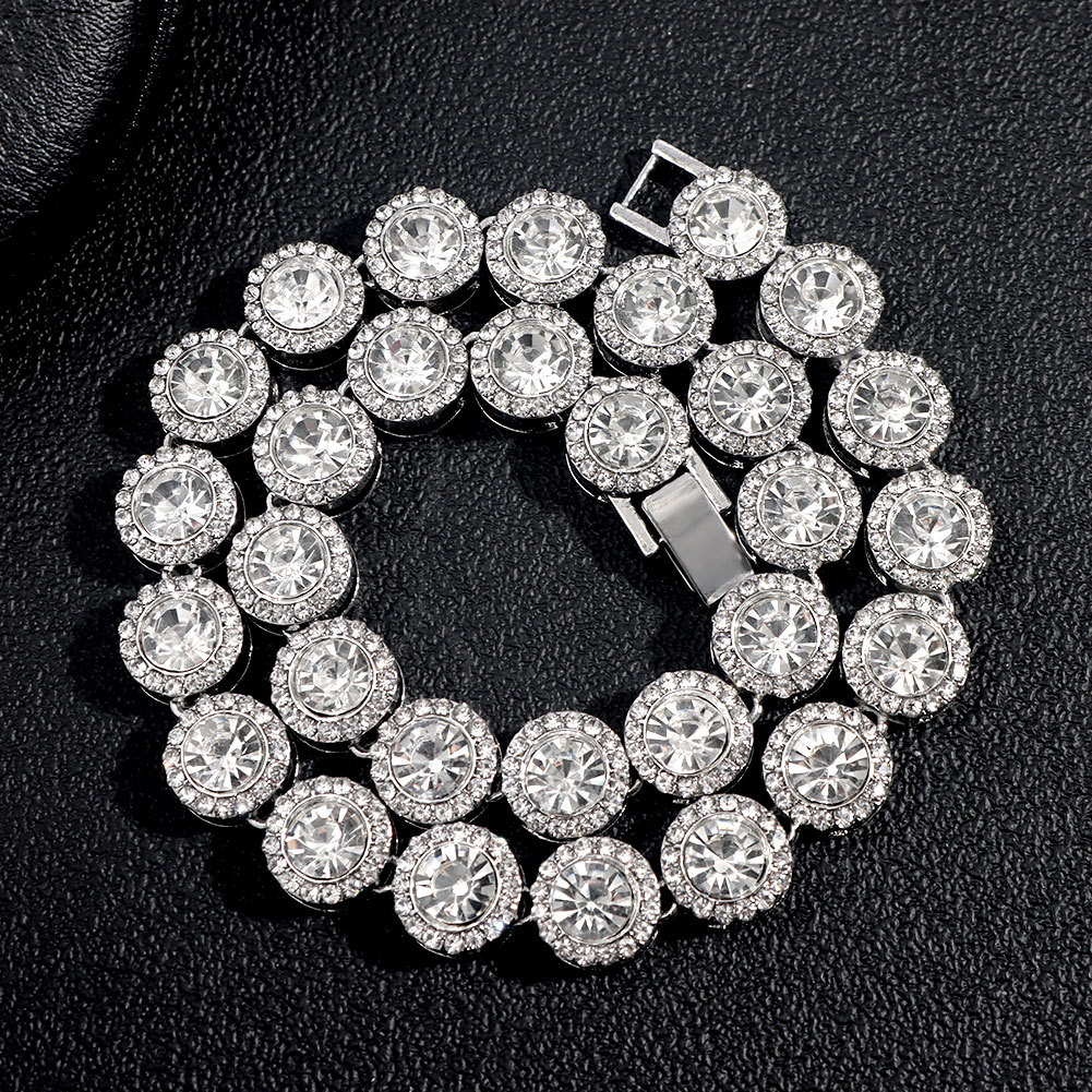 European and American Hot-Selling 10mm Perfect Diamond Men's and Women's Alloy Necklace Bracelet Cool Trendy Hip-Hop Rap Cuban Chain