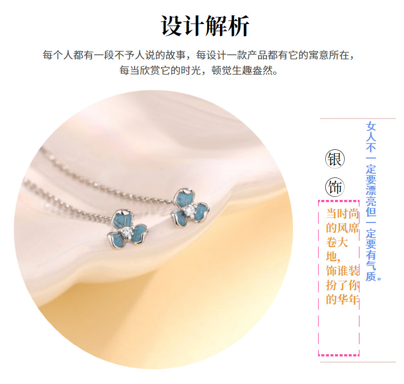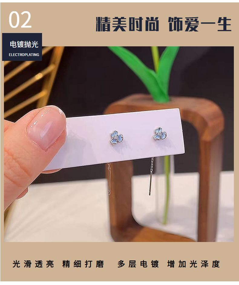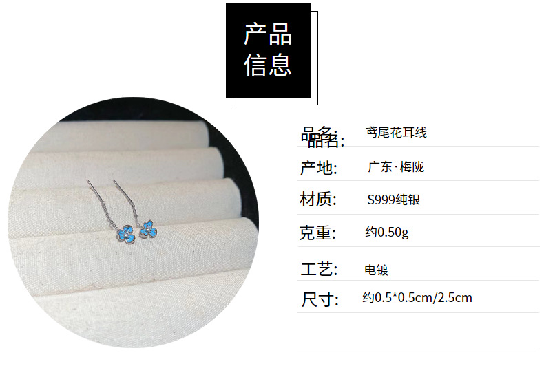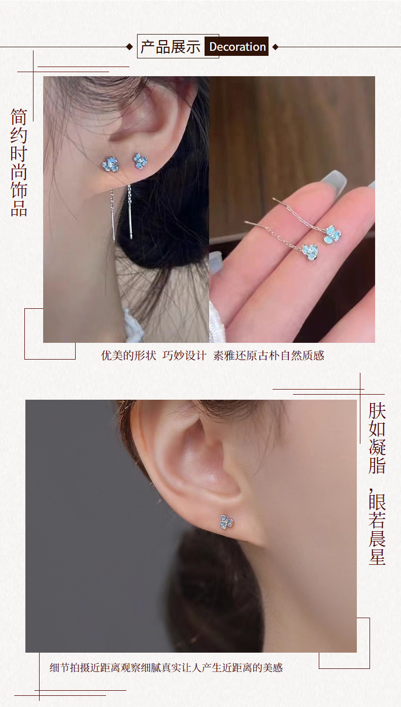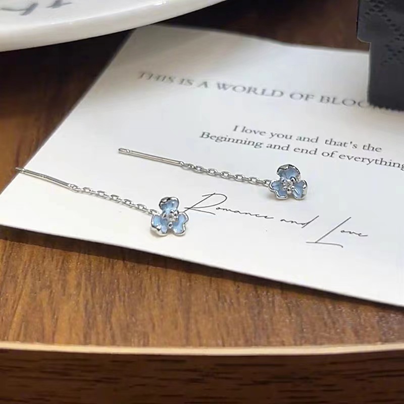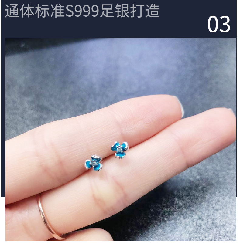 999 Pure Silver Blue Iris Flower Earrings for Women, Summer Light Luxury, Fresh and Delicate Ear Studs, Forest Style Temperament Earrings