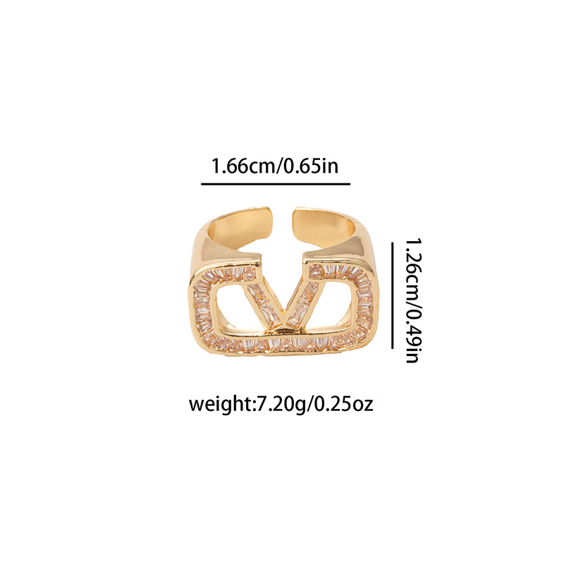 New Valentino Tianjia V Letter Square Zirconium Diamond Open Ring Brass Material Niche Design Ring Ring