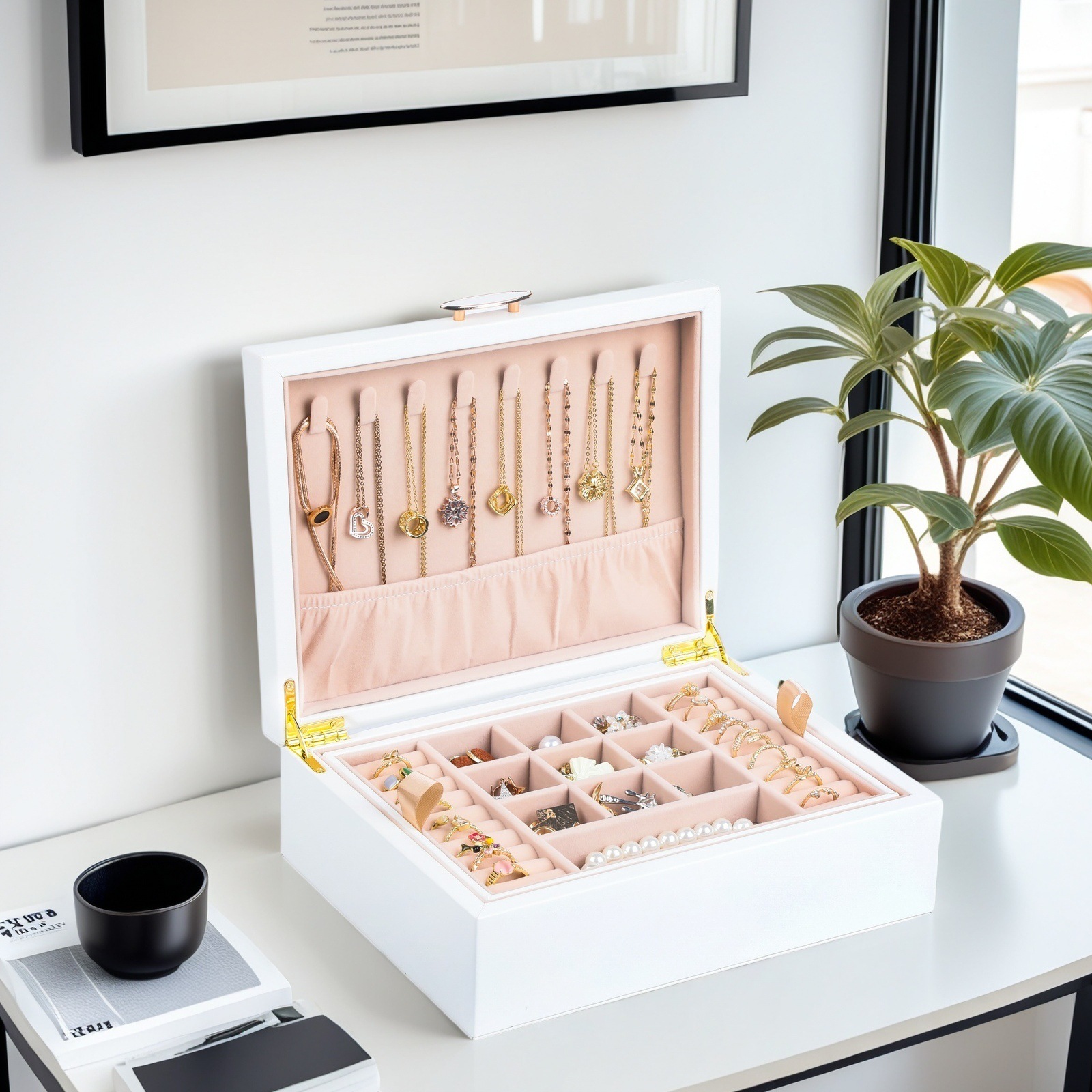 2025 New Jewelry Box Small High-End Exquisite Earrings Earrings Necklace Portable Gold Jewelry Storage Box
