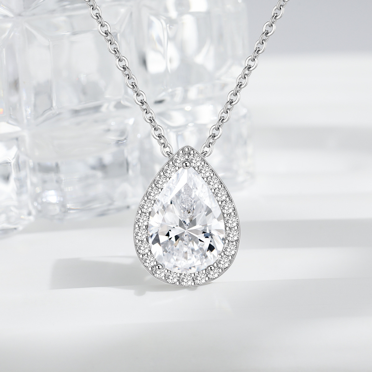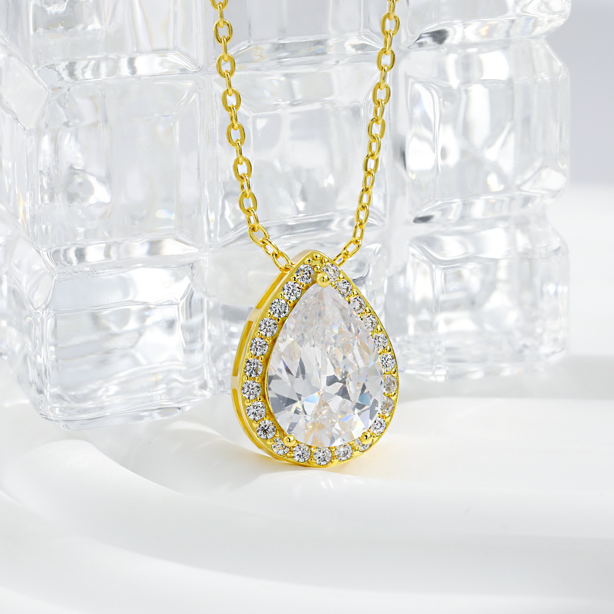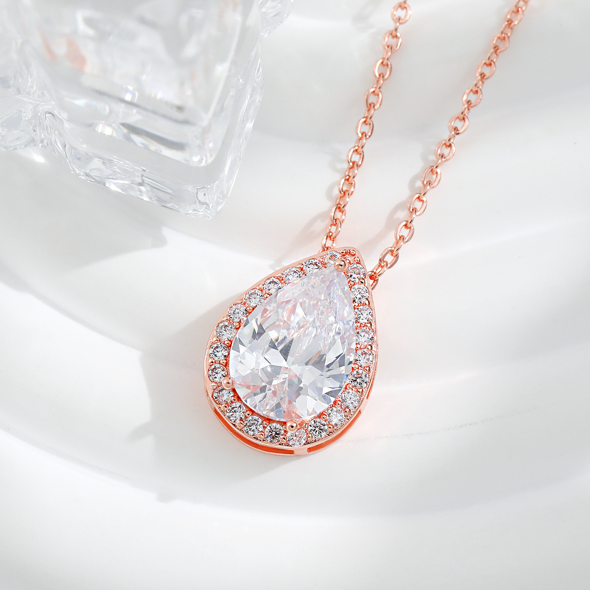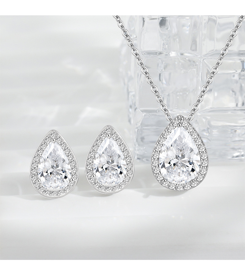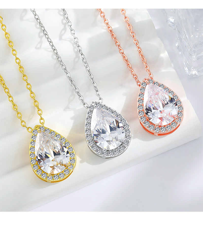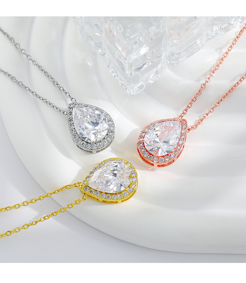 Amazon Hot Selling European and American Bride suit Women's High Sense Internet Celebrant High Sense Diamond Drop-shaped Zircon Necklace