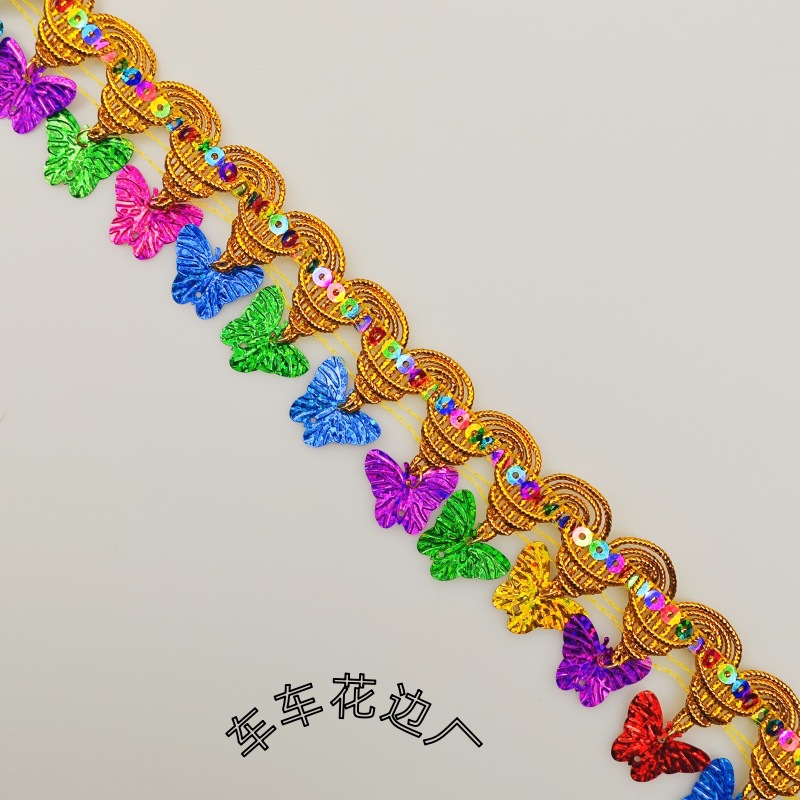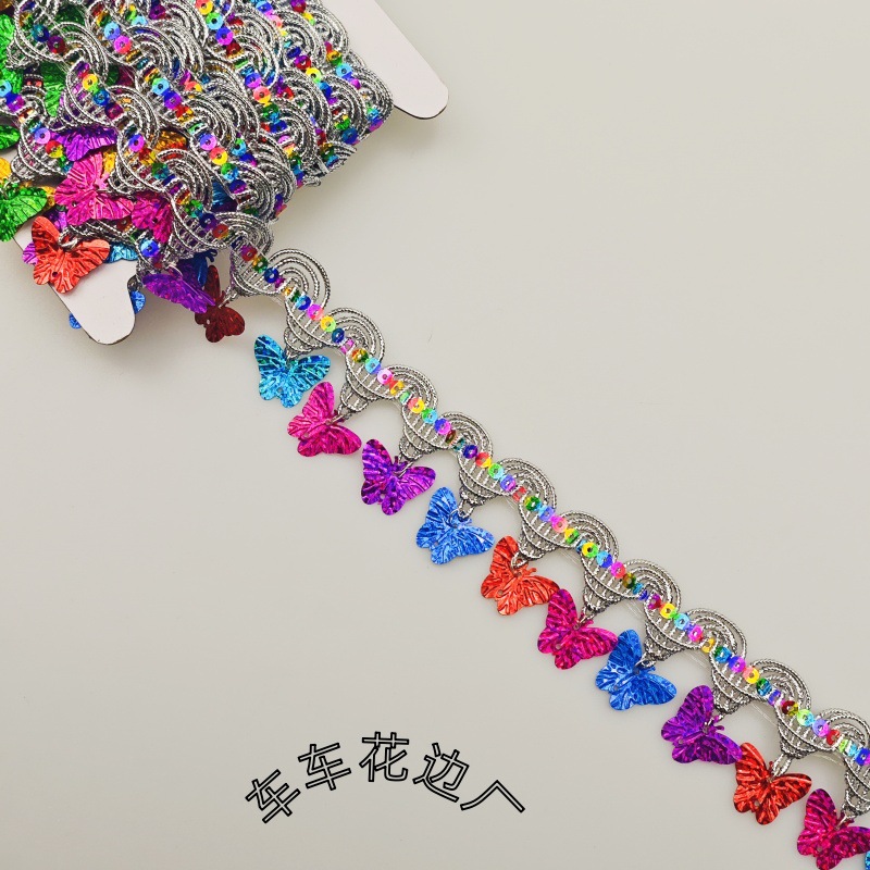 Large Edge Pagoda Laser Colorful Butterfly Sequin Handmade DIY Tassel Pendant Lace Clothing and Skirt Accessories