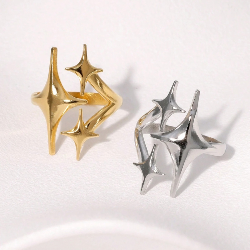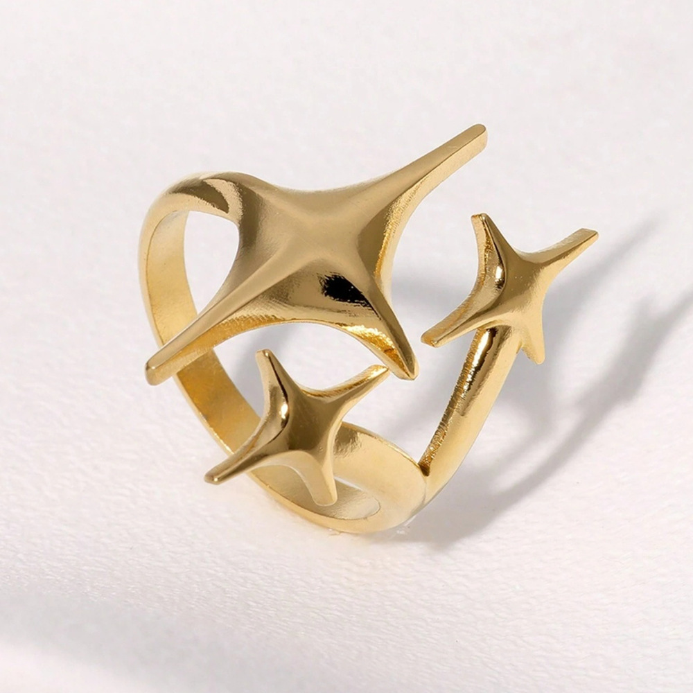 European and American Cross-Border Niche Design Star Stainless Steel Ring for Women That Does Not Fade, Simple and Cool Style Gold-Plated Jewelry