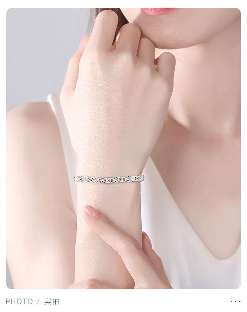 New Four-Leaf Clover Silver-Plated Bracelet for Girls, Heart-Shaped Clover Wholesale, Korean Style Simple and Personalized Niche Design