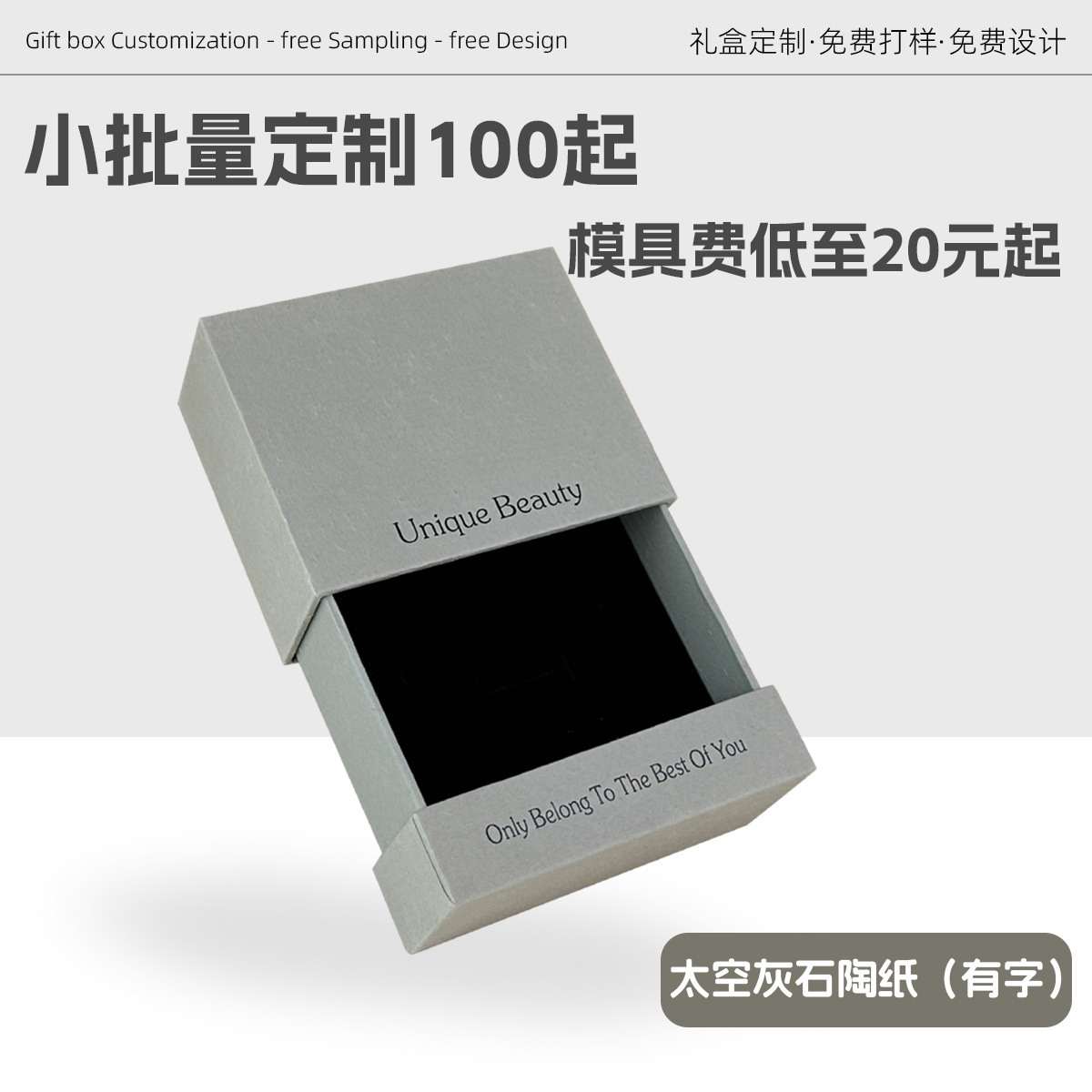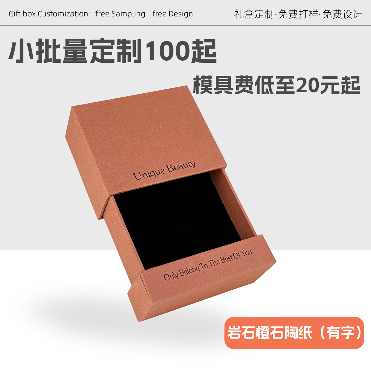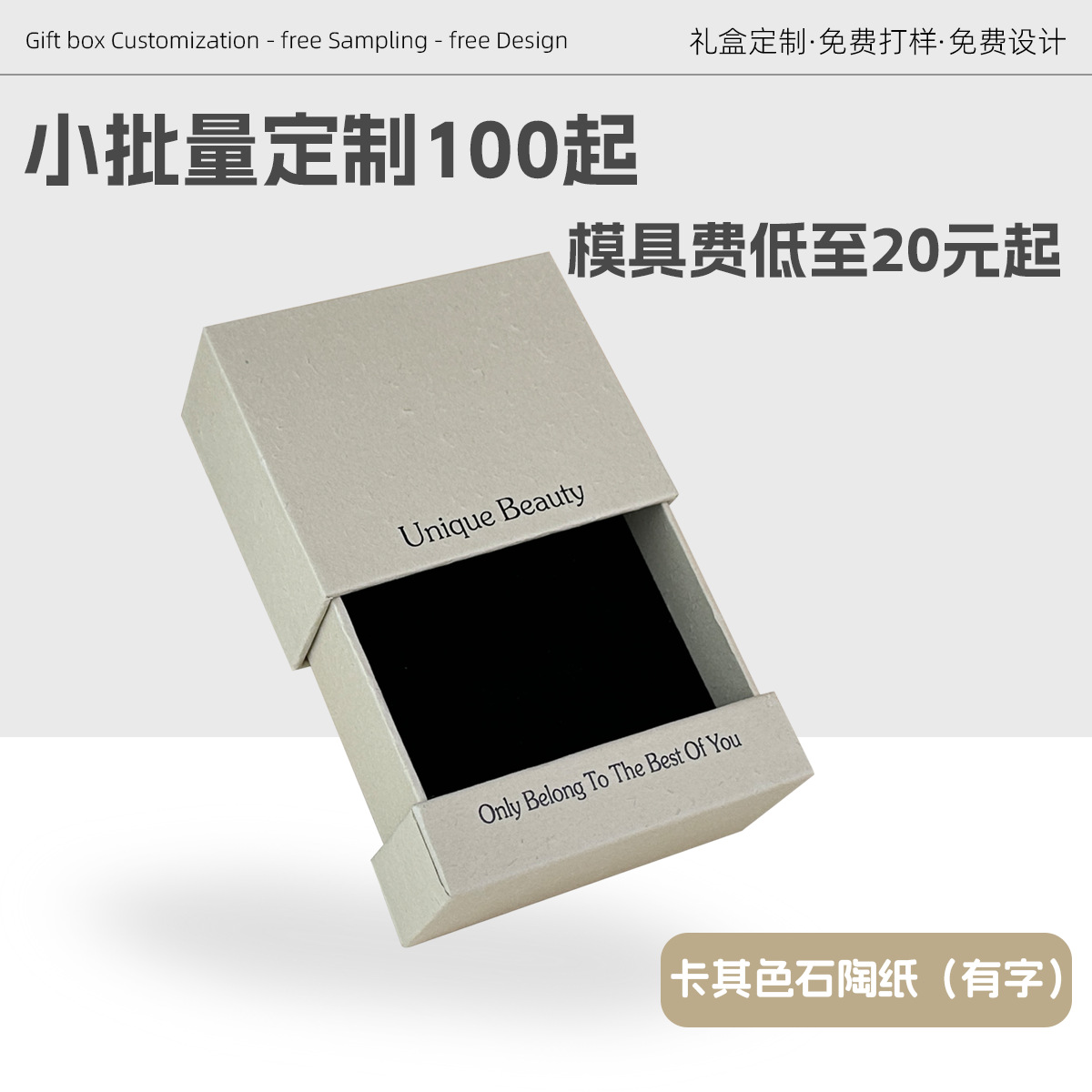 Specifications and models: Khaki stone pottery paper (with words); 10.5*10.2*4.2cm + black suspended film box