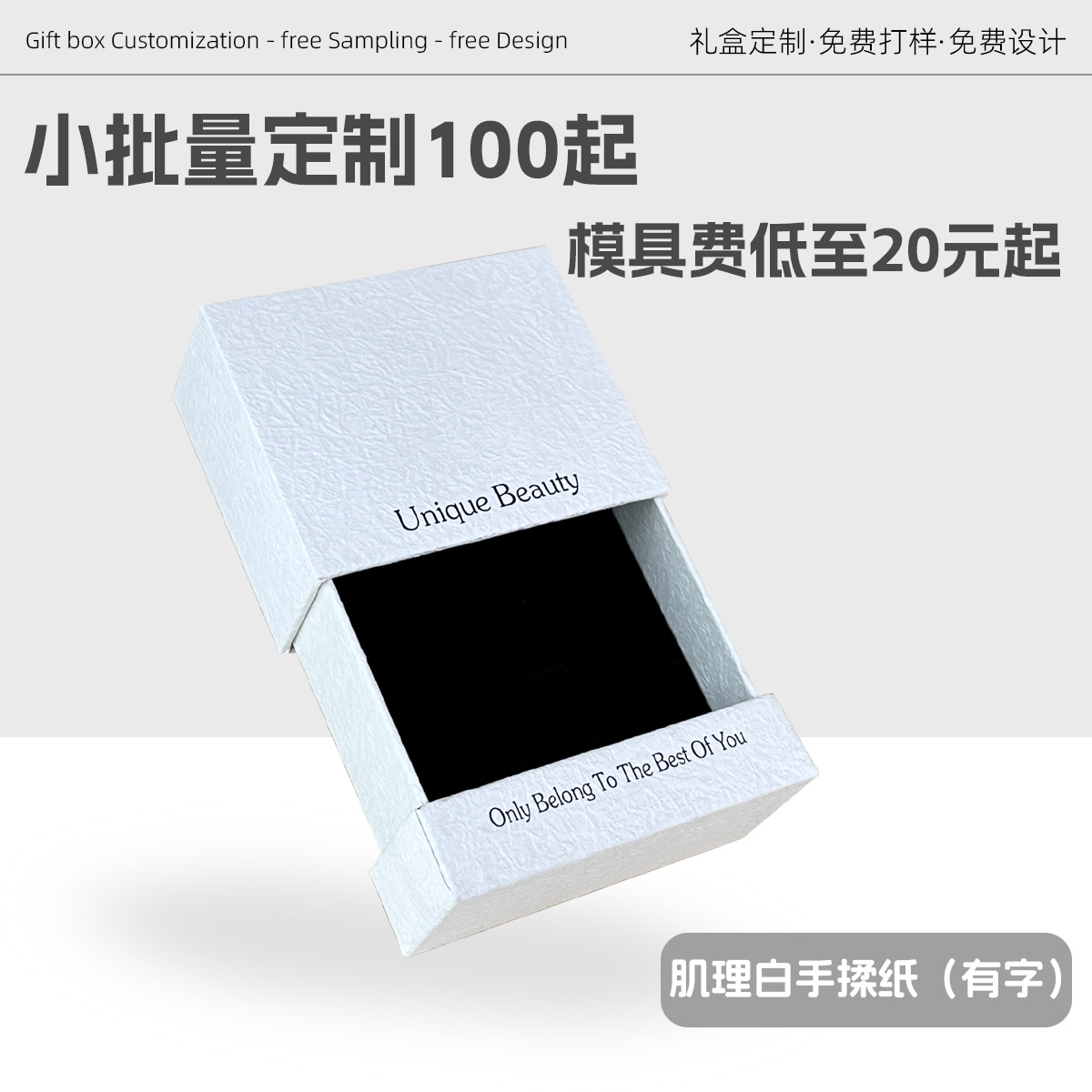 Specifications and models: Texture white hand soft (with words); 10.5*10.2*4.2cm + black suspended film box