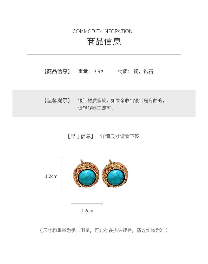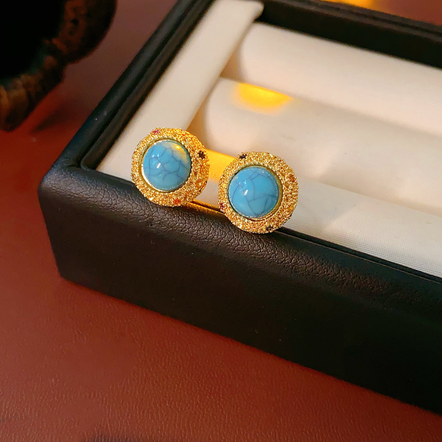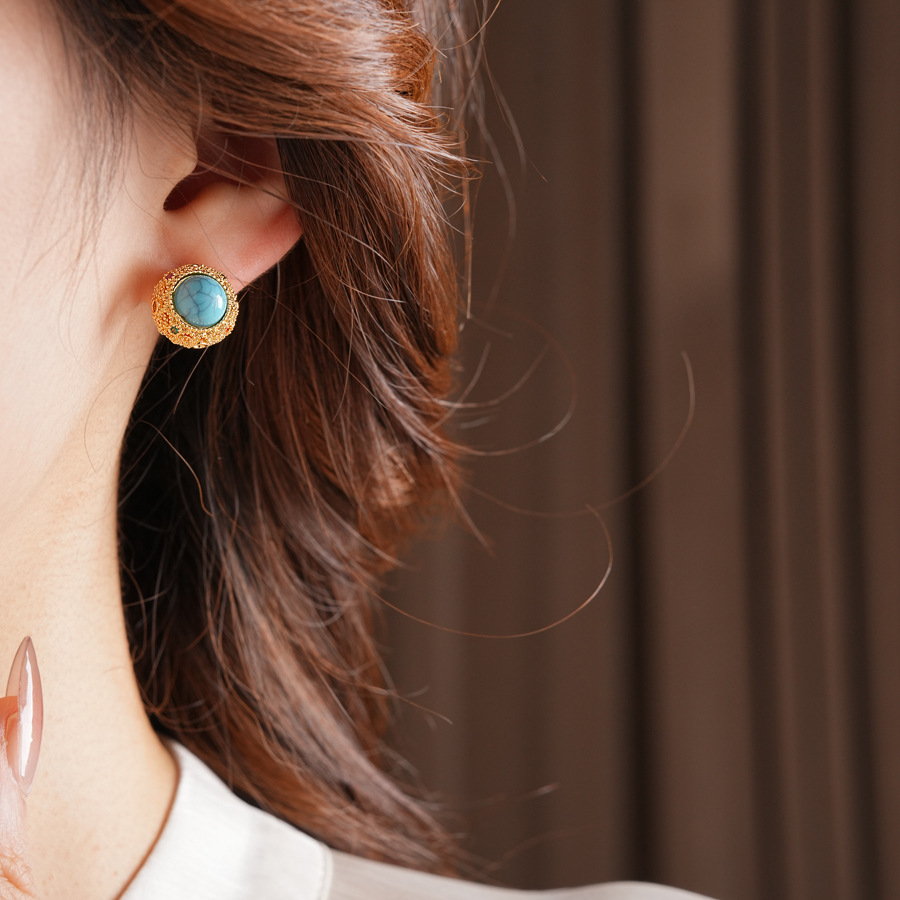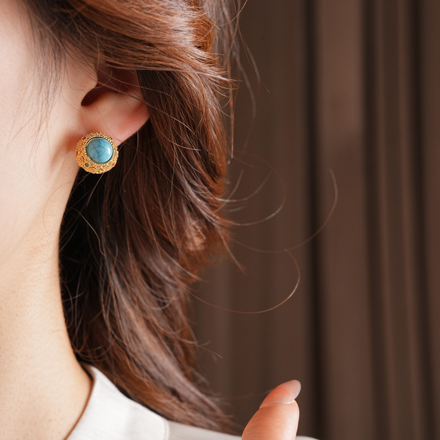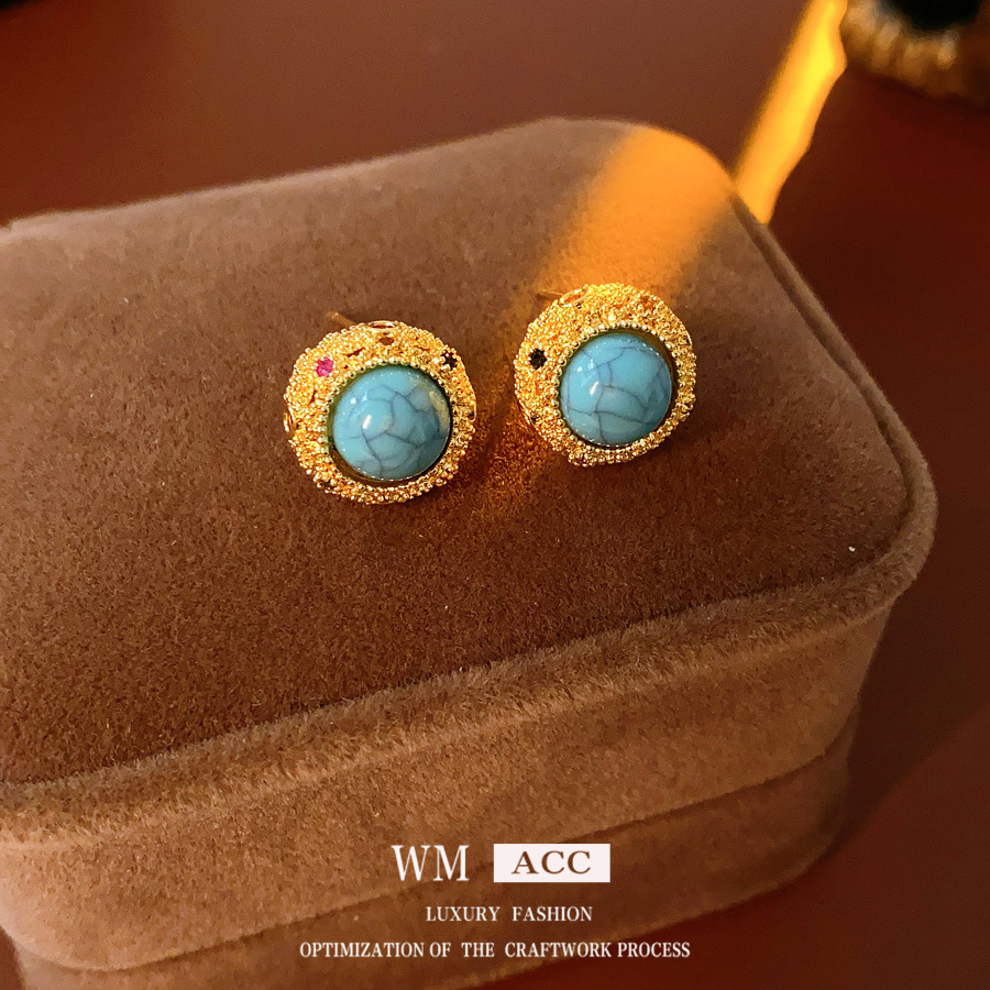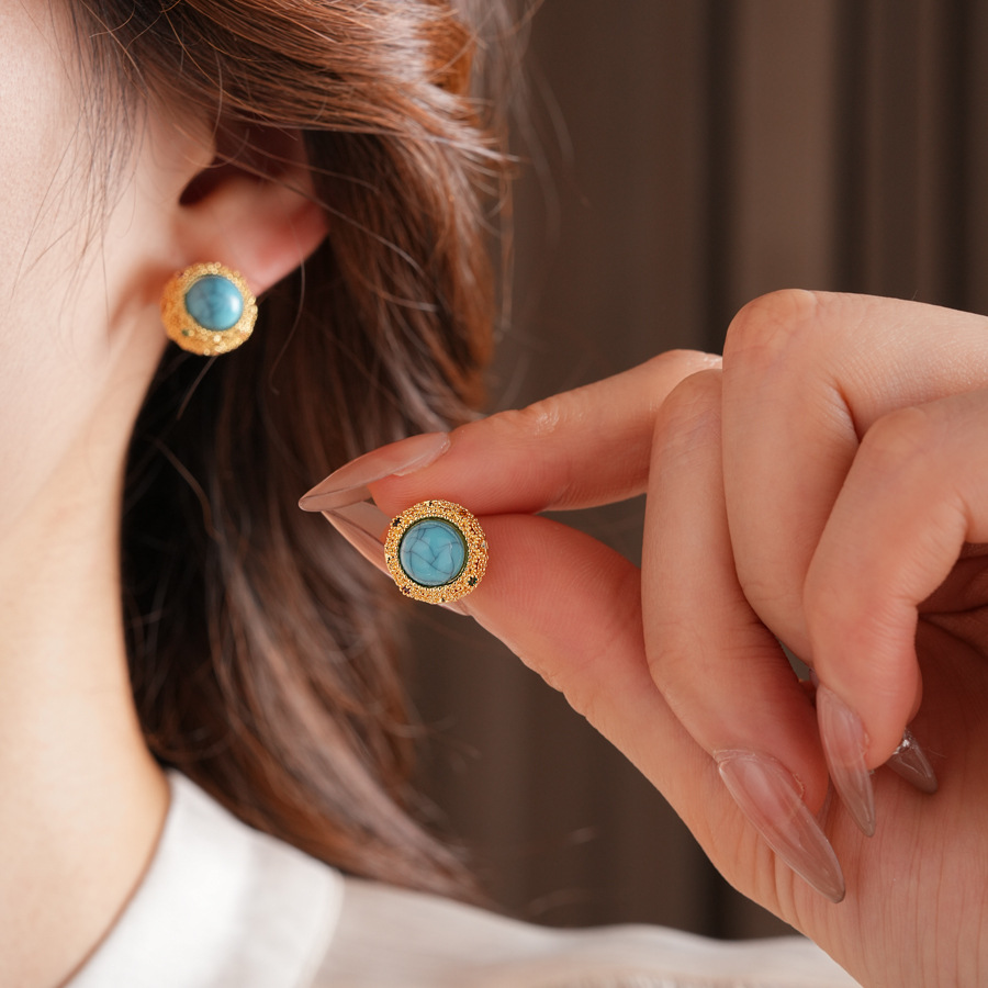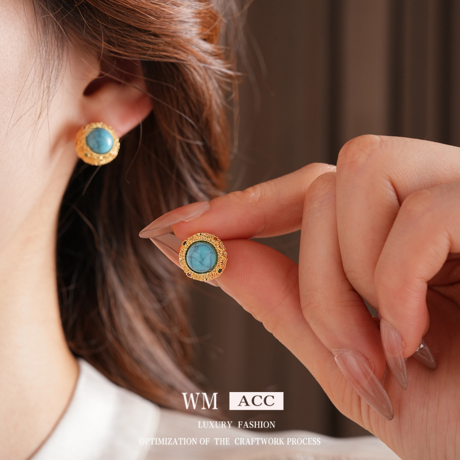 18k Gold Electroplated Silver Needle Turquoise Earrings Niche All-match Vintage Earrings Light Luxury High-end Fashion Earrings for Women