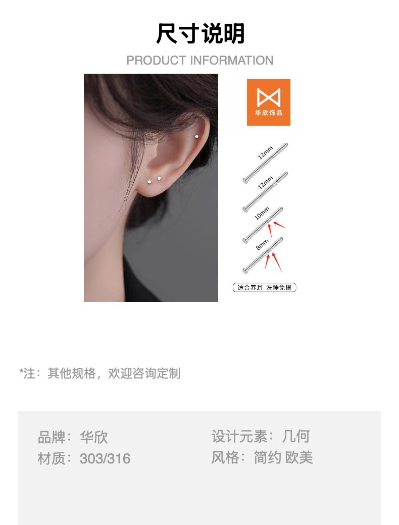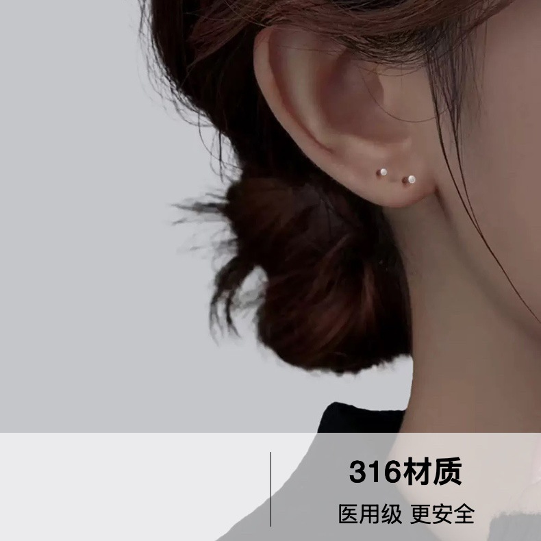 Implantable Grade 316 Medical Titanium Steel Earrings Female Ear Holes Ear Stick Ear Bone Nail Male Ear Stick Anti-blocking Needle Earrings Jewelry