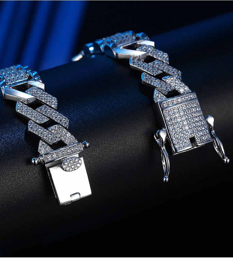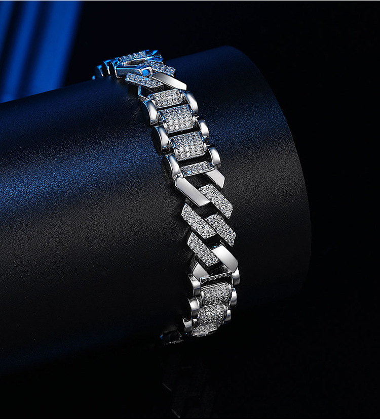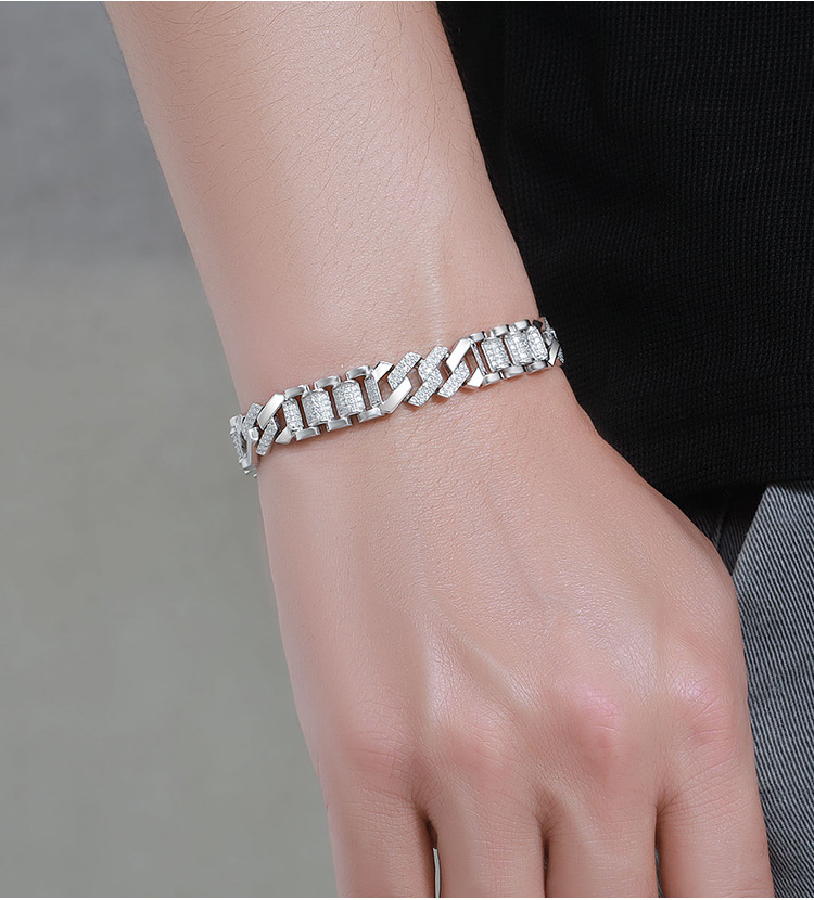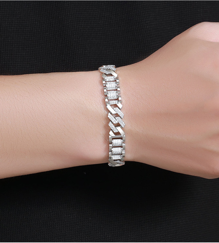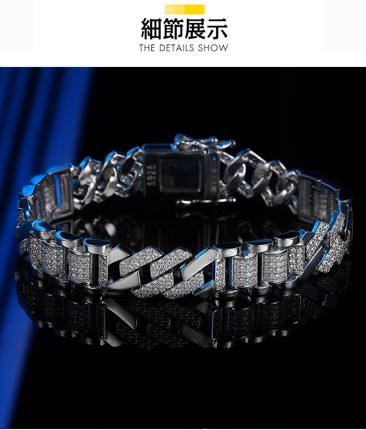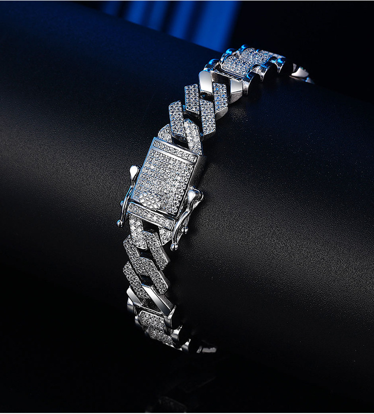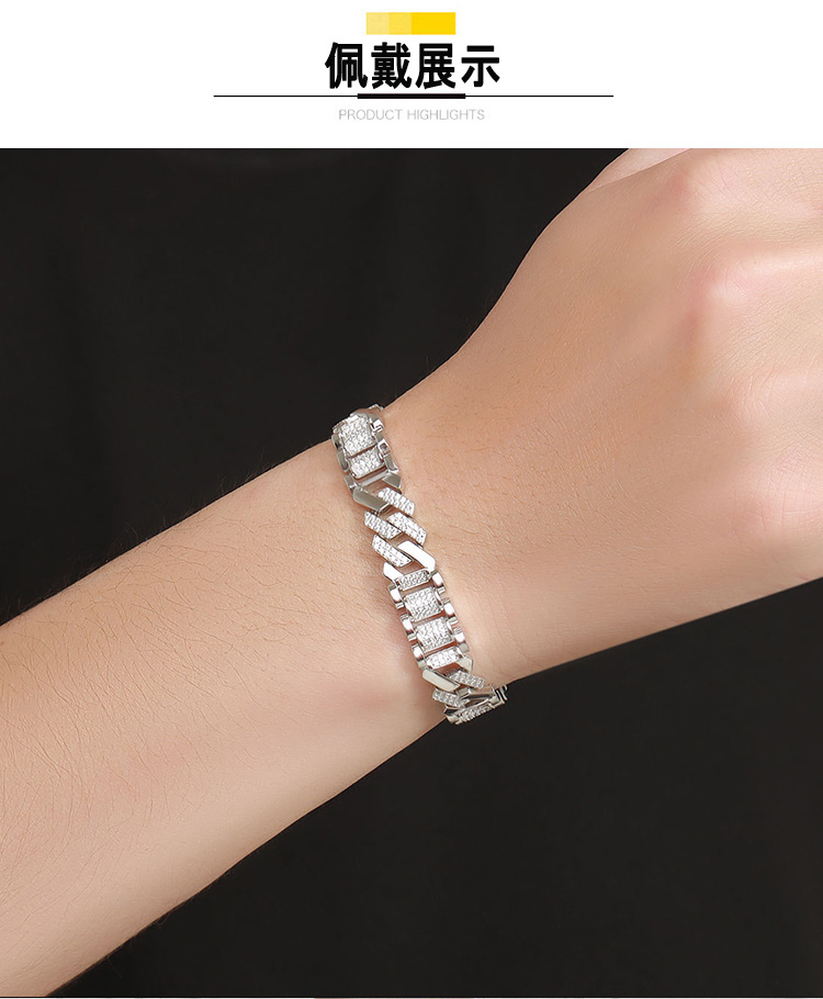 Bracelet with Cuban Chain, Diamond-Shaped Men's Chain, Hip-Hop Rap Standard, Street Fashion, European and American Exaggerated Style