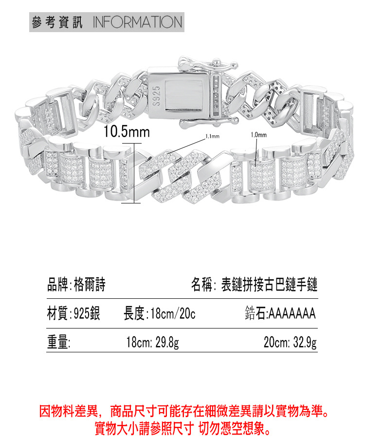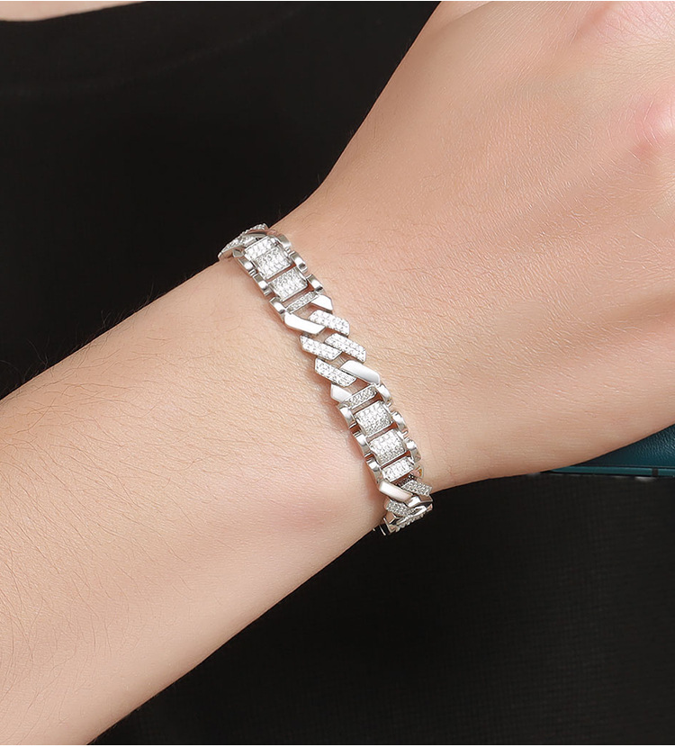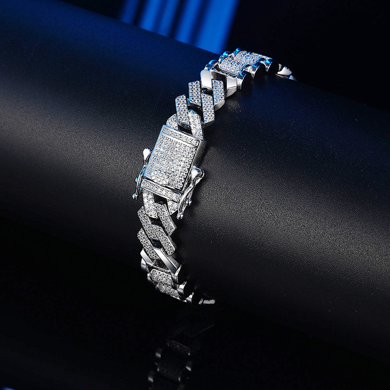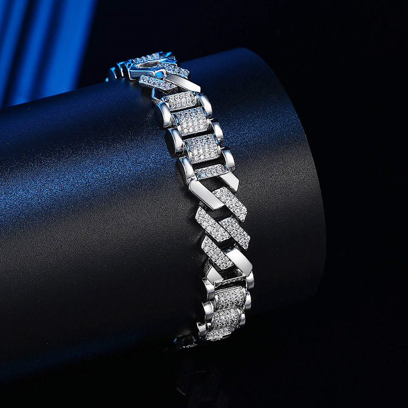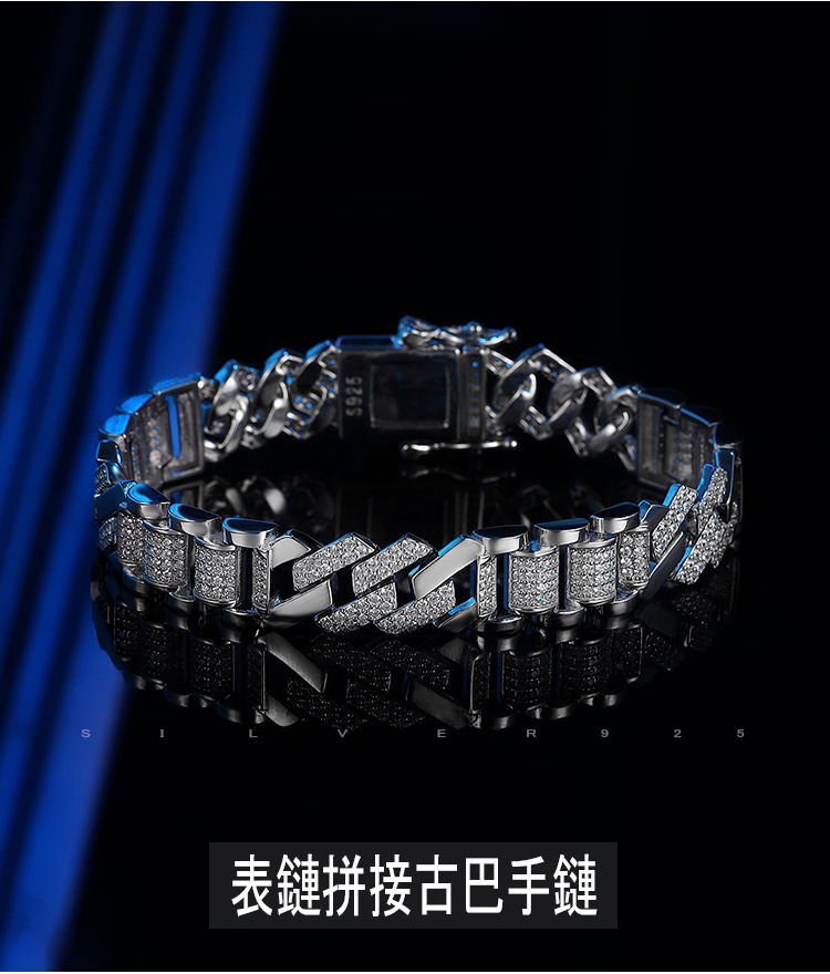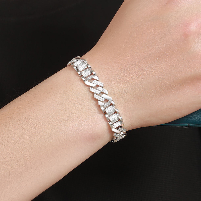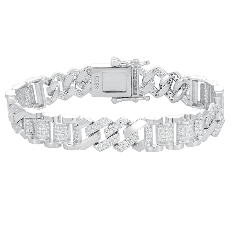 Bracelet with Cuban Chain, Diamond-Shaped Men's Chain, Hip-Hop Rap Standard, Street Fashion, European and American Exaggerated Style