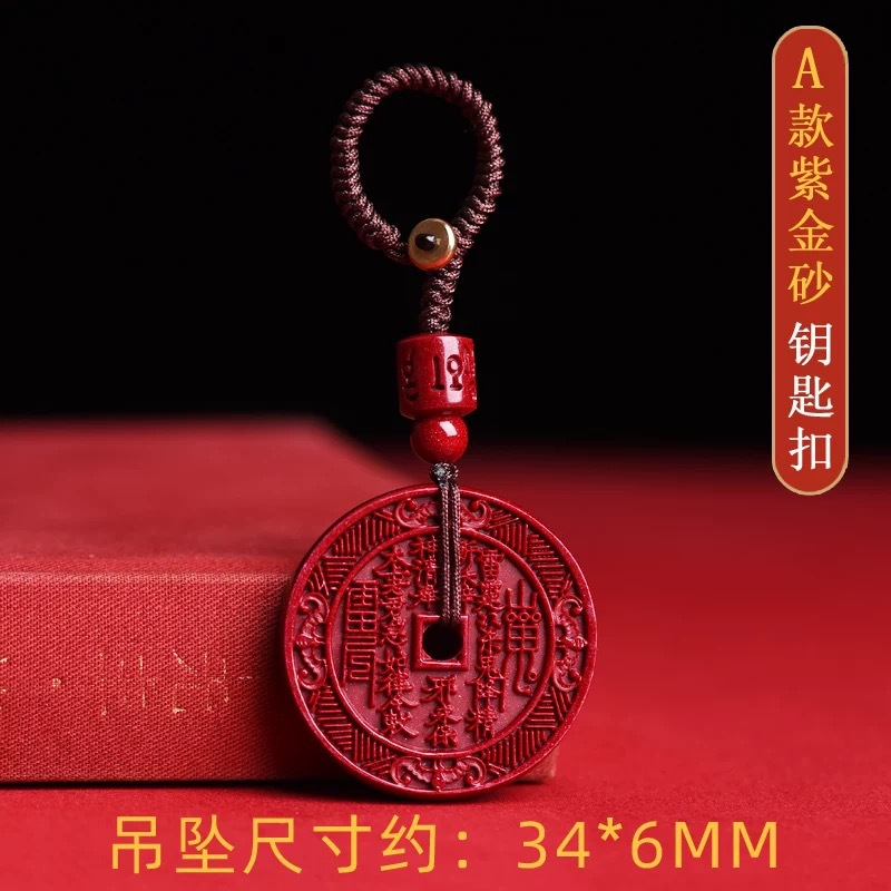Purple Gold Cinnabar Mountain Ghost Flower Pendant Men's and Women's Keychain Pendant Animal Year Safe Imperial Sand Necklace Gift