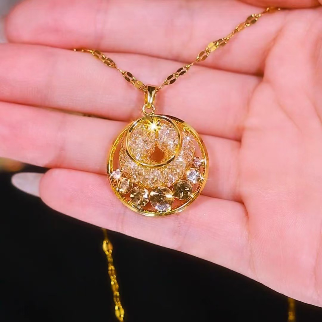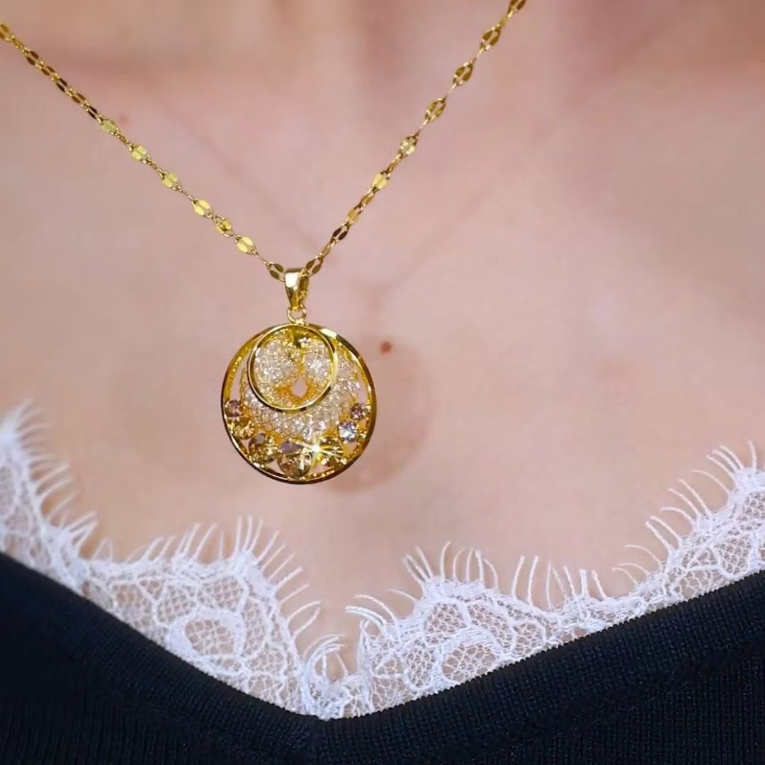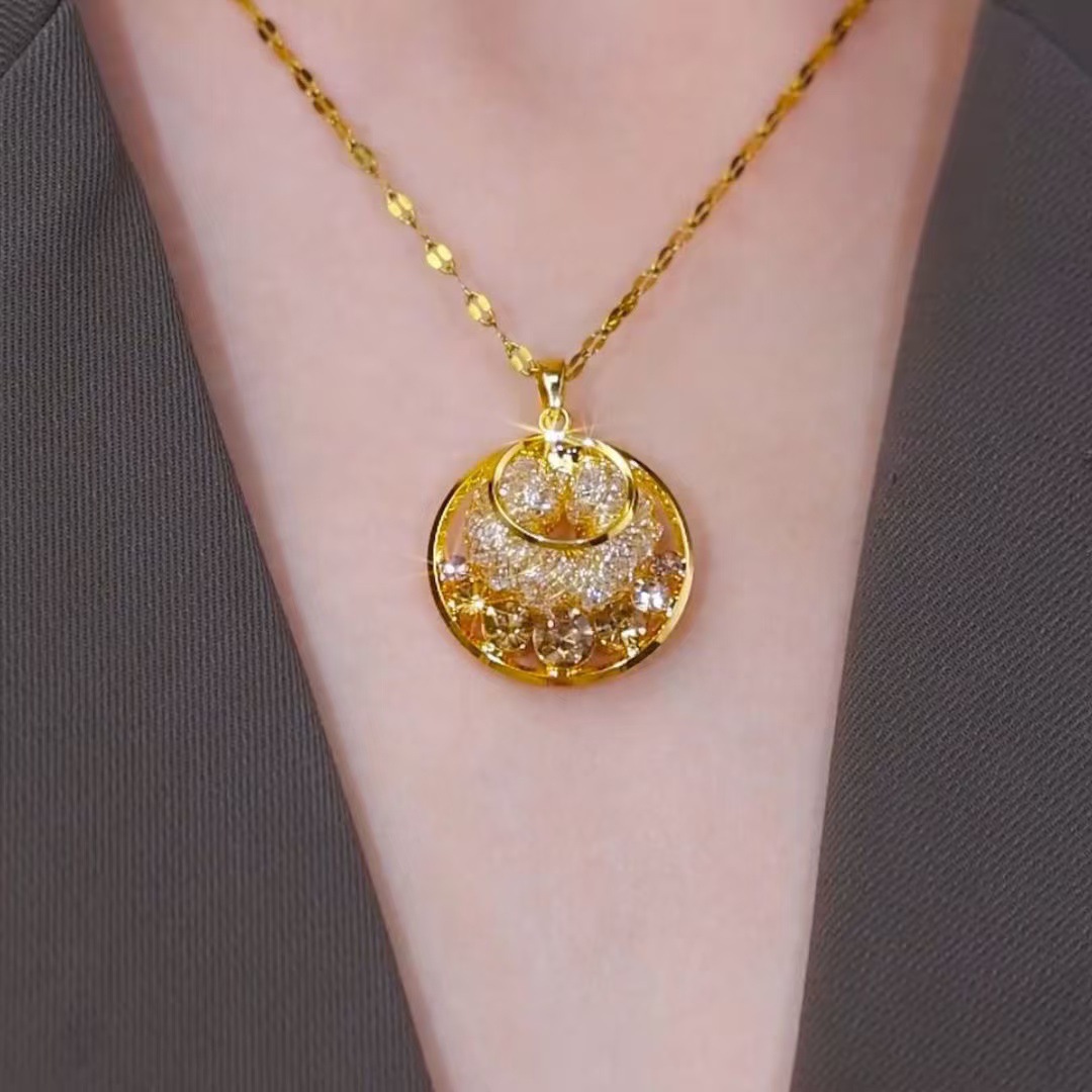 French-Style Coffee-Colored Shiny Necklace with a Luxurious and Fashionable Hollow Eight-Treasure Compass Clavicle Chain, Light Luxury Disc Choker