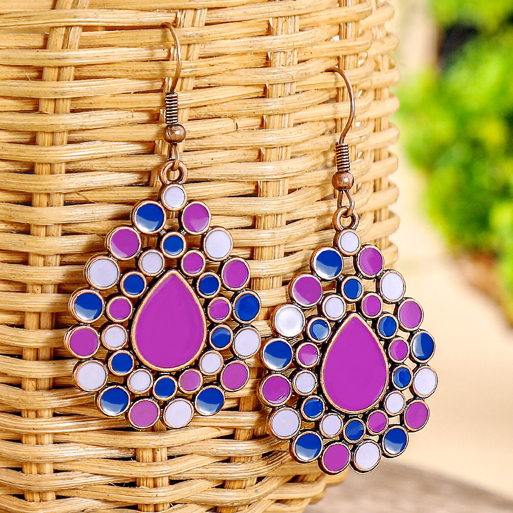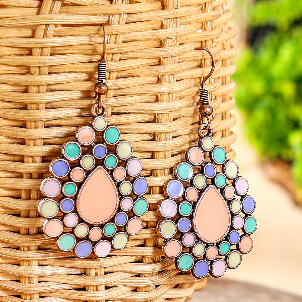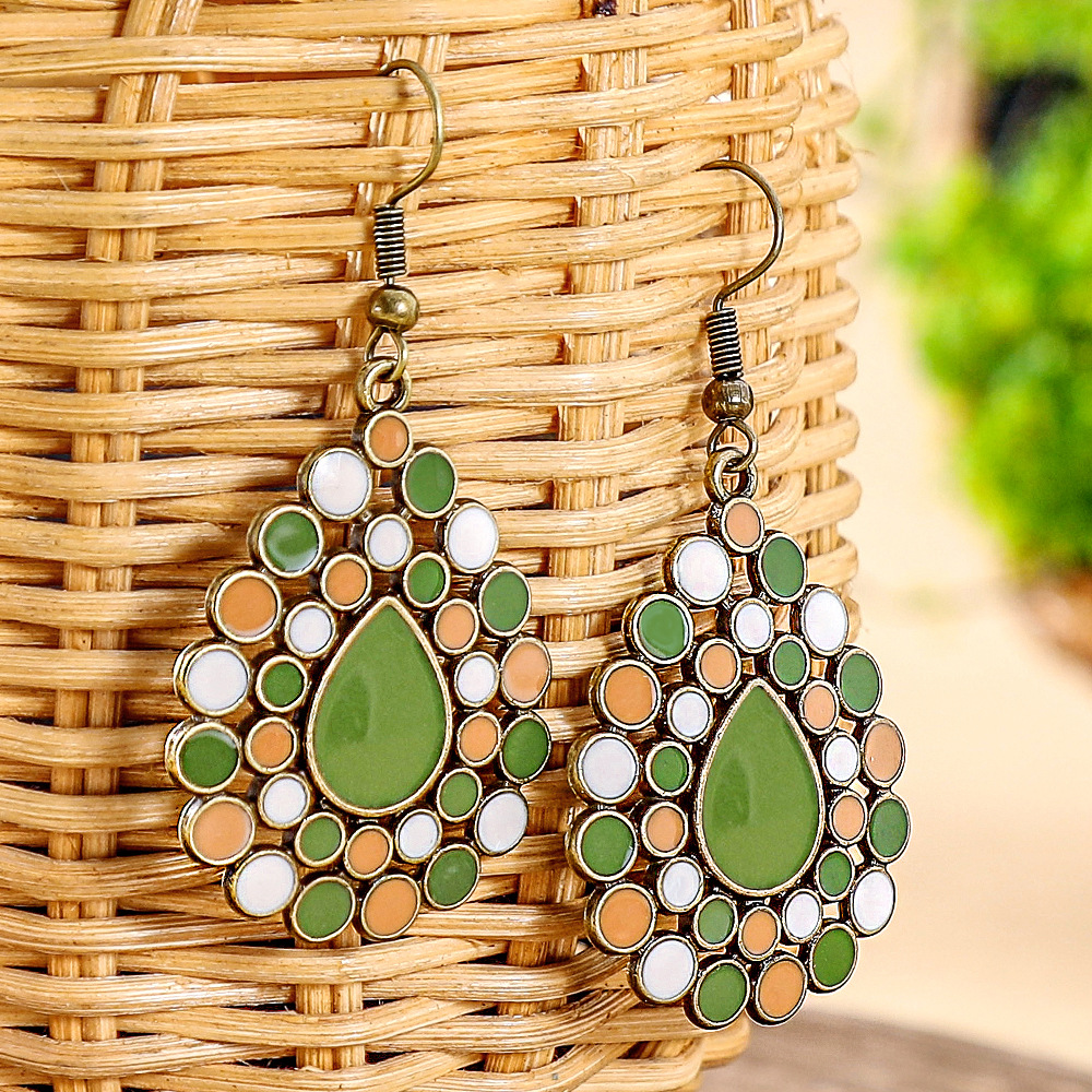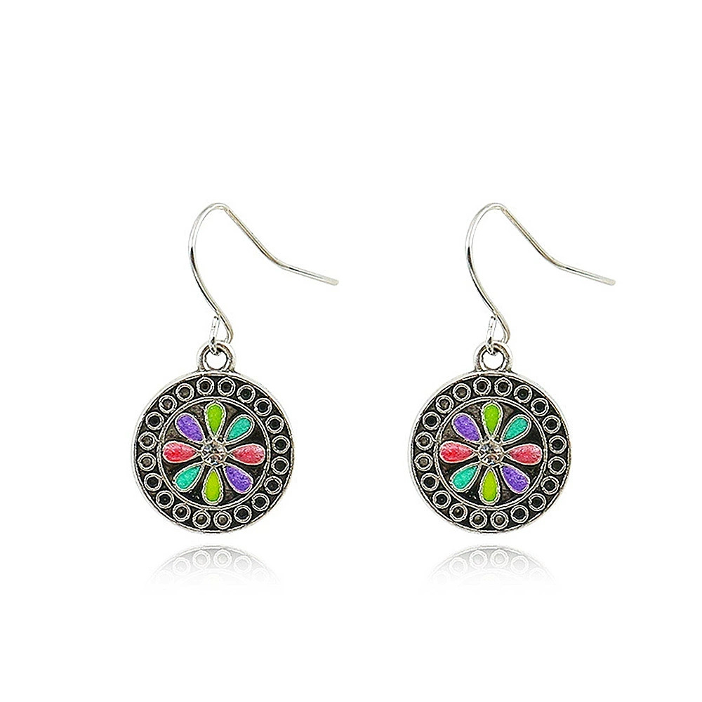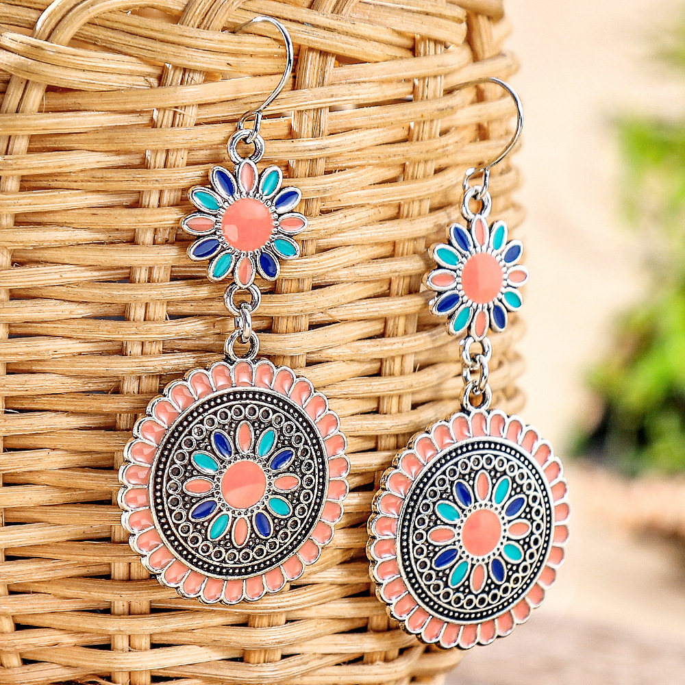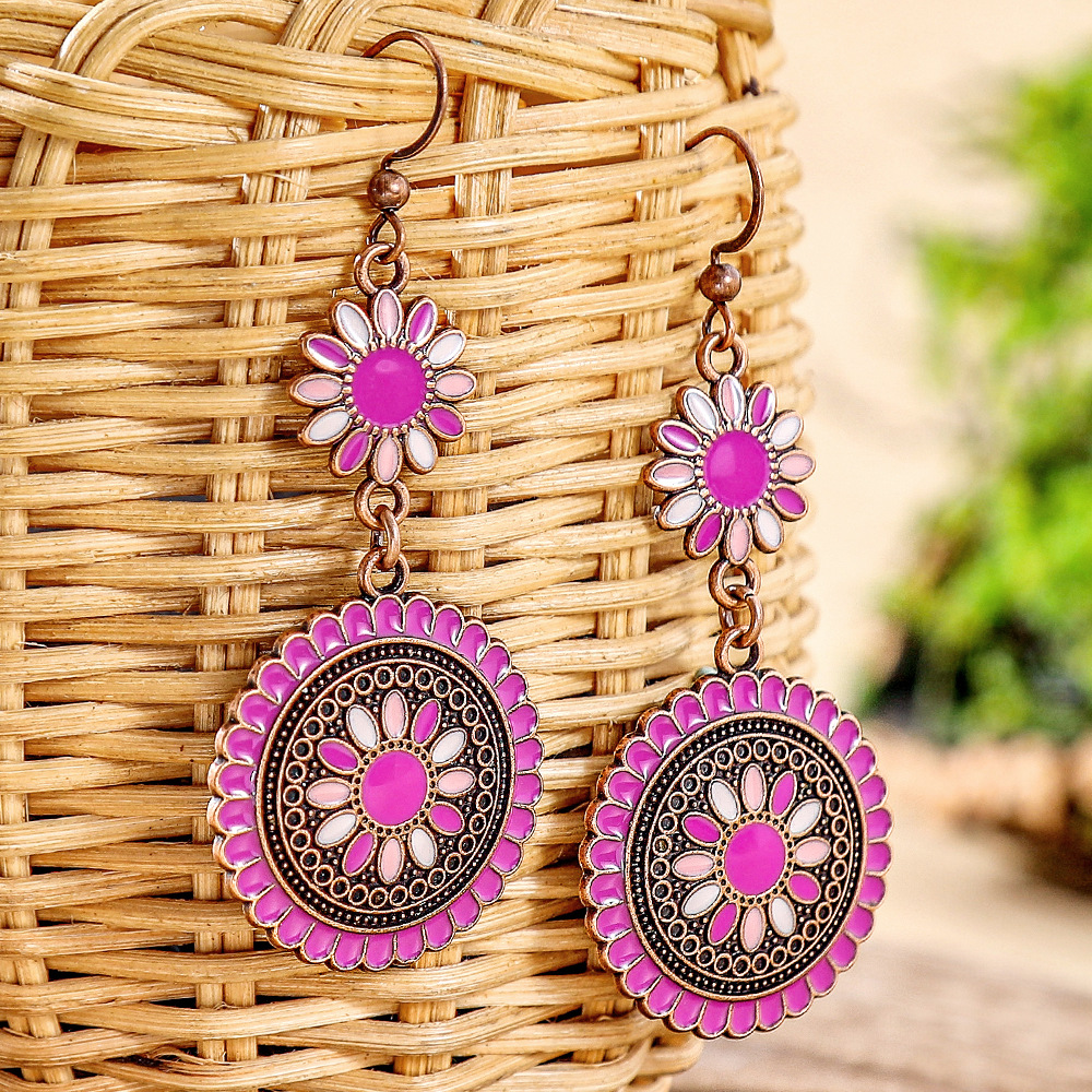 European and American Exaggerated Bohemian Earrings for Women, Oil-Dropping Round Sunflower Earrings, Yunnan Travel Ethnic Style Accessories
