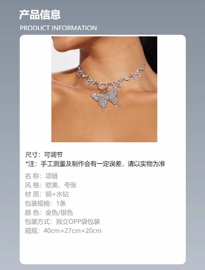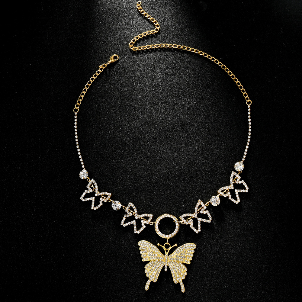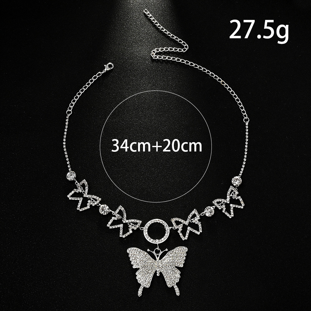 Cross-Border New Butterfly Necklace, Personalized Sexy Cut Out Rhinestone Clavicle Chain, Fashionable and Versatile Bracelet