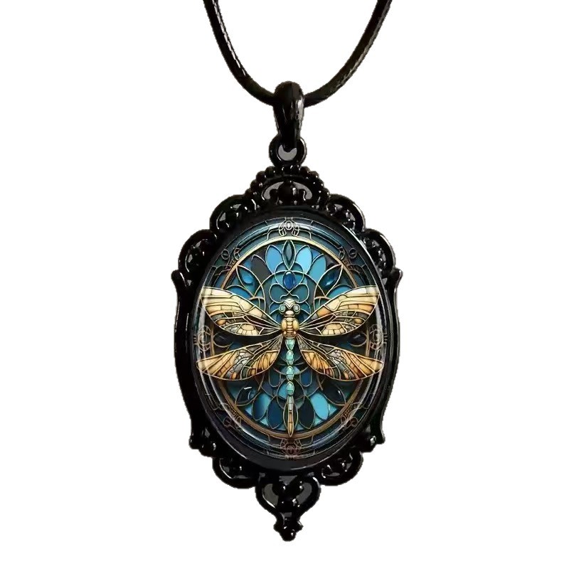 Cross-border trade Bohemian style butterfly, dragonfly glass pendant necklace wholesale