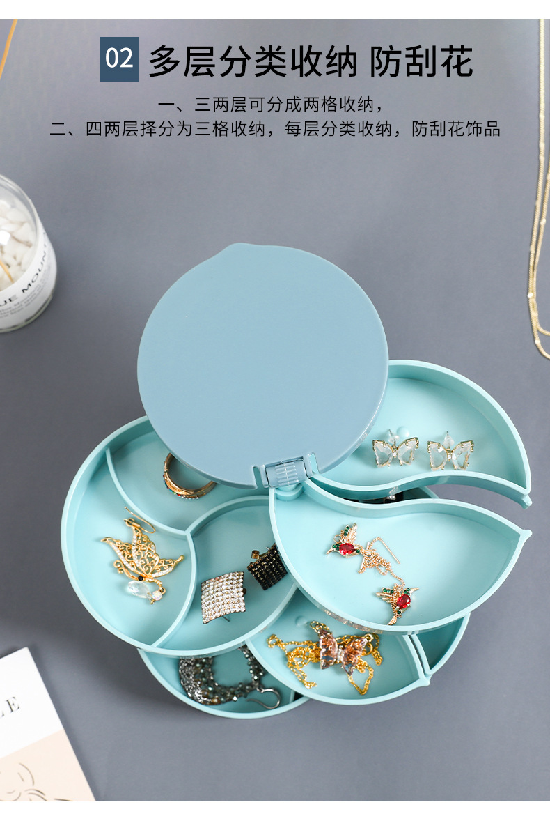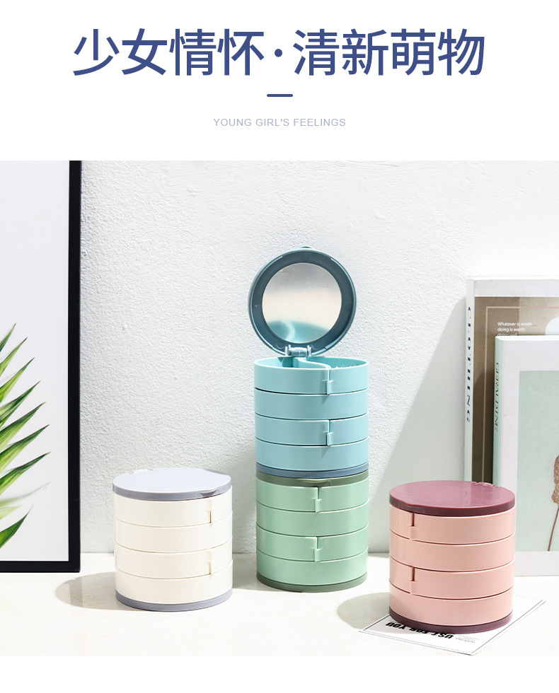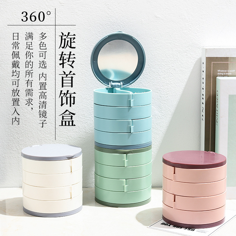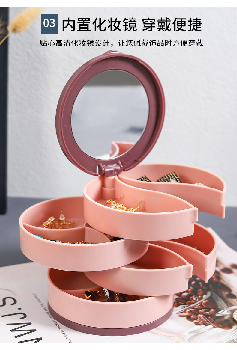 Rotating Earring Jewelry Box Multi-Layer Earring Storage Box Small Exquisite Earrings Necklace Jewelry Rack with Mirror Dust Box