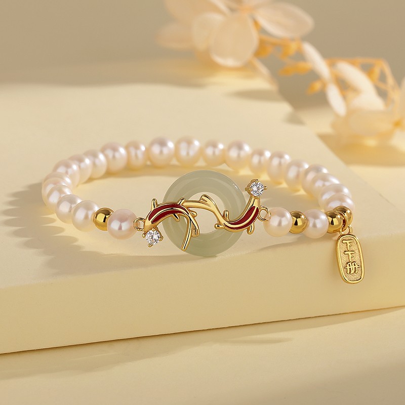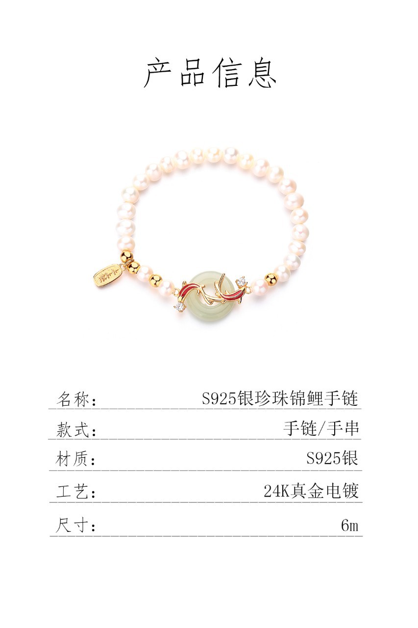 Color: S925 natural freshwater pearl hetian jade peace buckle koi bracelet