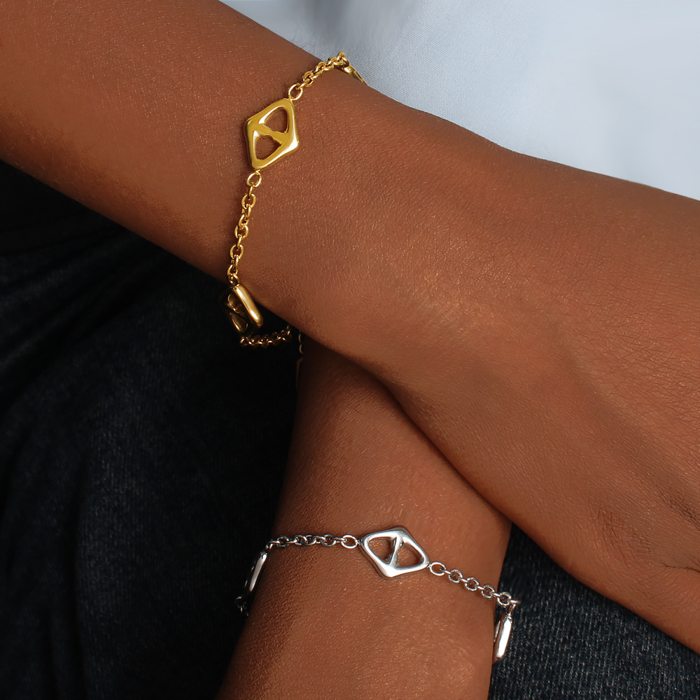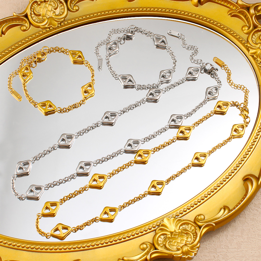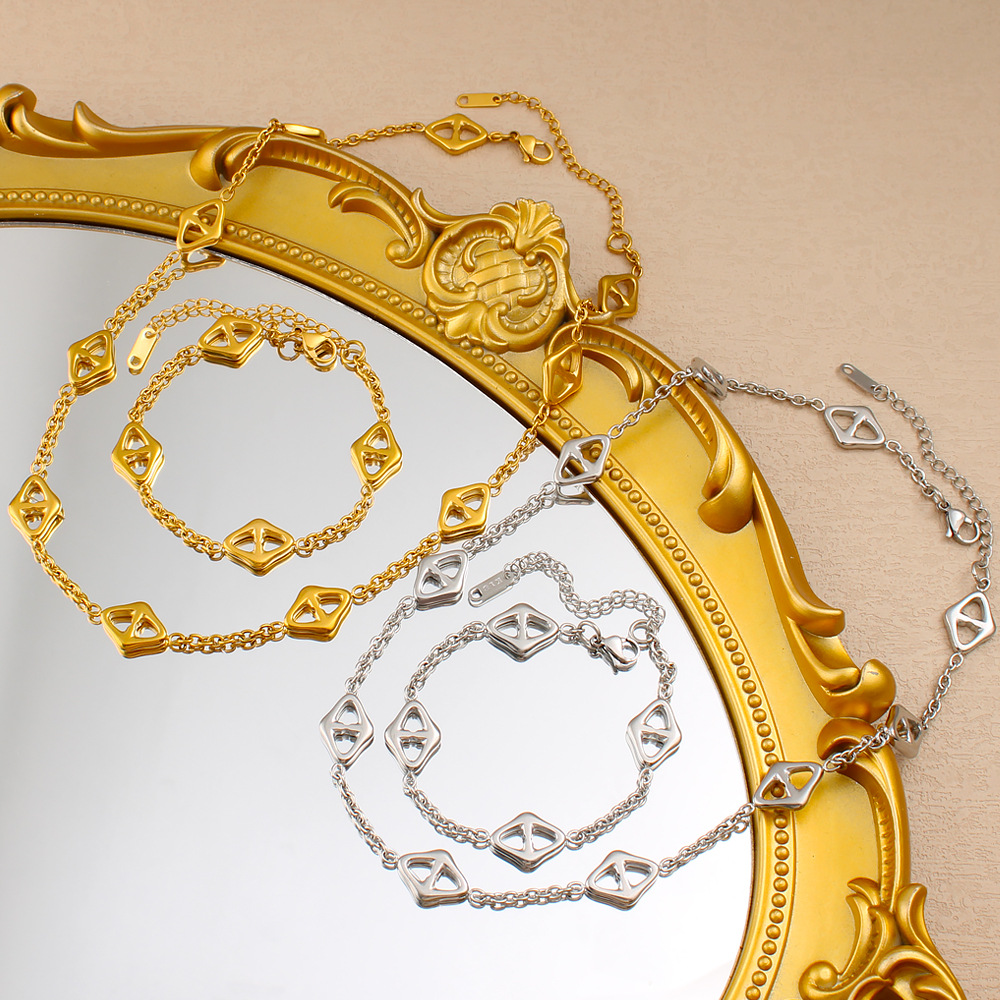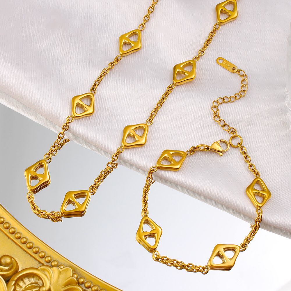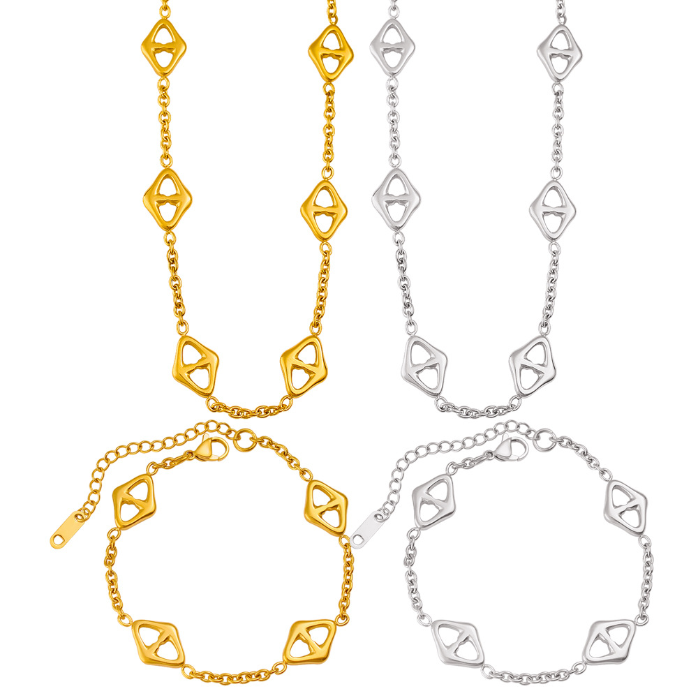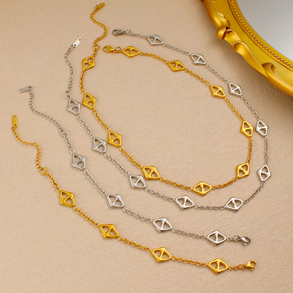 European and American Cross-Border Stainless Steel Bracelet Necklace Set Titanium Steel Gold-Plated 18K Accessible Luxury Versatile Jewelry for Men and Women