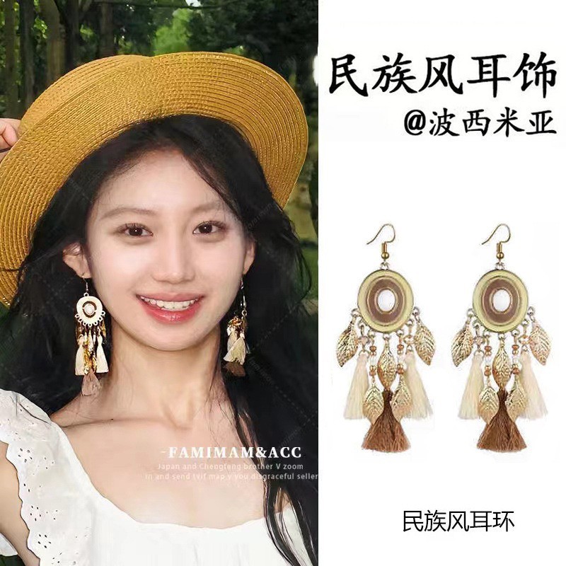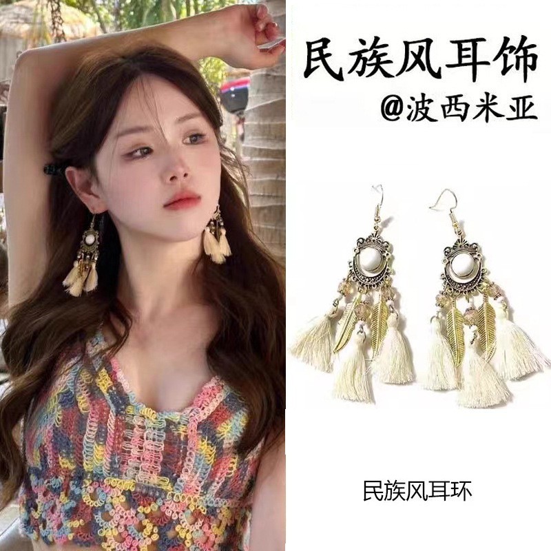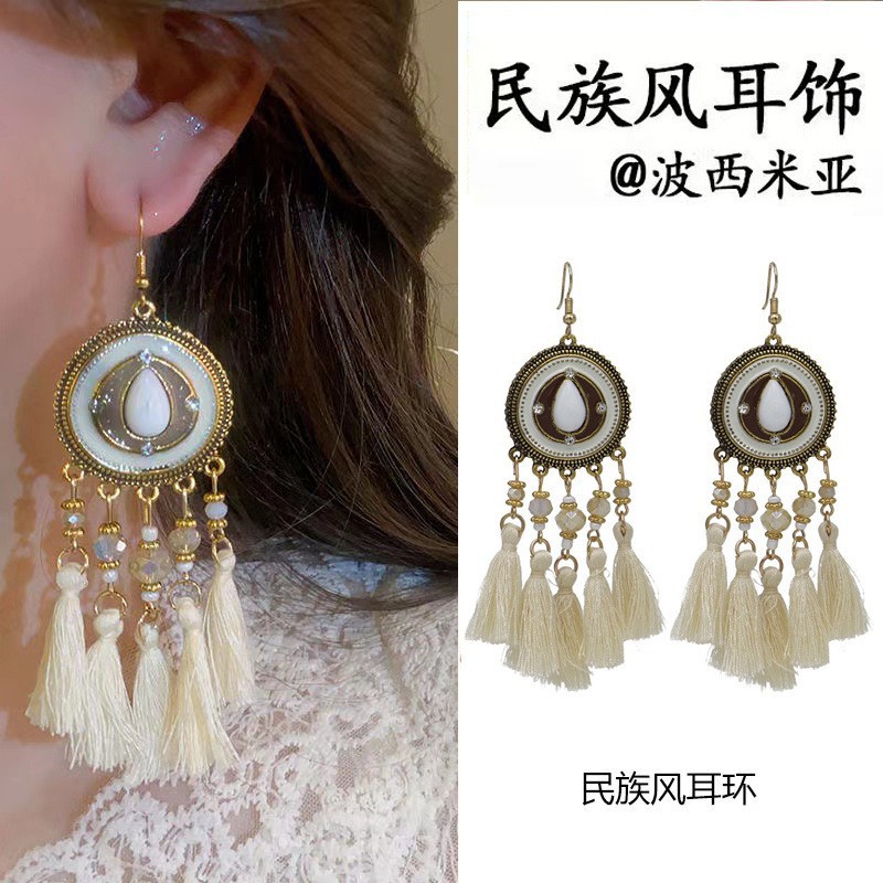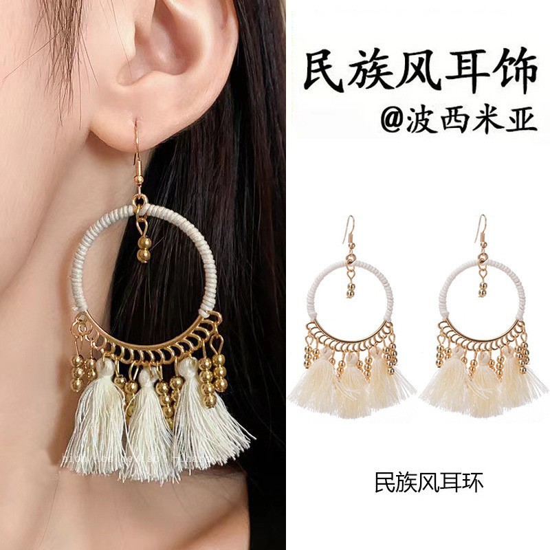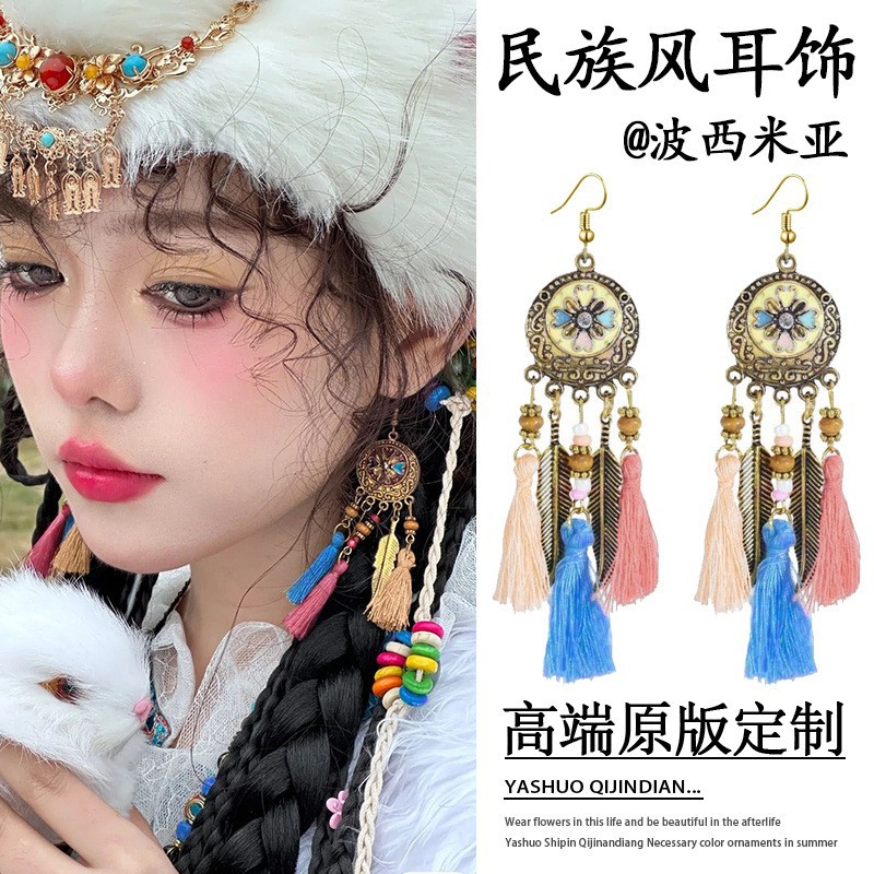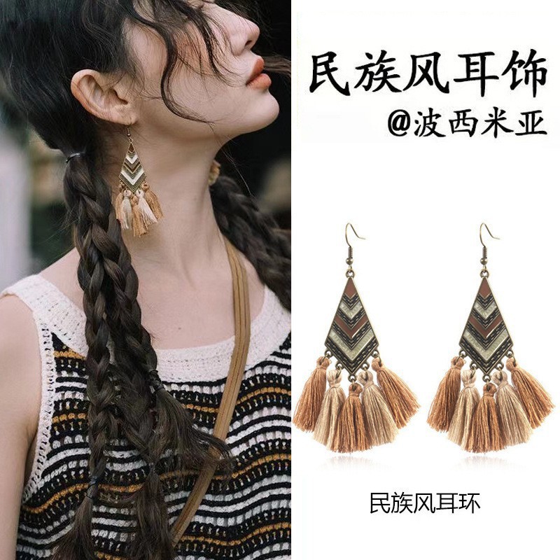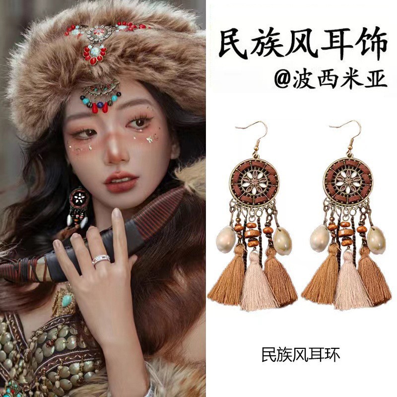 Bohemian Style Earrings Ethnic Cross-Border Hypoallergenic Yunnan Travel Retro Tassel Earrings Ready for Delivery