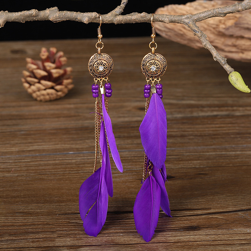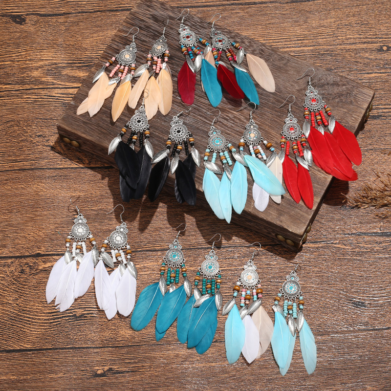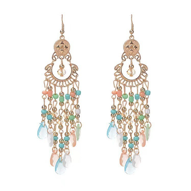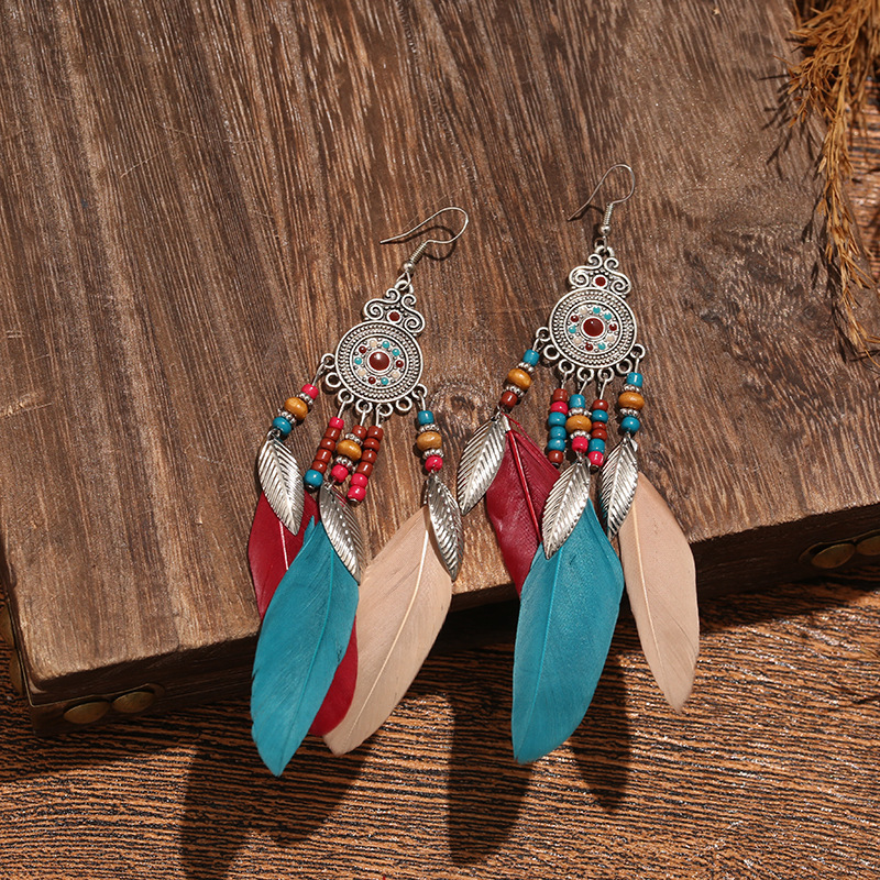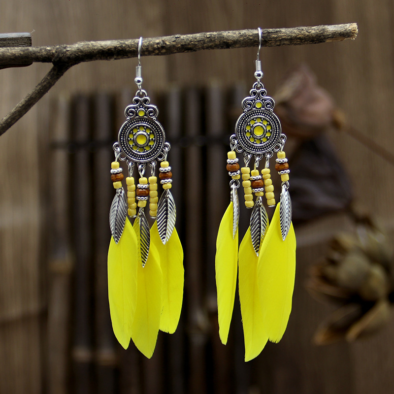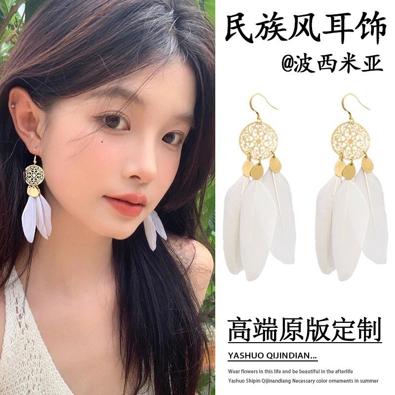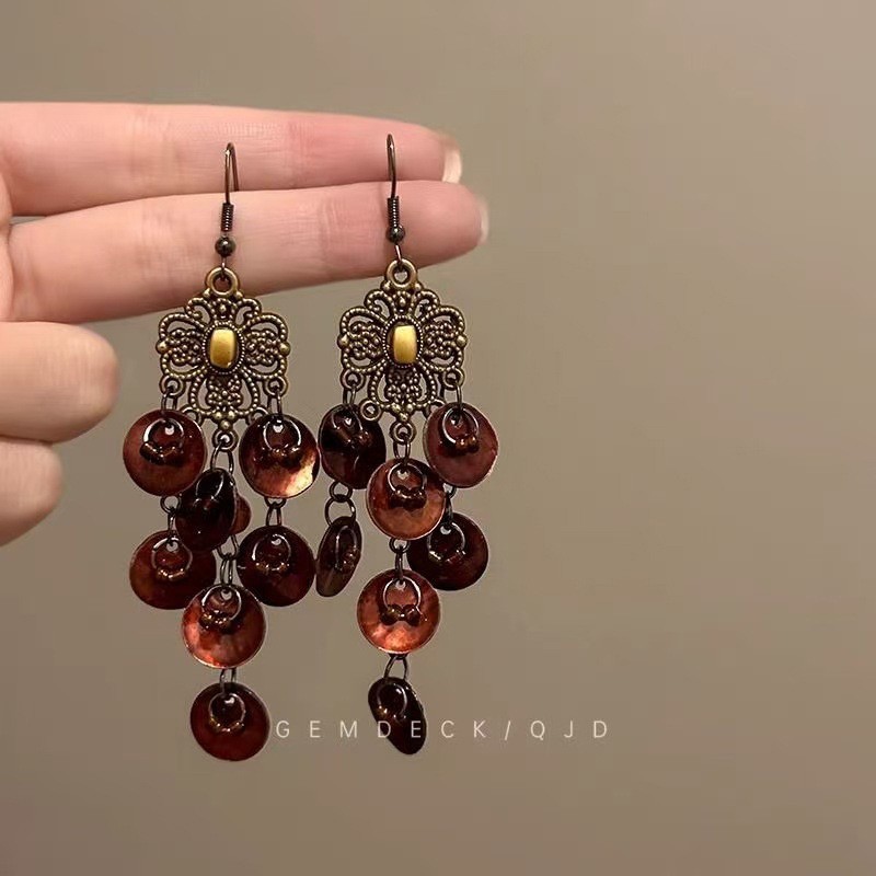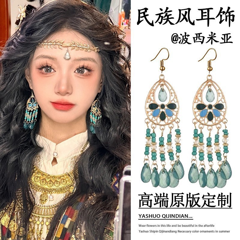 Bohemian Style Earrings Ethnic Cross-Border Hypoallergenic Yunnan Travel Retro Tassel Earrings Ready for Delivery